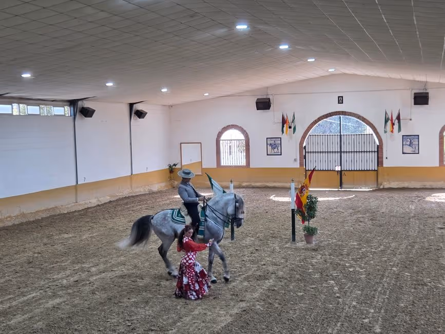 Das Highlight des Tages: die außergewöhnliche Show „Ritmo a Caballo“. Ein echtes Pferdeballett voller Rhythmus, Musik, Disziplin und Schönheit. Die Choreographien verbinden klassische Dressur mit Westernreiten – und das alles untermalt von spanischer Musik und traditionellen andalusischen Kostümen. Hufe klappern, Röcke wirbeln, und man fragt sich, ob man gerade im Theater oder auf einem Reitplatz gelandet ist.