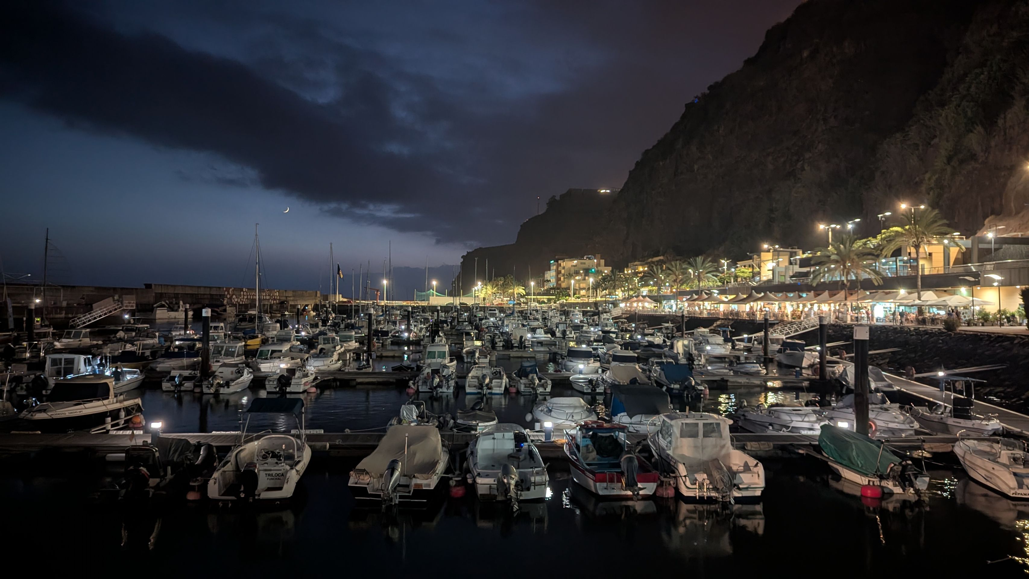 Abends fahren wir runter zum Strand und Promenade nach Calheta, da wir Abendessen gehen wollen. Die Parplatzssuche wir wieder zur Challenge, aber wir haben Glück und finden zügig einen Parkplatz. Ab 19 Uhr sind diese auch kostenfrei (es ist 19:10 Uhr). Auch ist es immer noch knackig heiß! Das Autothermometer zeigt 33 Grad!!! Wahnsinn! So warm war es auch am Ankunftstag, da hatten wir abends auch noch über 30 Grad.