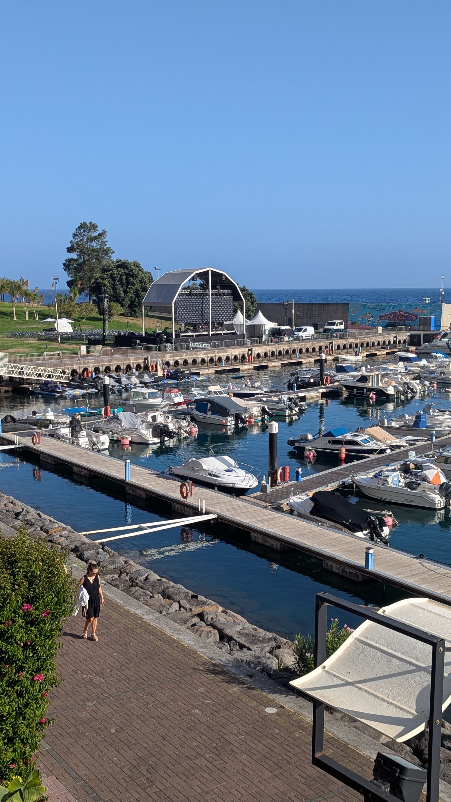 Wir setzen uns an die Promenade und schauen auf Beach und Sunset, als auf der anderen Seite des Hafens Musik von der aufgebauten Open Air Bühne erklingt.