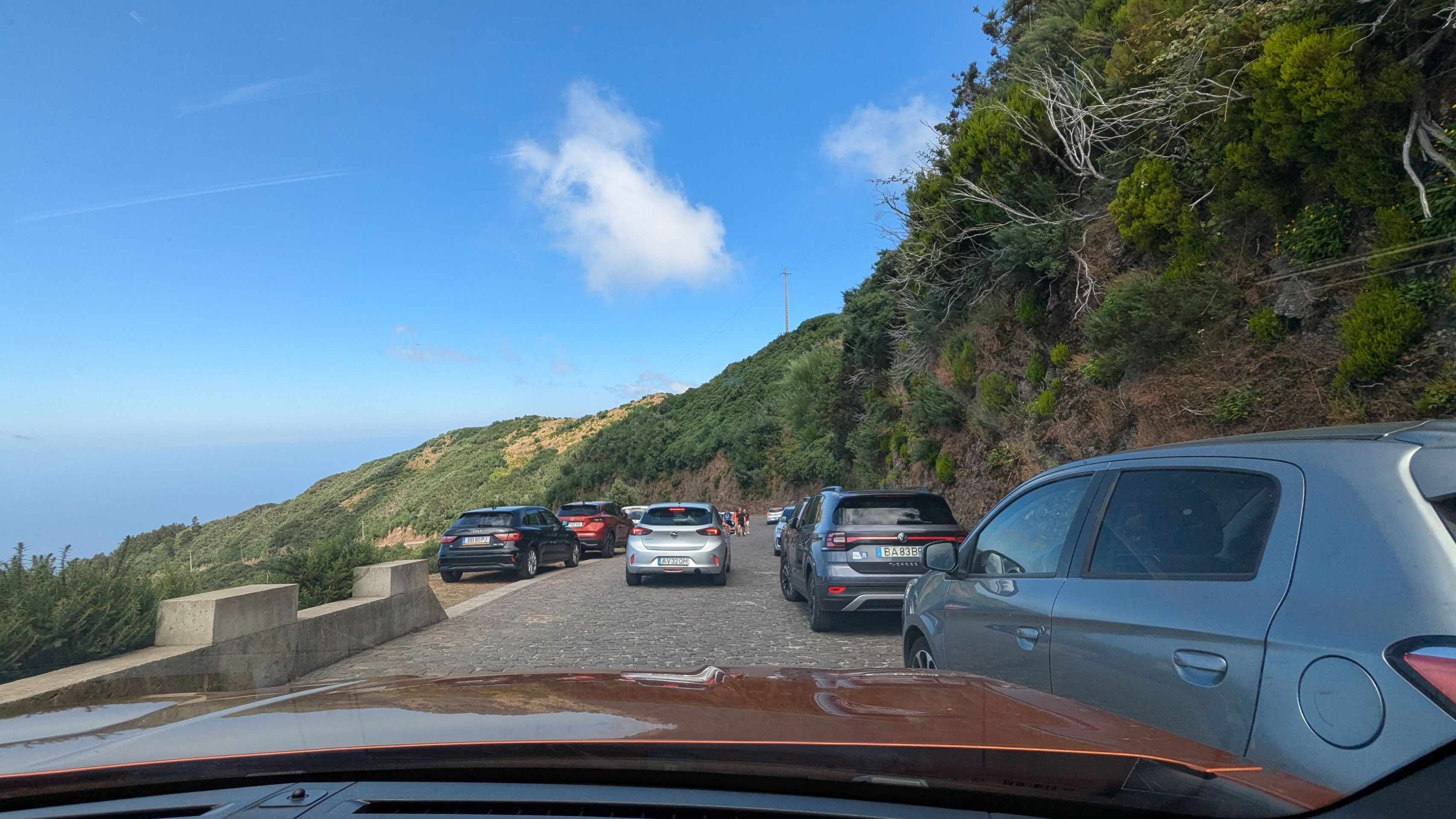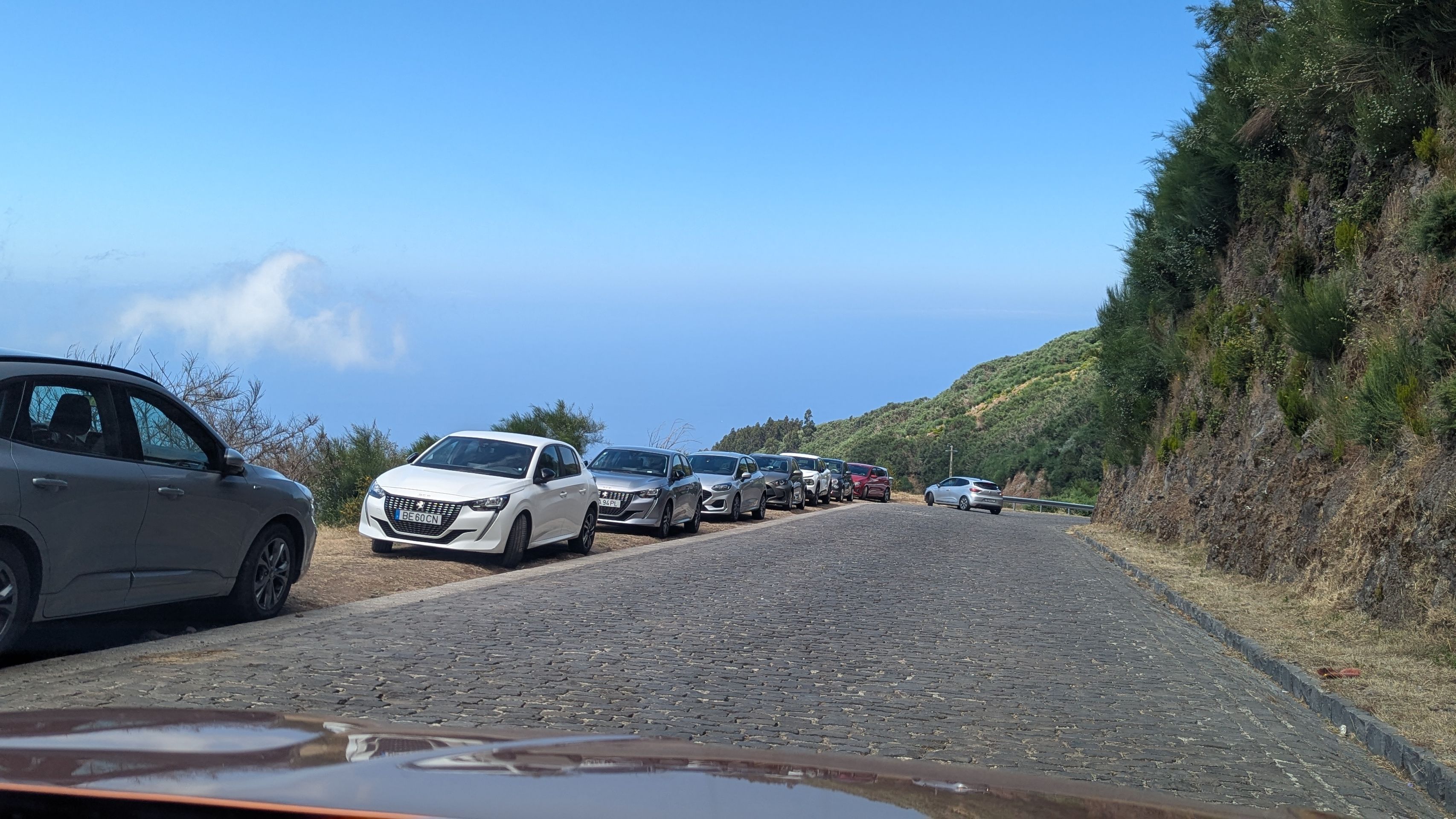 Auch heute ist die komplette Hochebene bei Rabacal rund um den Parkplatz zugeparkt, dass kaum noch ein Durchkommen möglich ist. Total irre!!! Die Parkschlangen reichen bis zu 2km die Straße nach unten Richtung Calheta! Irre.
