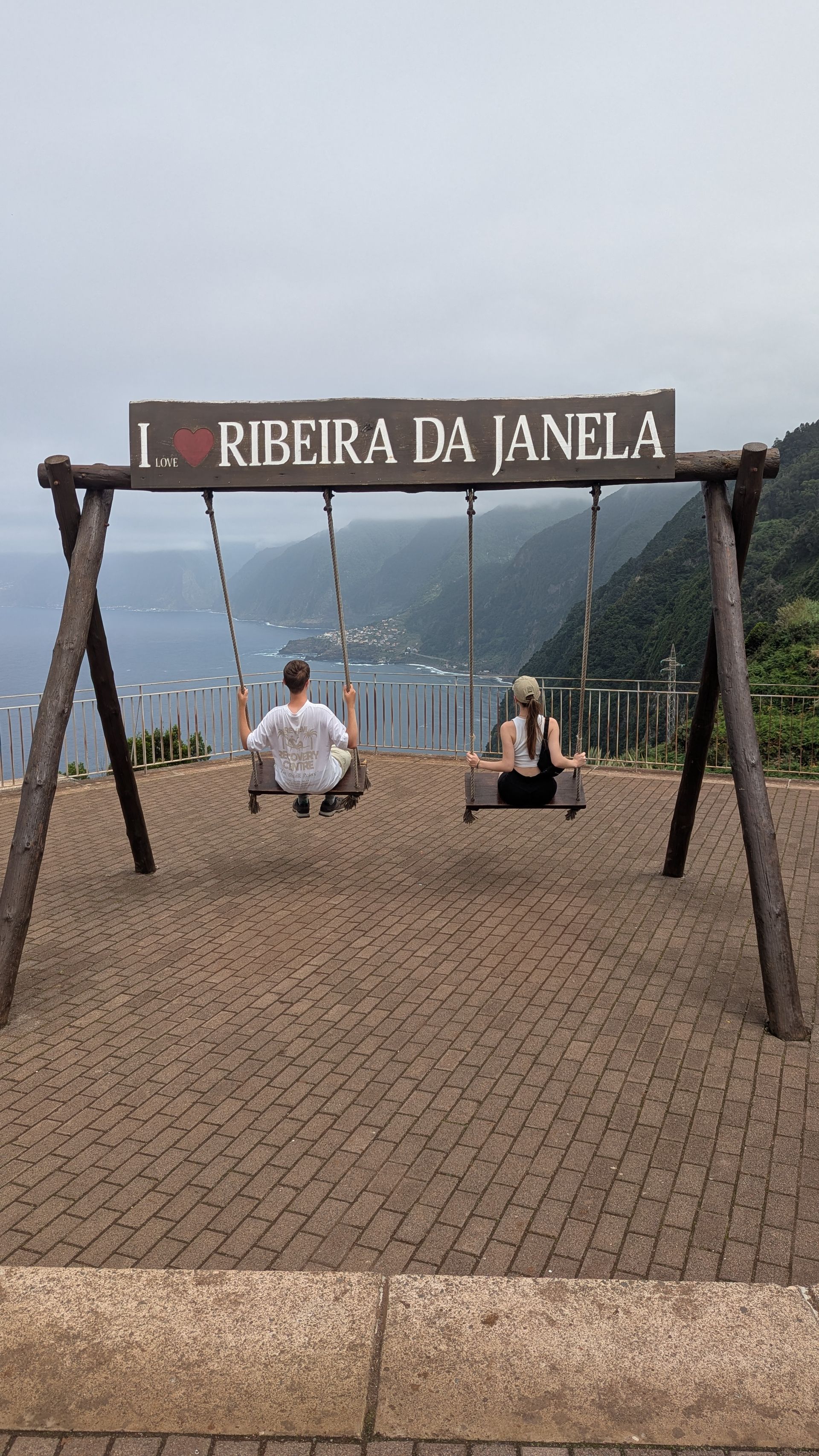 Nächster Stopp ist der Miradouro da Ribeira da Janela, wo zwei Schaukeln zum Schaukeln einladen und man von der Aussichtsterrasse einen schönen Blick auf die Küste genießen kann.