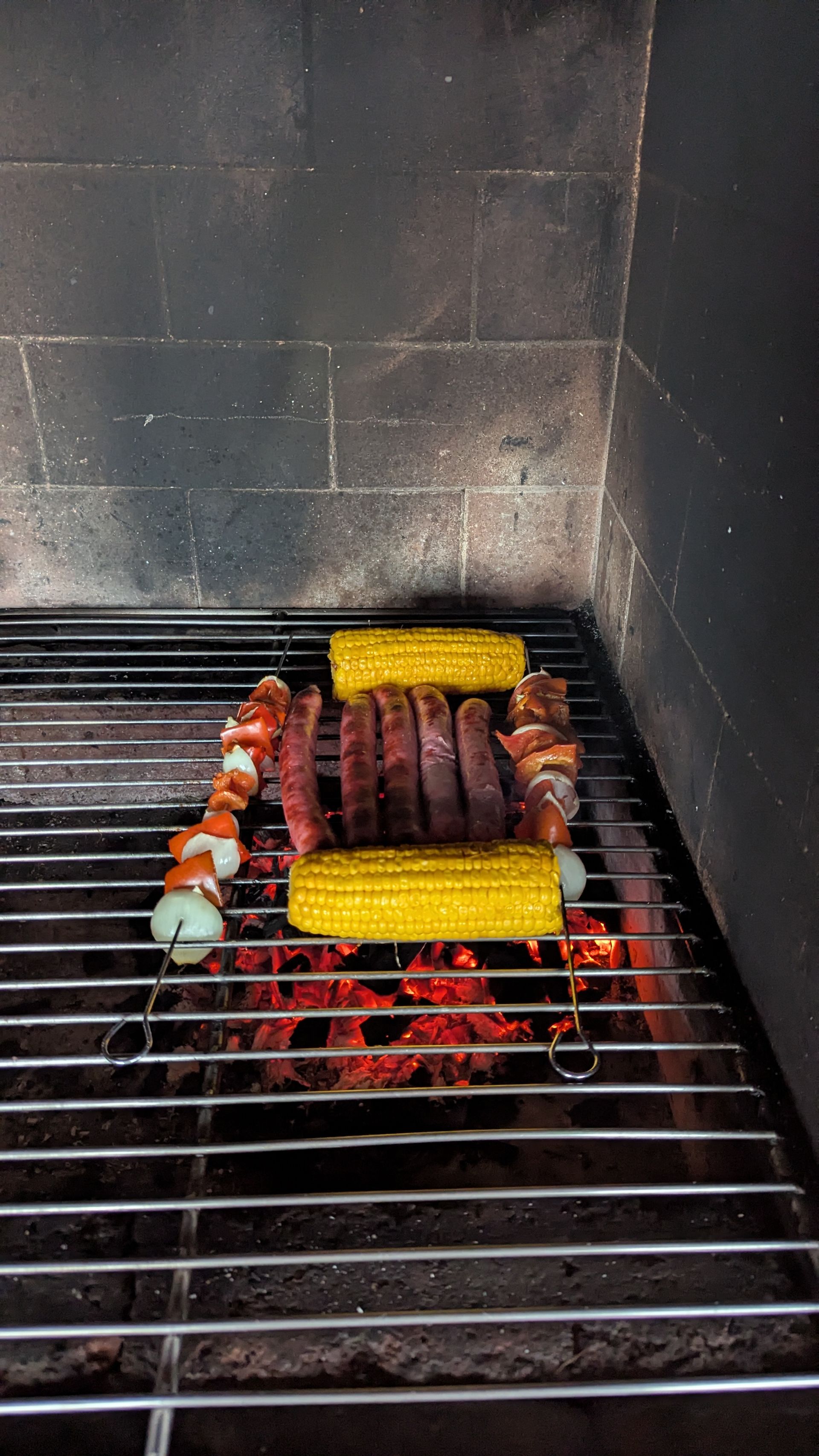 Ich springe noch kurz in den Pool, dann werfen wir ein paar Würstchen und Gemüse in den riesigen Grill unserer Außenküche. Ich glaube, hier kann man locker 30 Personen mit Grillgut versorgen, wenn man den ganzen Grill ausnutzt. Unser Grillgut sieht jedenfalls sehr "verloren" aus auf dem riesigen Grill.