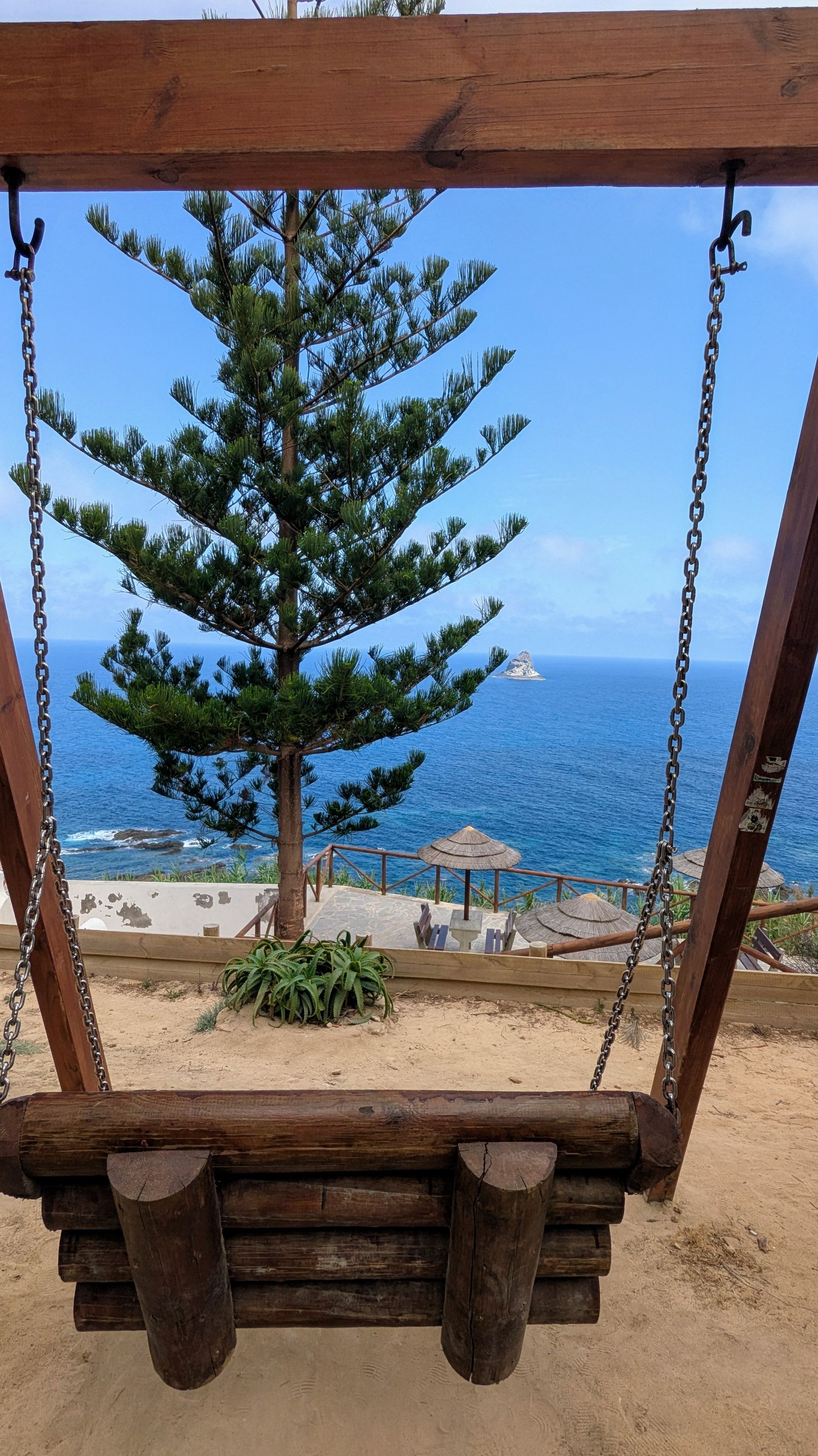 Leider ist es heute sehr bewölkt, daher ist der Sonnenuntergang mit wirklich spektakulär, aber die Aussicht aufs Meer von der Schaukel aus hat was 🥰