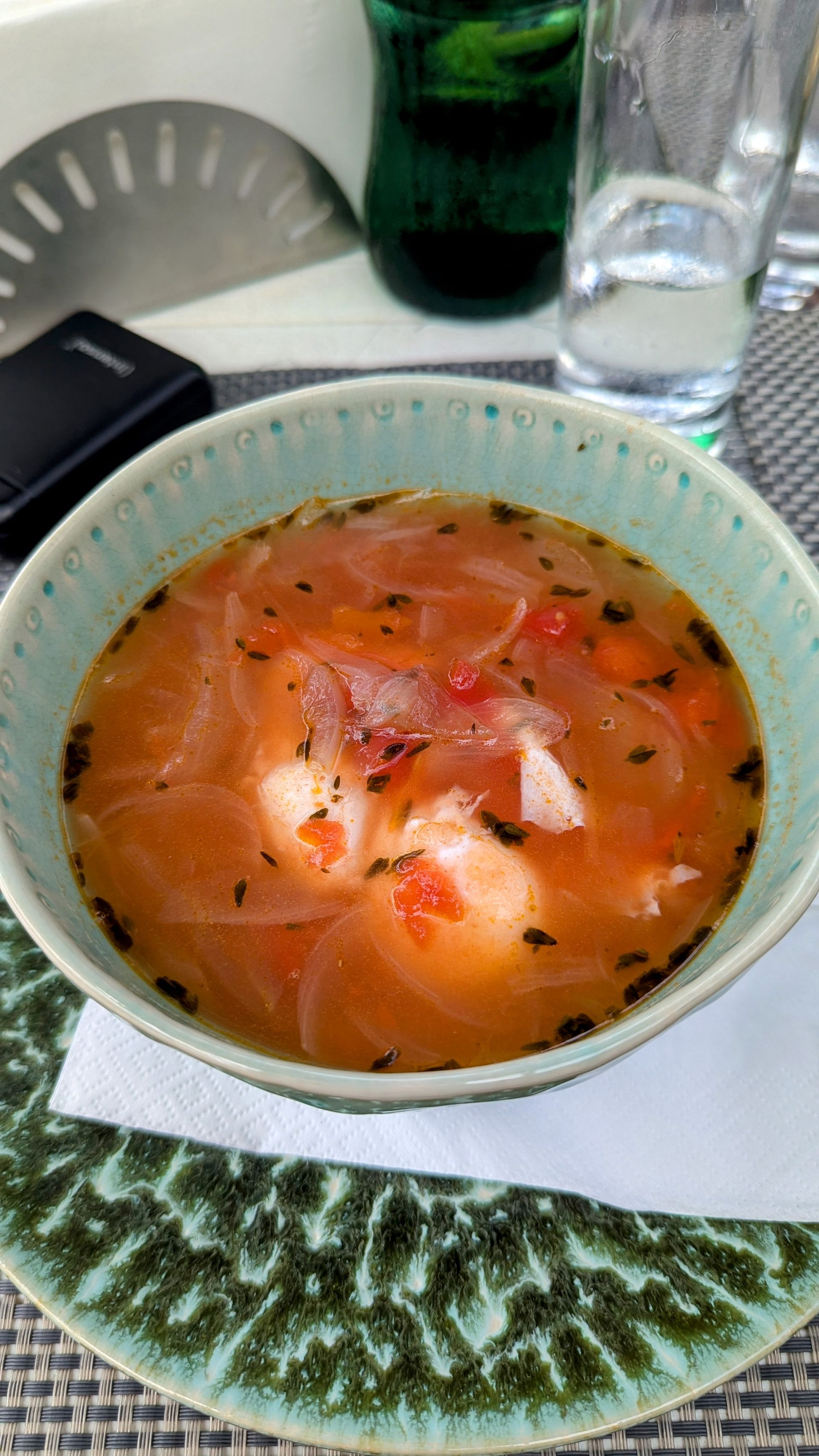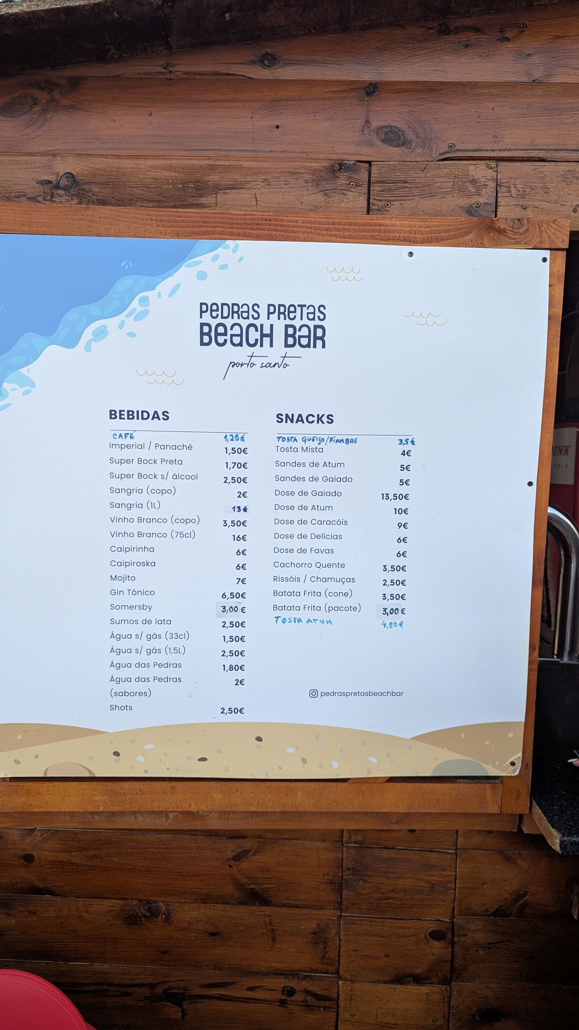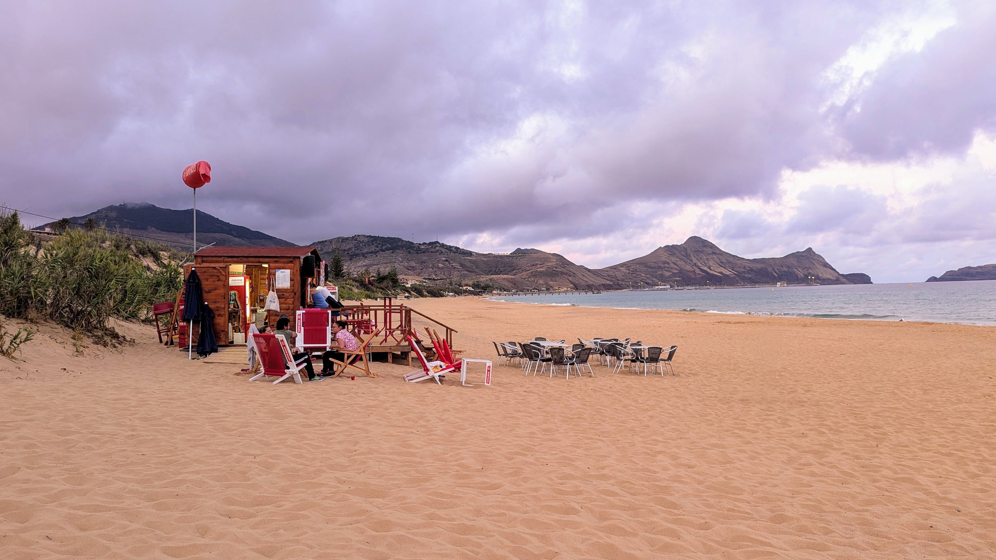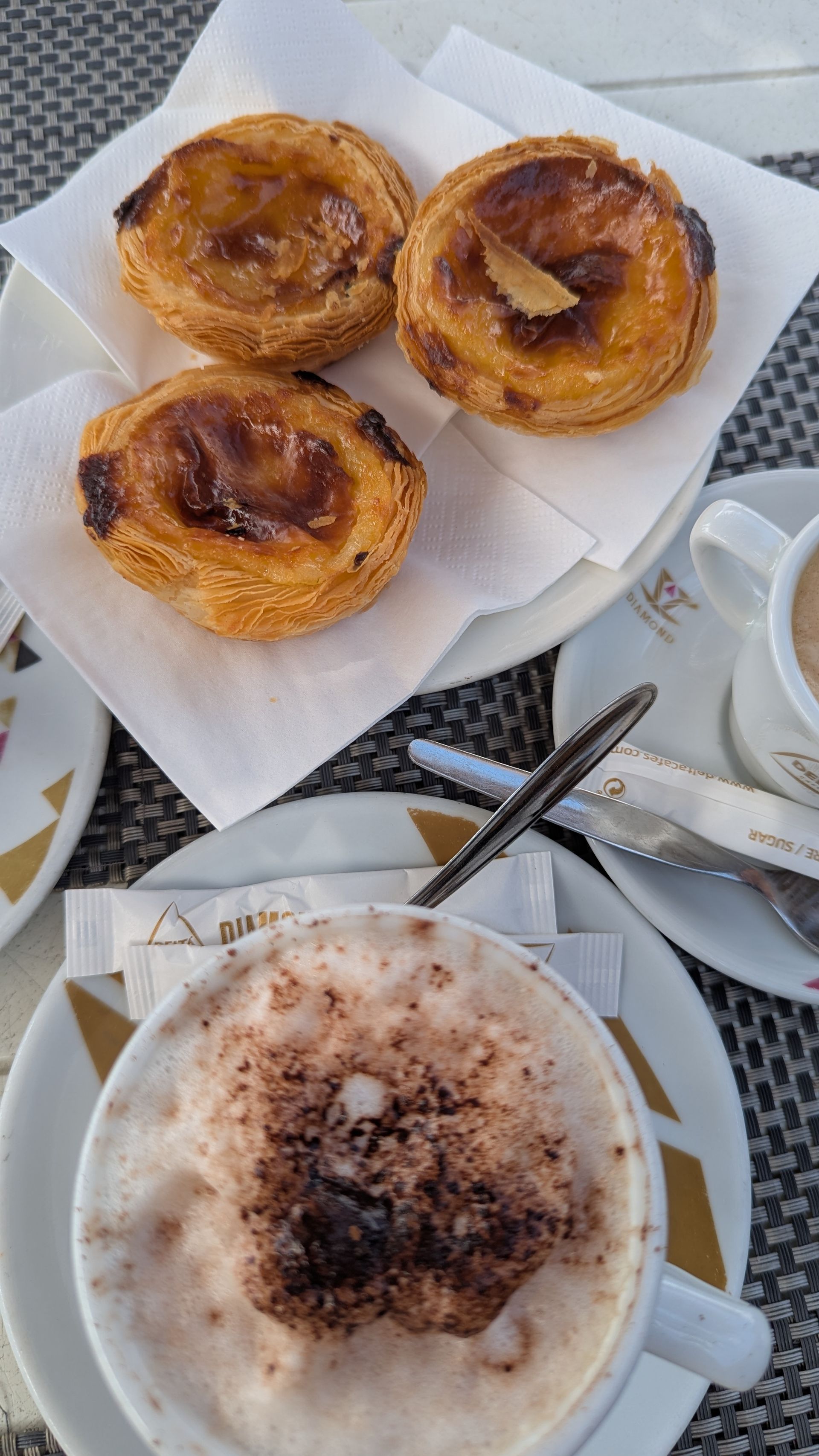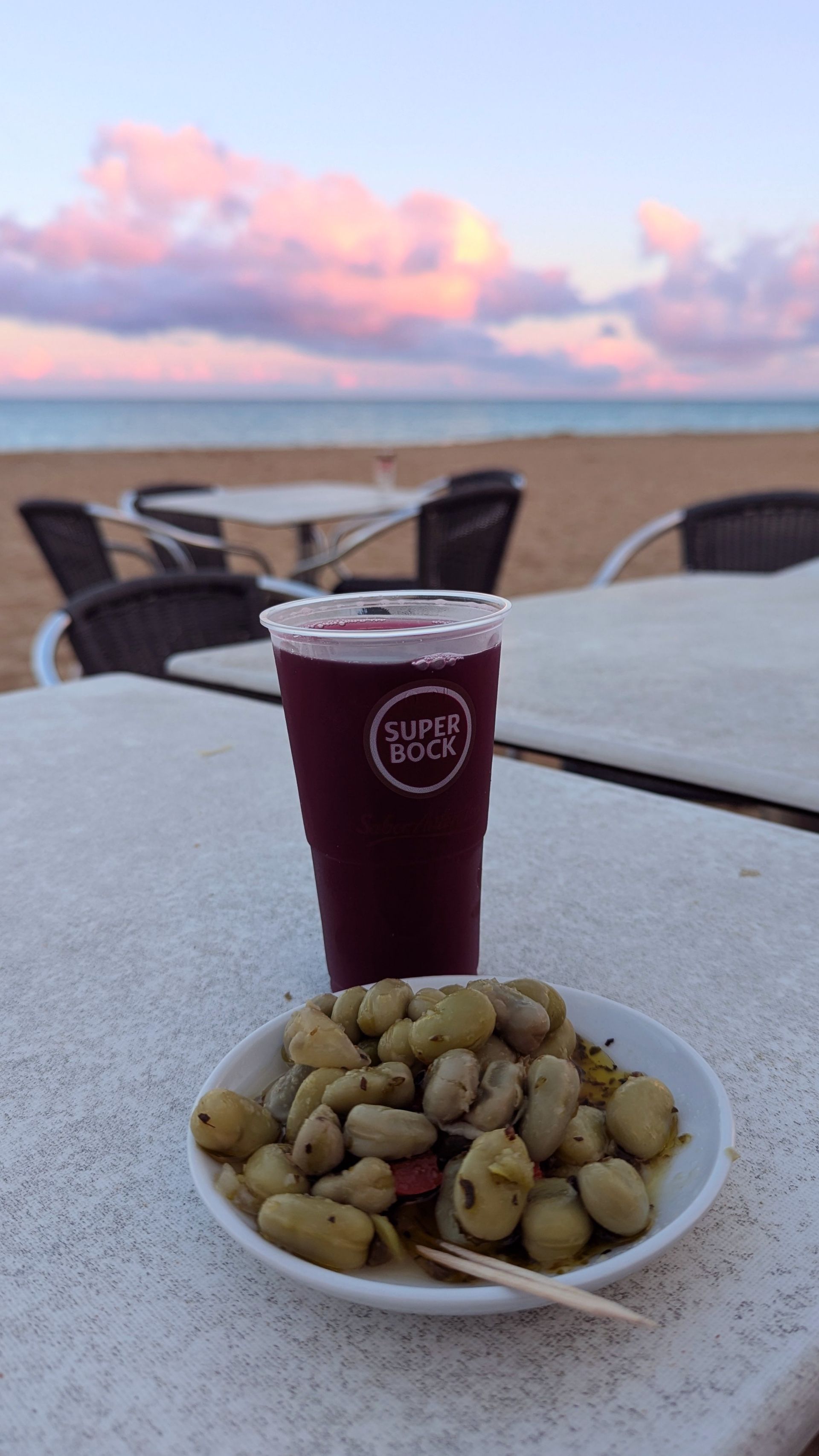 Zuerst gönnen wir uns aber ein leckeres Mittagessen im Restaurant direkt am Strand. Die Tomatensuppe mit Zwiebeln und pochiertem Ei ist sehr lecker, als Nachtisch essen wir mit die besten Pastel del Nata, die wir je probiert haben. So lecker!