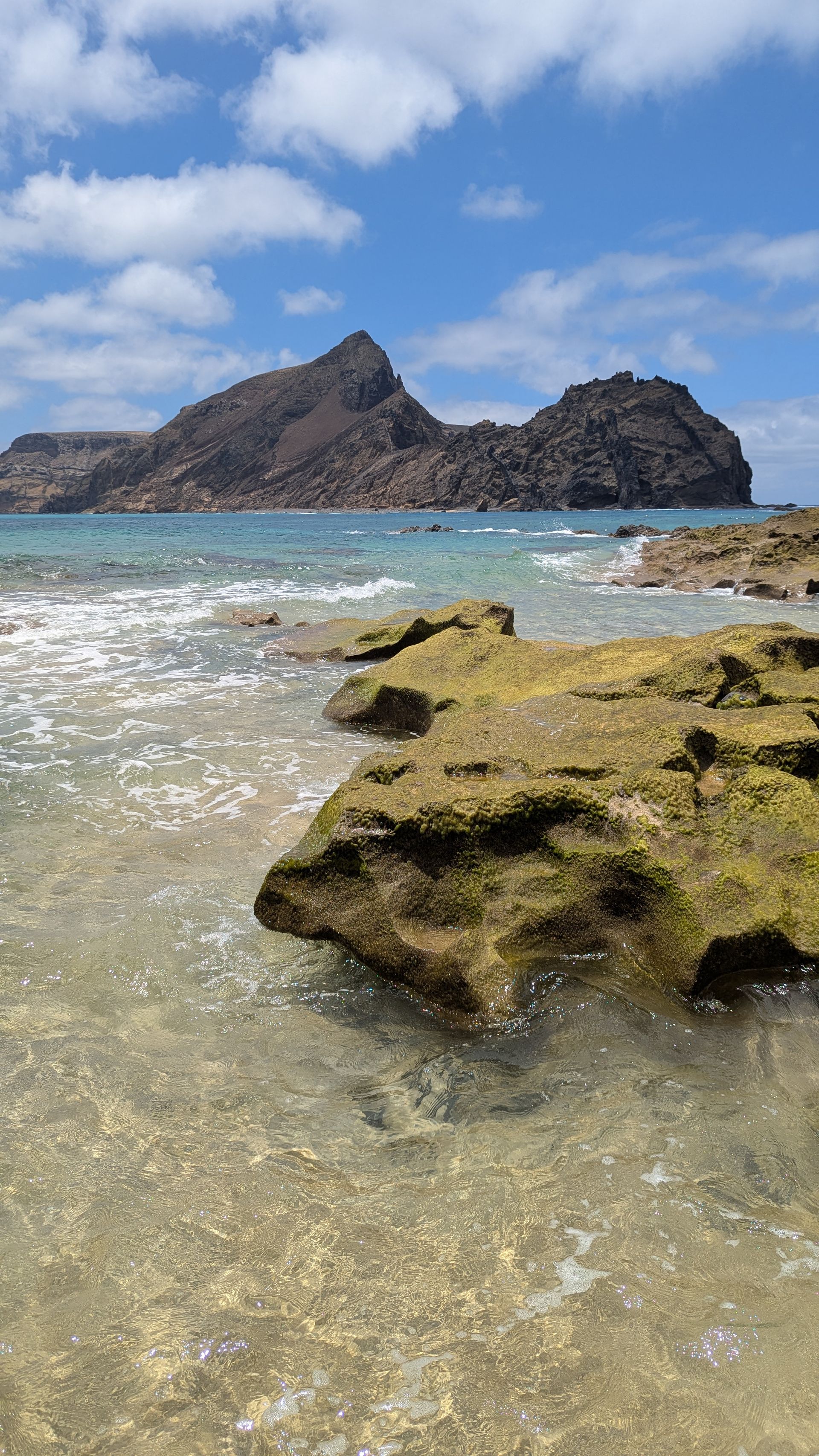 Über die Schotterstraße schleichen wir zurück zum Calheta Beach, den wir uns heute bei Ebbe genauer ansehen wollten.
