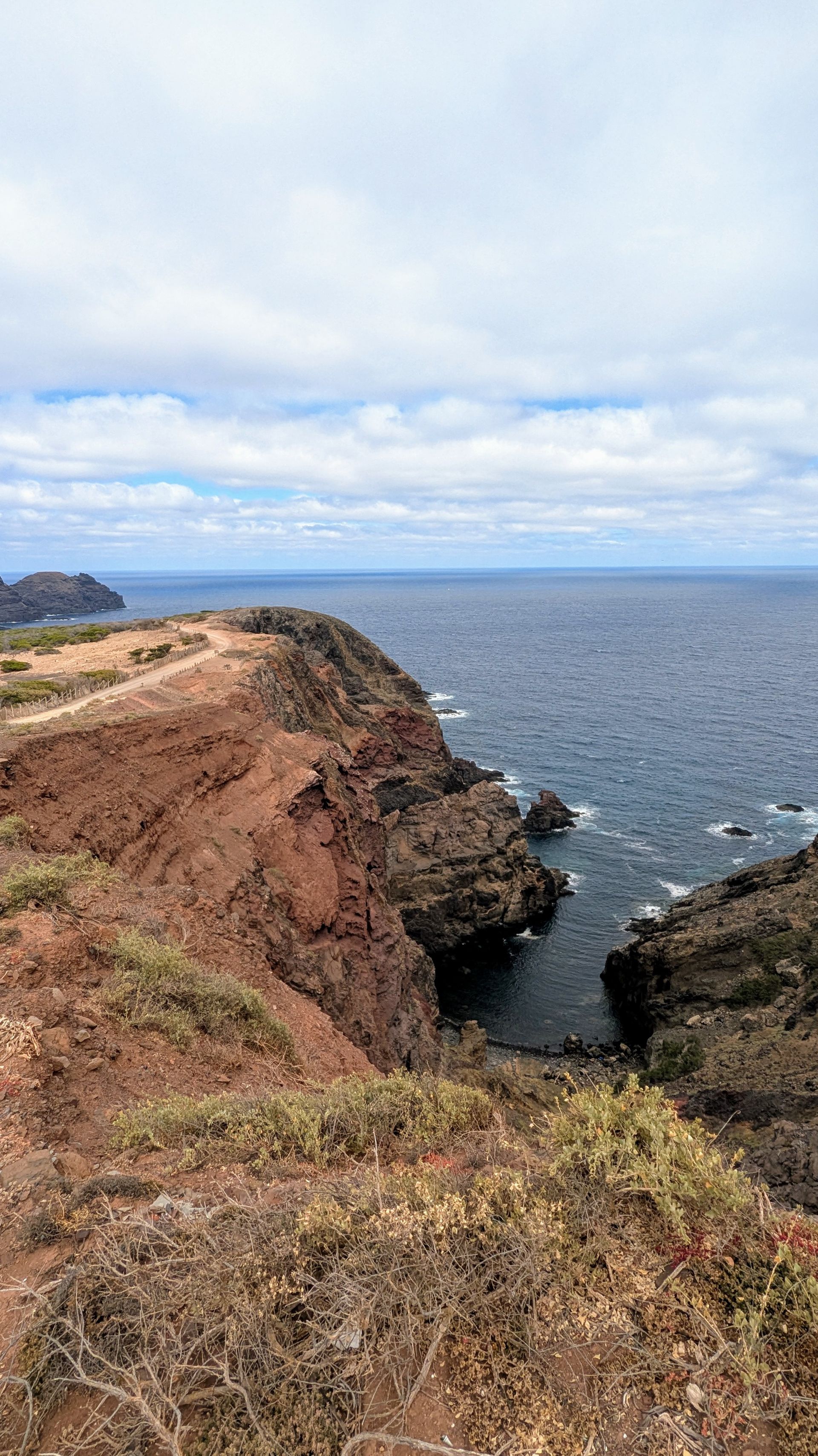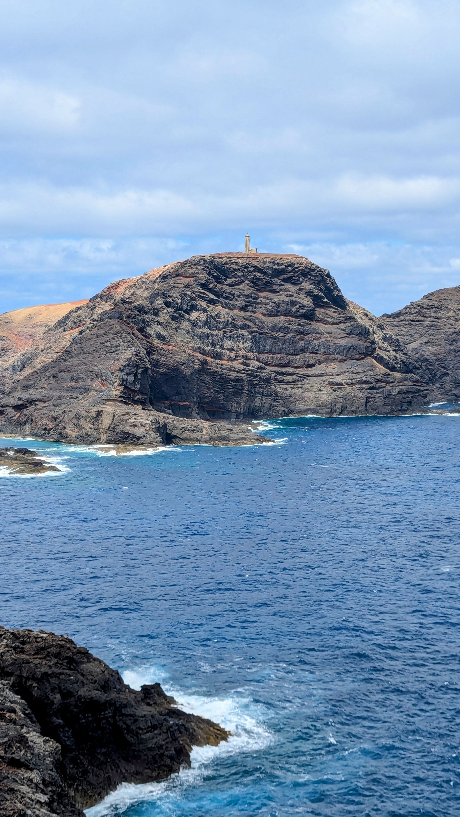 Am Miradouro do Furado Norte ist es dann sehr windig, daher halten wir uns hier nur kurz auf. Vom Aussichtpunkt hat man einen schönen Blick auf die Ilheu do Ferro & den Leuchtturm Farol do Ilheu do Ferro.