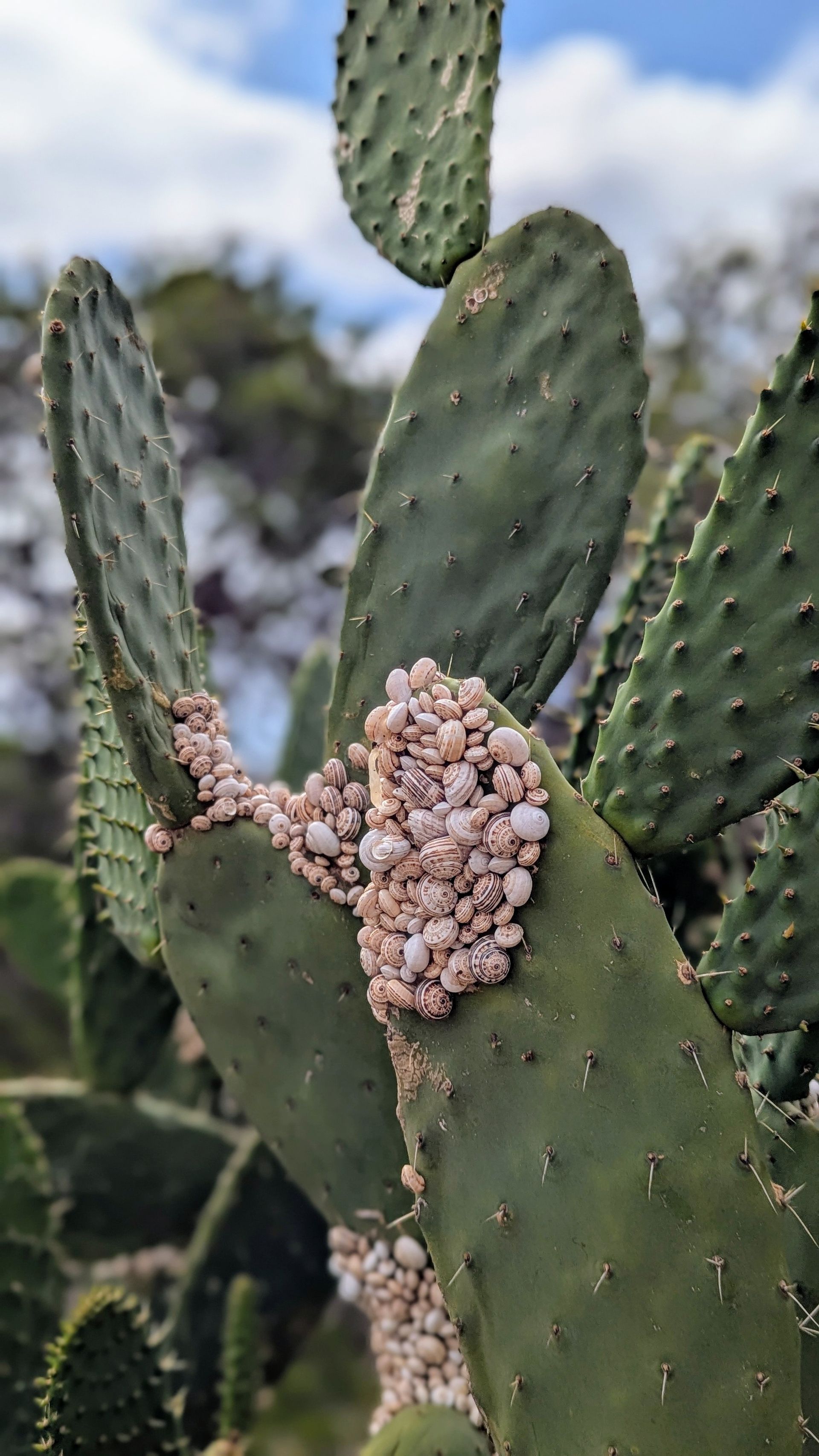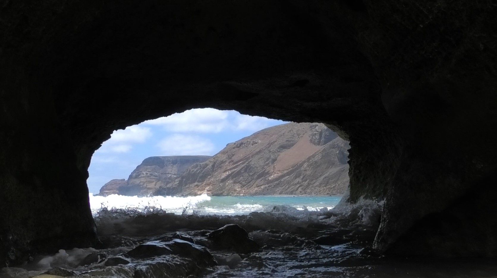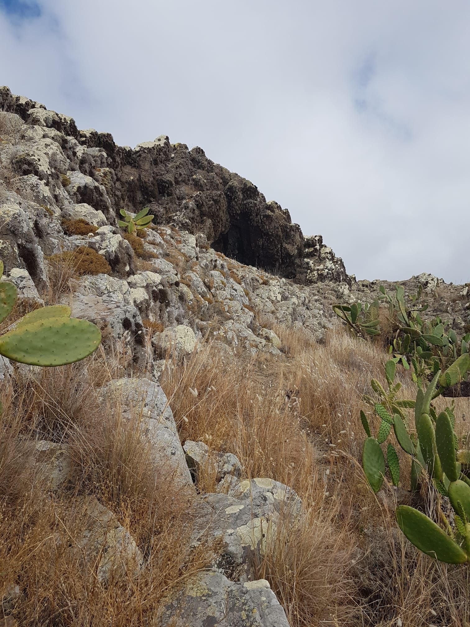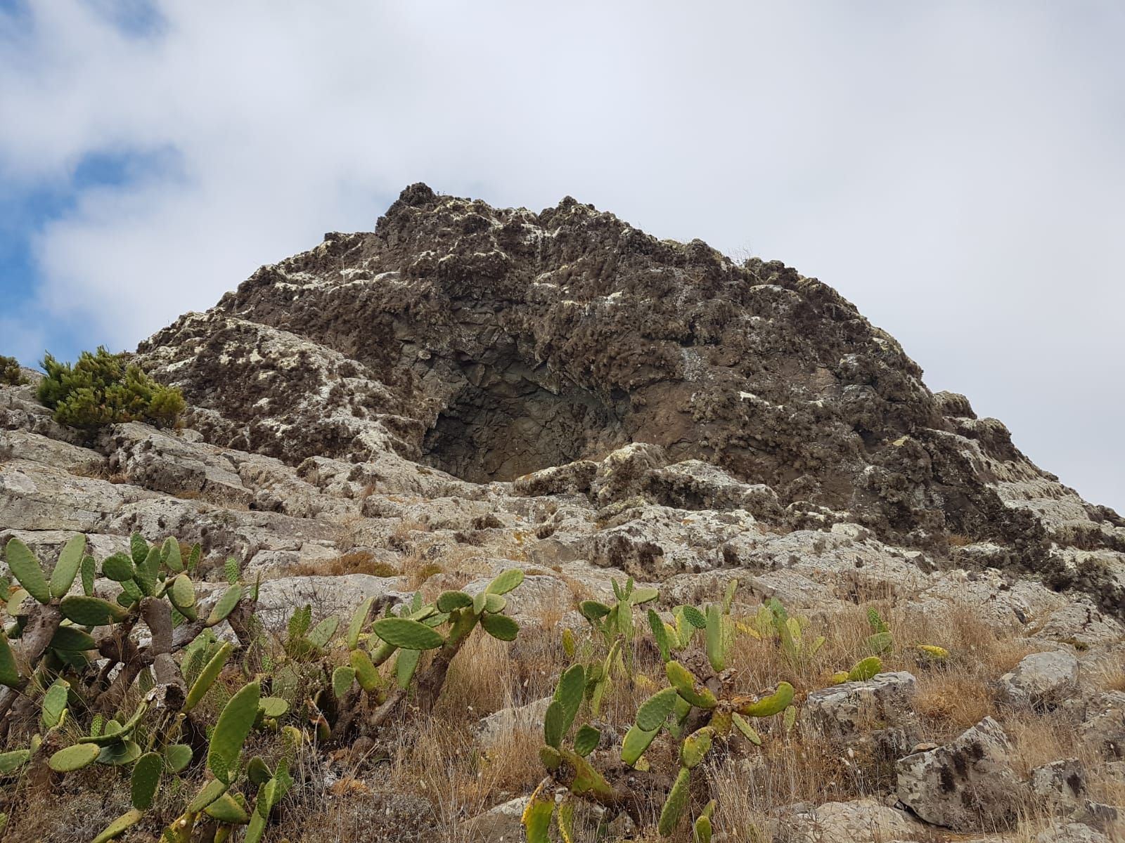 Sohnemann und ich warten, der Gatte schlägt sich bergauf durchs Unterholz und kämpft sich an den Kakteen vorbei, den Fels hinauf bis in die Höhle.