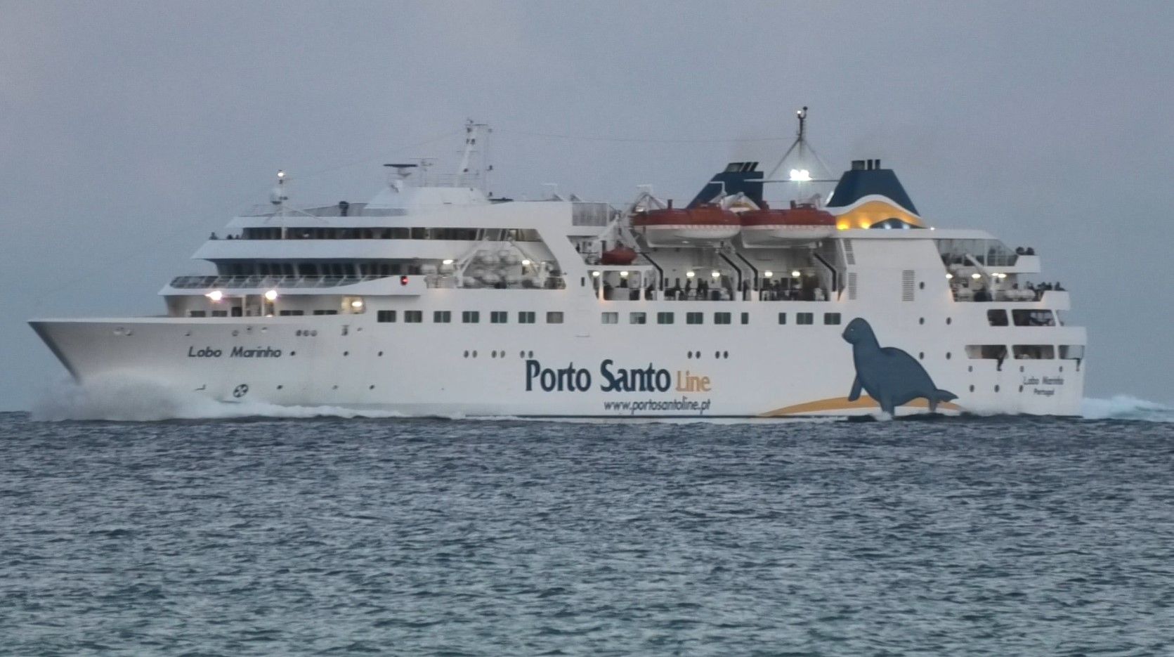 Während wir unseren Drink trinken, sehen wir die Porto Santo Fähre aus Funchal auf dem Meer in den Hafen fahren.