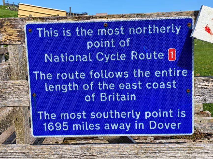 Ich bekomme mein Standard-Frühstück, nur ohne Beans und mit Toast statt Semmeln. So gestärkt geht es nach Norden, bergauf, bergab, meist auf der Hauptstraße, mit leichtem Gepäck. Der Plan sieht vor, dass wir bei der Rückfahrt im nördlichsten Pub Schottlands einkehren, in Mid Yell. Wir haben Regenkleidung an, die hält auch den Wind ab, der teilweise heftig bläst, leider meist von vorne. Die nächste Fähre bringt uns auf die Insel Unst, wieder will niemand Geld von uns. Irgendwie ändert sich die Landschaft, ich kann es nicht genau beschreiben, was es ist. Vielleicht sind die Ansiedlungen grösser, dafür weniger als auf Yell. Schafe, Lämmer, Wiesen, Meer, Bushäuschen bleiben aber gleich. Es ist felsiger, mehr Klippen.