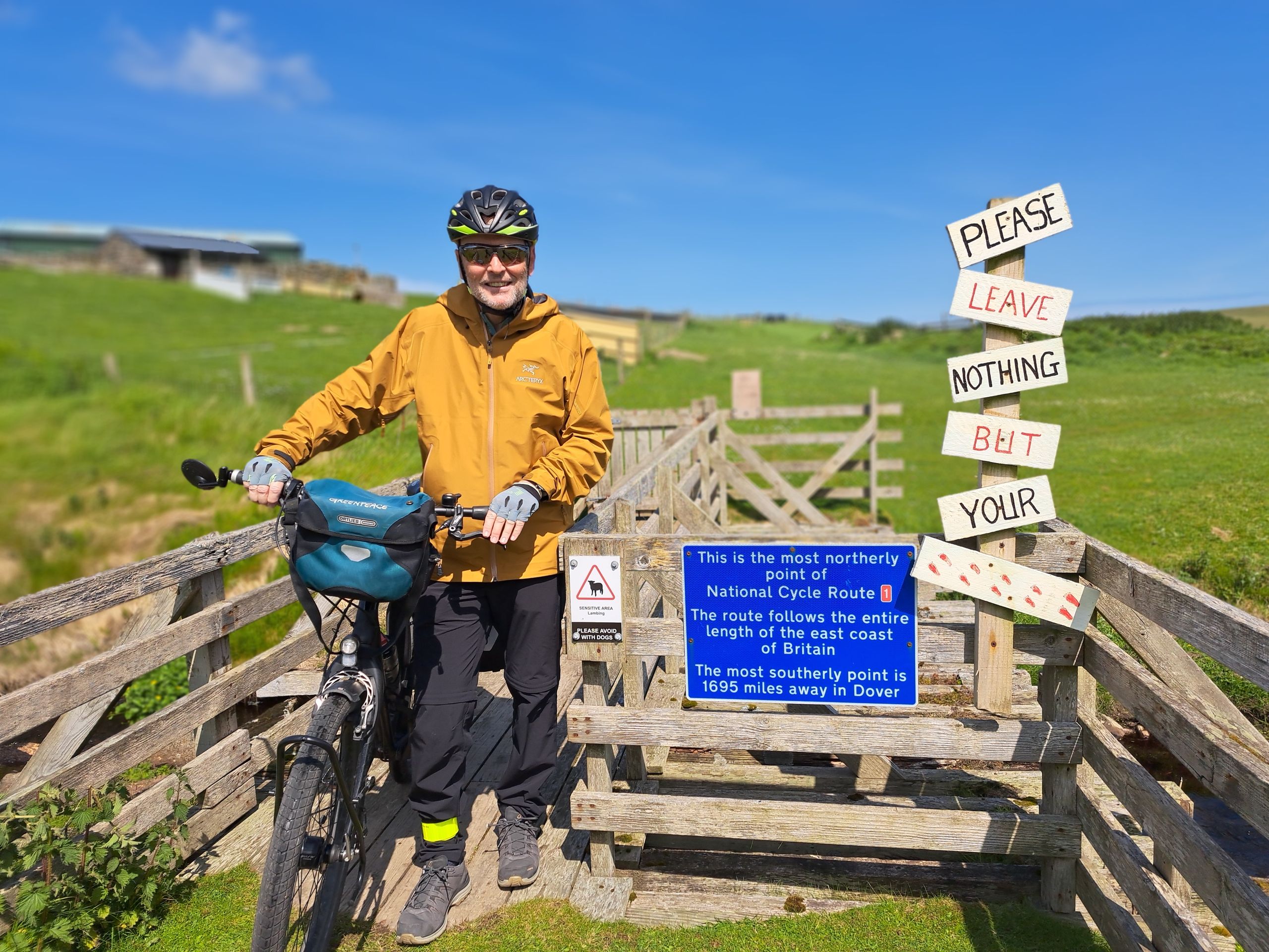 Das Wetter wird immer besser, die Straße schmäler, die Steigungen steiler, die Abfahrten rasanter. Dann endlich: der most northern point der National Cycle Route 1 ist erreicht, mithin der Beginn (oder das Ende) des EV12. Der Strand wieder traumhaft, die Aussicht super. Ein weiteres Radlerpaar trifft ein. Wir machen Brotzeit auf den Ruinen des Beobachtungspostens aus den beiden Weltkriegen, die einzige Bank ist leider besetzt. Aber es ist auch so einfach traumhaft. Ich kann fast nicht glauben, was für ein Wetter wir erwischt haben. Ein Spaziergang rundet den Besuch ab, es geht auf dem selben Weg zurück.