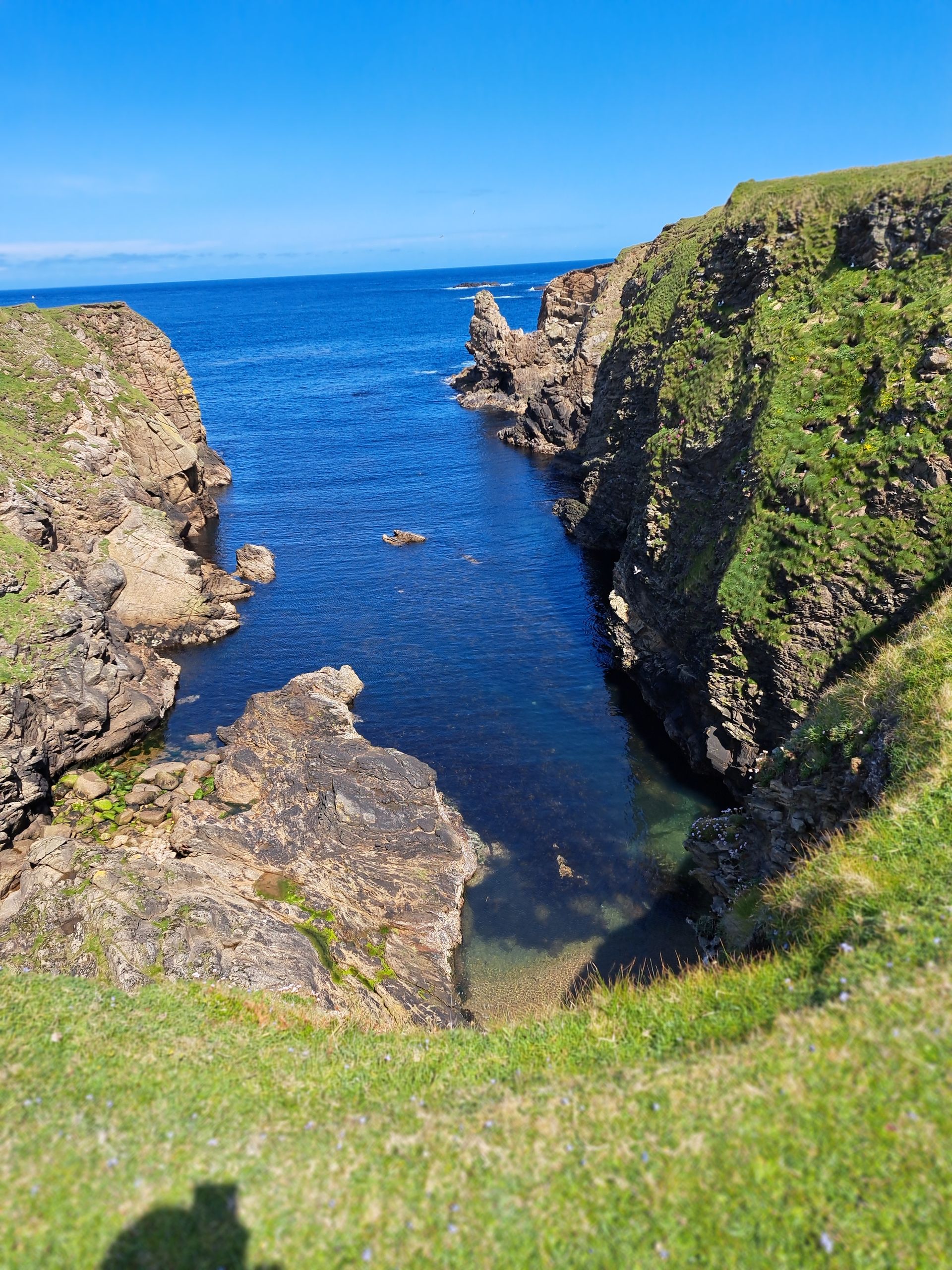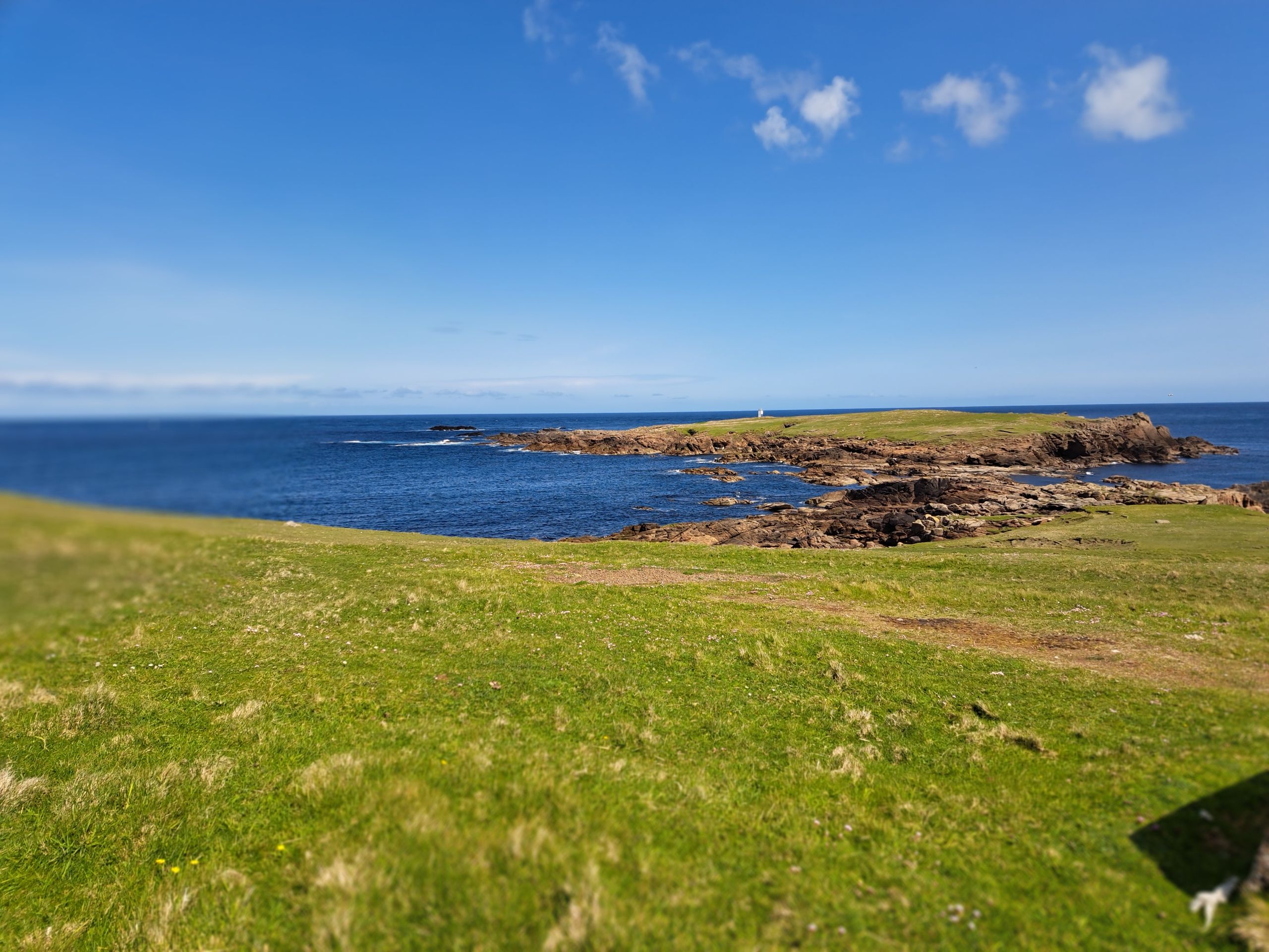 Wieder scheint die Sonne! Der Wind ist weniger. Nach einem guten Frühstück verlassen wir Quam B&B und machen uns auf den Weg nach Lerwick, wo wir im Glen Orchy House gebucht haben. Nach dem gestrigen anstrengenden Tag bin ich ziemlich k.o. Eigentlich wollten wir über die Westroute zurück, machen auch den ersten Abschnitt, der uns nach Brae führt. Scheint ein kleines Zentrum zu sein mit Schulen, einem Laden und einem Imbiss. Doch als wir den sehen, haben wir schon Brotzeit (in der Sonne!) gemacht, also weiter. Ich brauche viele Pausen. Die Route hätte nochmal 300 Höhenmeter mehr als bei der Hinfahrt, aber ich muss passen, es geht einfach nicht. Wir nehmen die Hauptstraße und den Verkehr in Kauf, immer wieder Pause. So erreichen wir nach 70 km und 600 Höhenmetern endlich Lerwick und unser B&B.