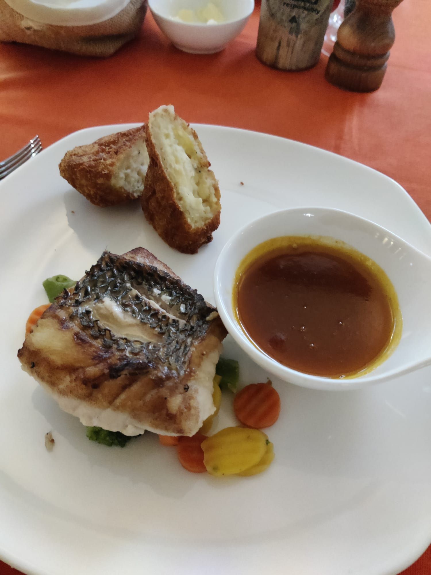 Nach dem gemütlichen Badetag mit Strandspaziergang, sind wir am Heimweg noch in ein Restaurant eingekehrt. Anscheinend haben wir uns im Wasser einen Gusta geholt, denn auf der Speisekarte stand heute Fisch mit Ingwer- und Passionsfruchtsauce.