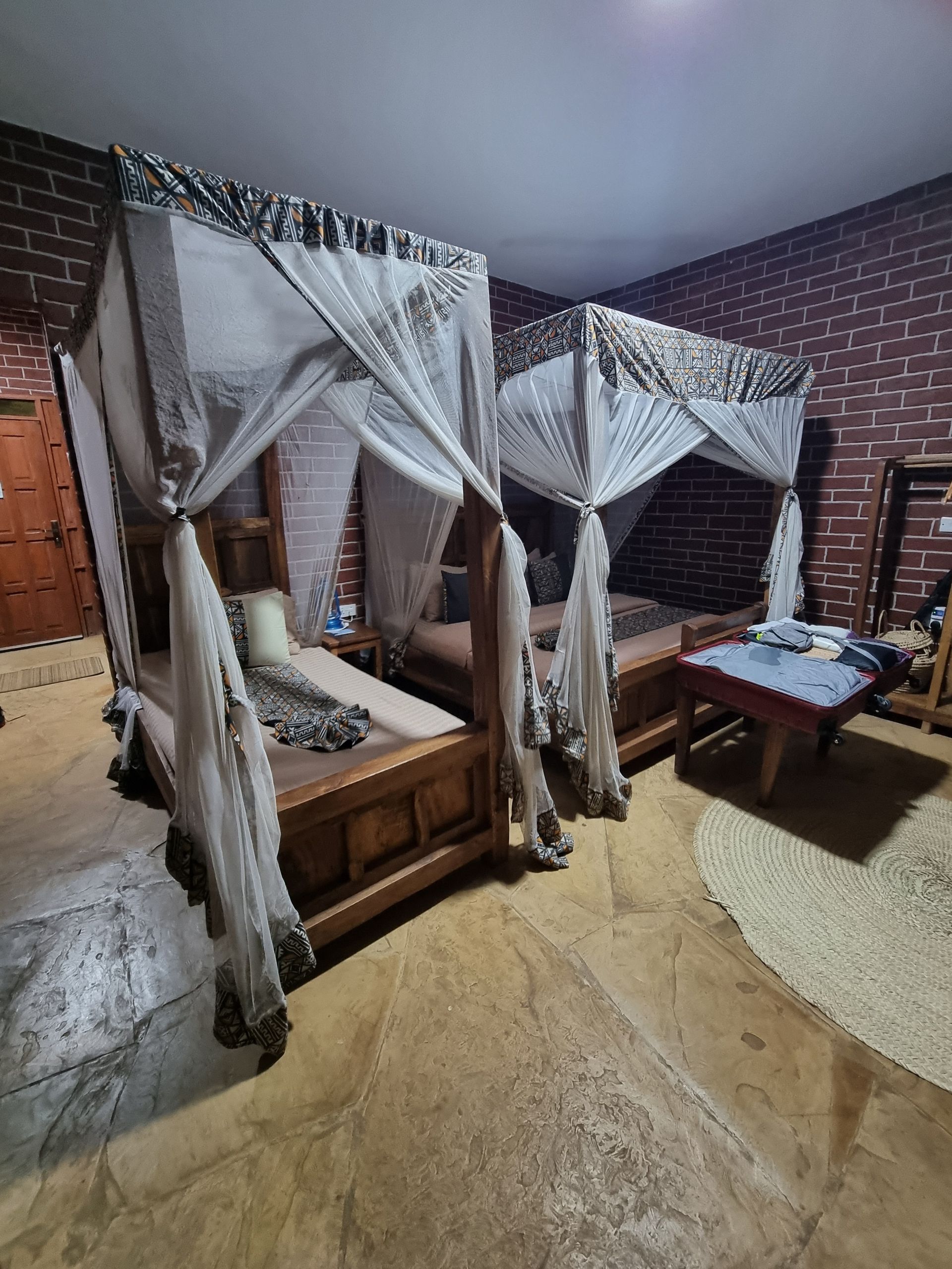 Das 3-Gänge Abendessen ließen wir uns schmecken und nach einigen Stechmückentötungen im Zimmer igelten wir uns in unserem Bett inkl. Insektenschutznetz ein, da es wirklich ein bisschen frisch wurde, was natürlich nicht an den undichten Türen und Fenstern lag, wo auf Grund der Zugluft nicht mal 3-Wetter Taft die Frisur in shape halten konnte.