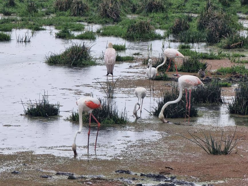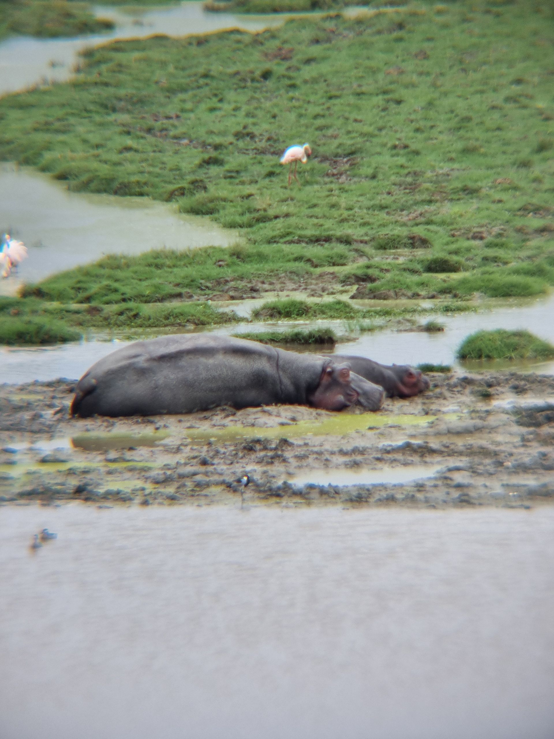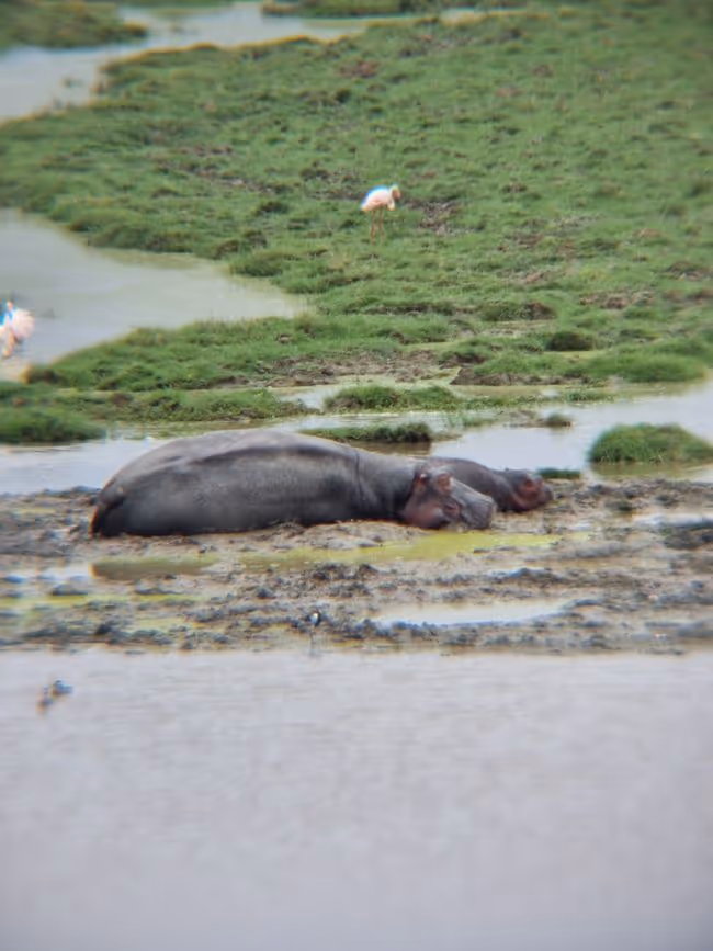 Bei guter Weitsicht konnten wir viele Gnus, Garzellen, tausende Flamingos, Elefanten und Löwen aus der Ferne und Hippos ganz nahe bestaunen.