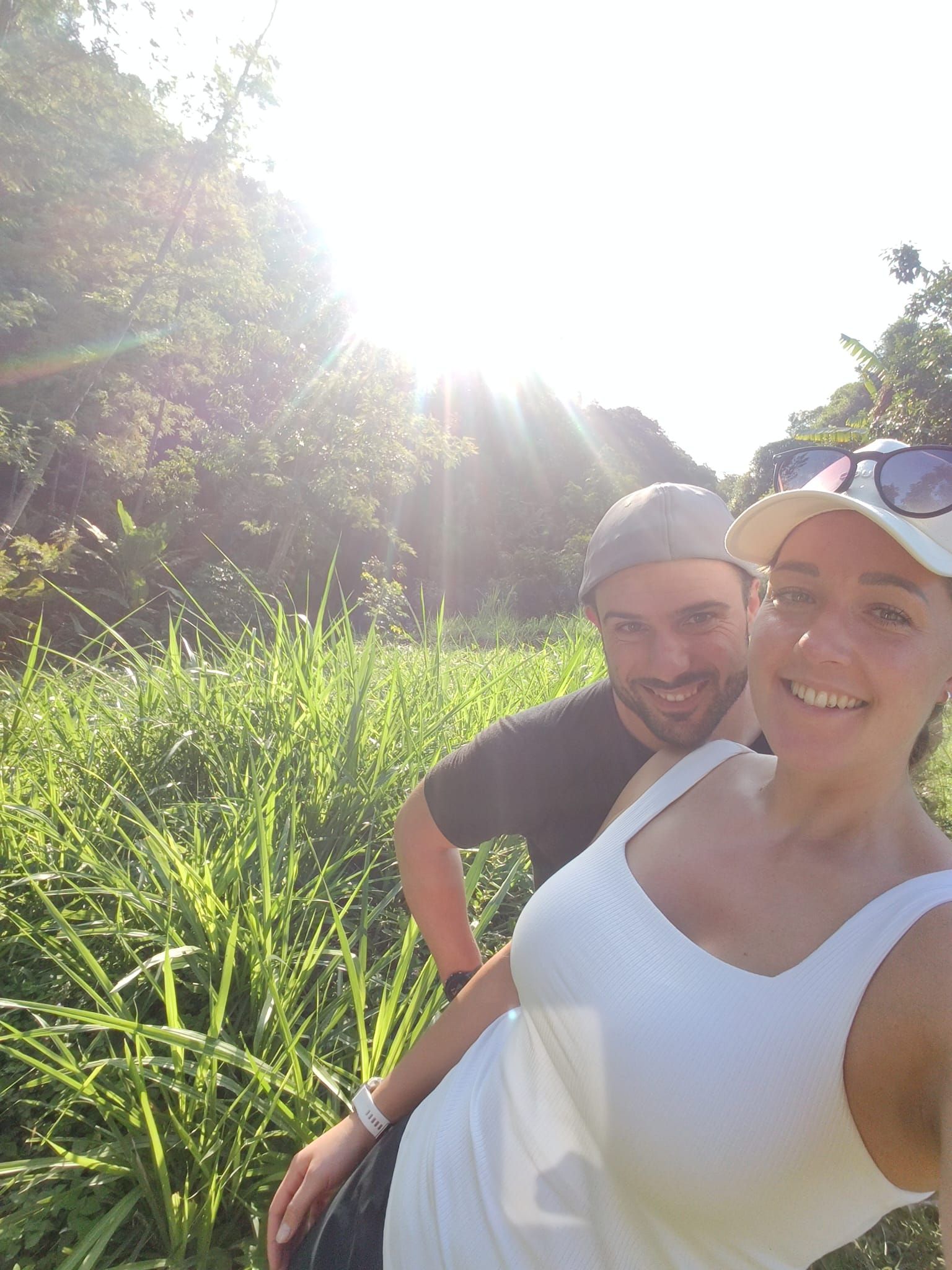 Da wir am Vortag bei der Bananafarmführung von einem Wasserfall in der Nähe erfahren hatten, beschlossen wir, uns dort ein bisschen abzukühlen. Doch leichter gesagt als getan. Ohne Internet, ohne GPS und natürlich nicht beschildert, waren wir auf eine wage Wegbeschreibung und unser ungefähres Gespür für die richtige Richtung angewiesen.