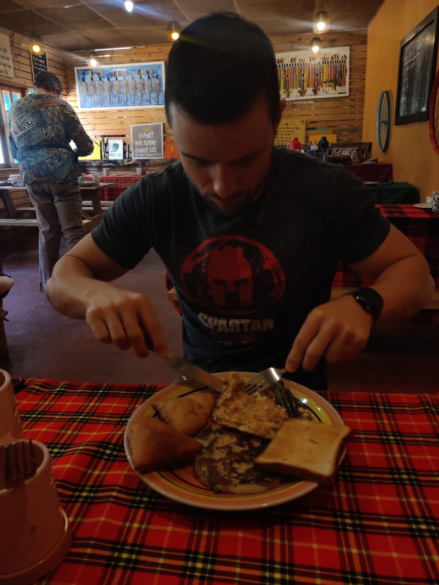 Nach einer erholsamen Nacht in unserem alternativ angehauchten "Ngorongoro"-Zimmer, startete Roli motiviert in den Tag, während Tanja mühselig in der Dusche, unter einem Wasserhahn hockend, ohne Wasserdruck ihre Haare gewaschen hat.