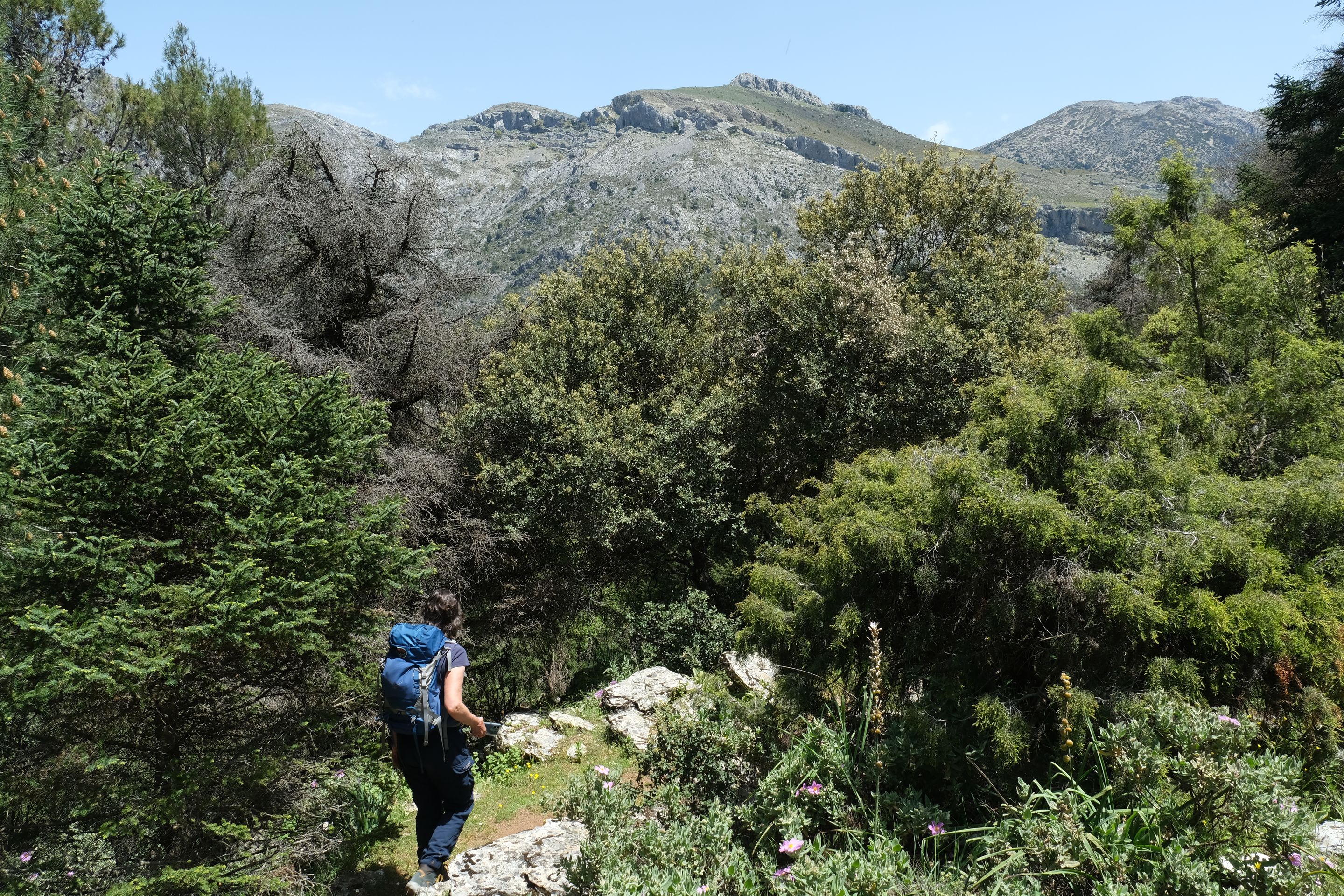 Noch beeindruckender, überraschender und schöner der nächste Tag im Naturpark. Die spanische Tanne (endemisch), daneben Pinien und Korkeichen. Ein Blütenmeer. Dem vielen Regen und bisher kühlen Frühling sei es gedankt :-)