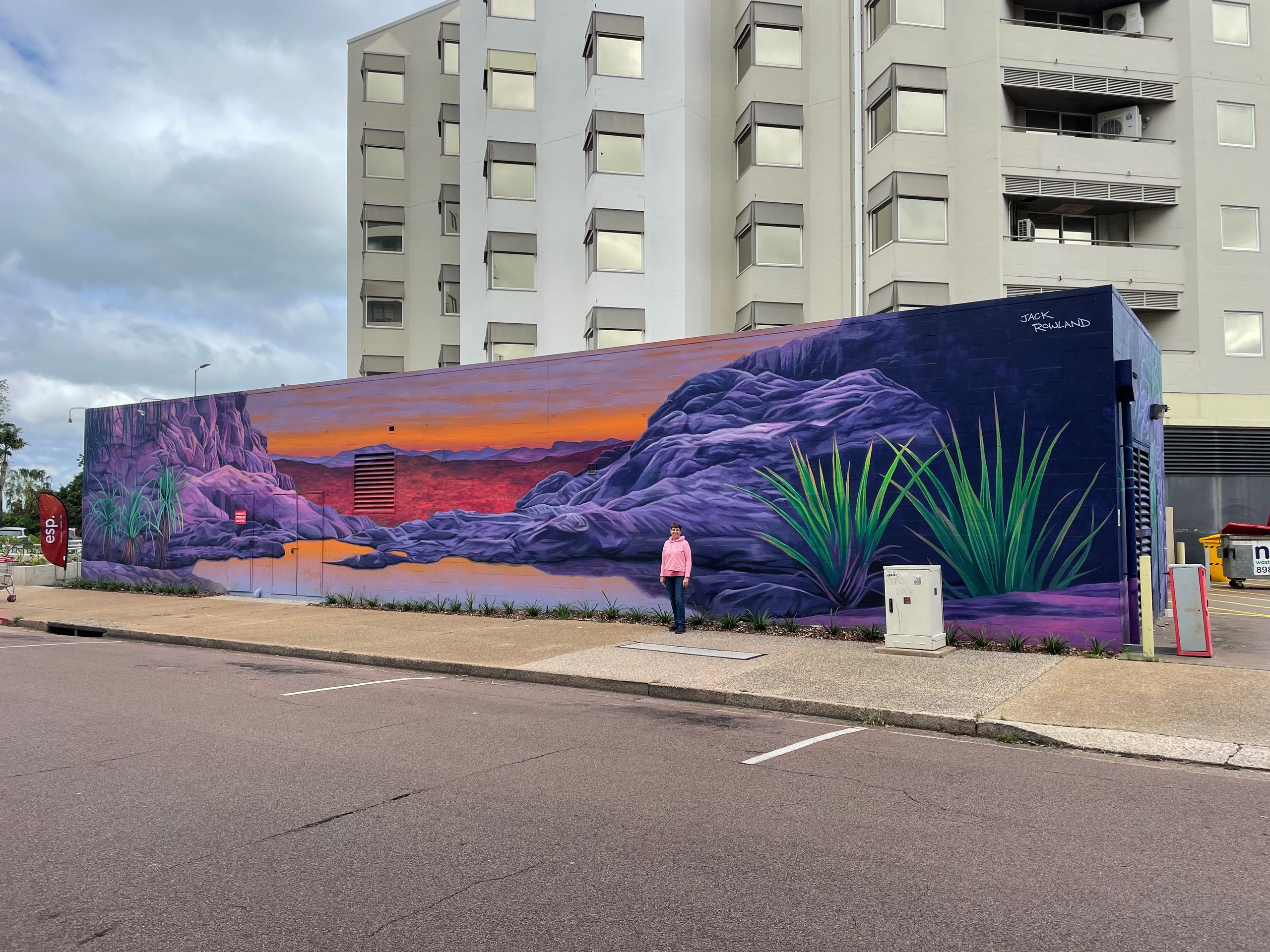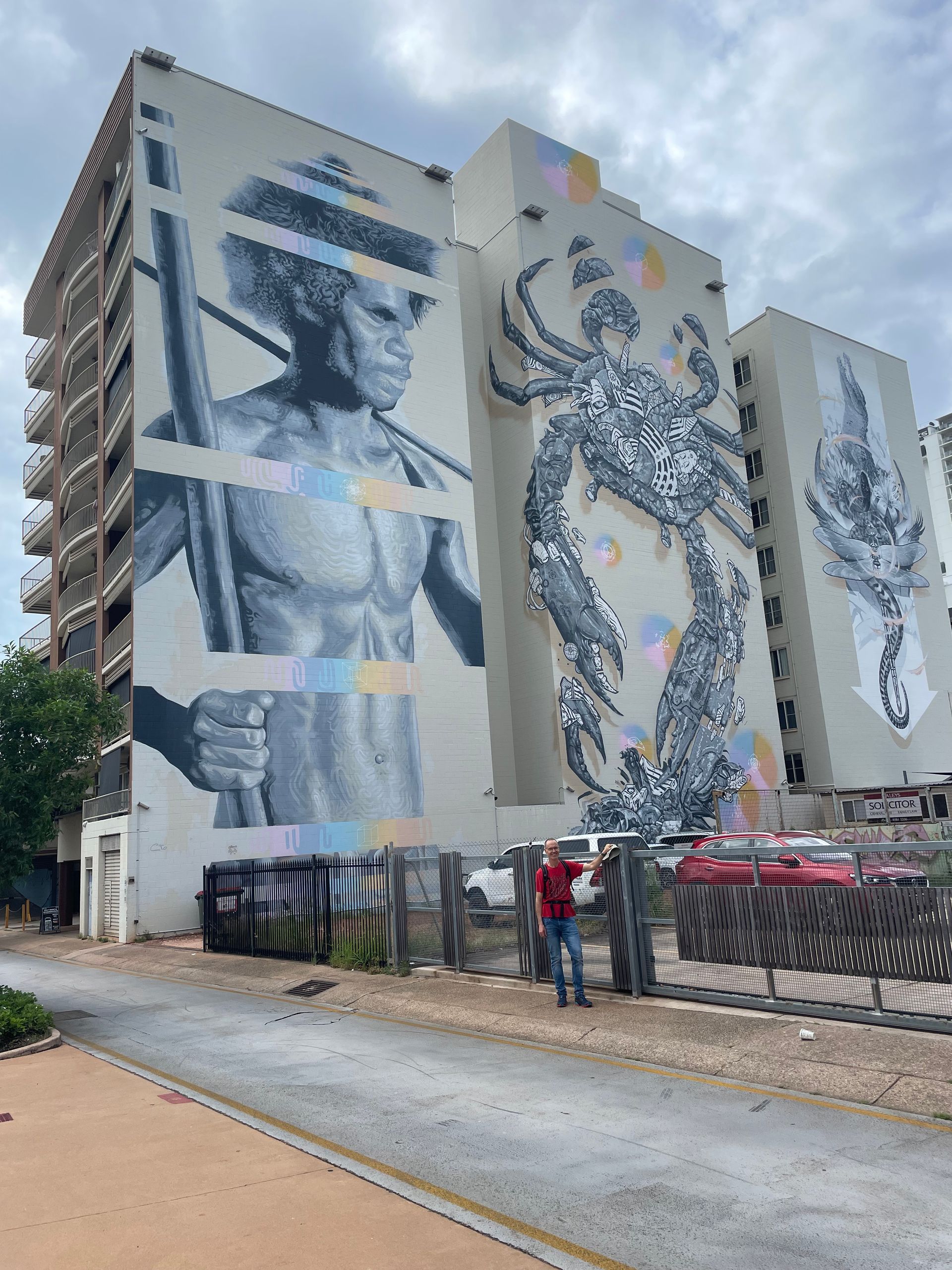 Danach haben wir einen Rundgang durch und um das Stadtzentrum gemacht. Angefangen haben wir im ruhigen Bicentennial Park, oberhalb des mit farbenfrohen Steinen übersäten Lameroo Beach. Das war unser erster Kontakt mit dem Meer (Timor Sea). Weiter ging’s, vorbei an eindrucksvoller Street Art und durch provinzielle Einkaufstrassen, bis zum Parlamentsgebäude. Der Besuch einer Aboriginal Arts Gallery und dem Waterfront-Bereich mit Wellenbad, Wasserspielplatz und jeder Menge an Gastronomie, bildeten den Abschluss.