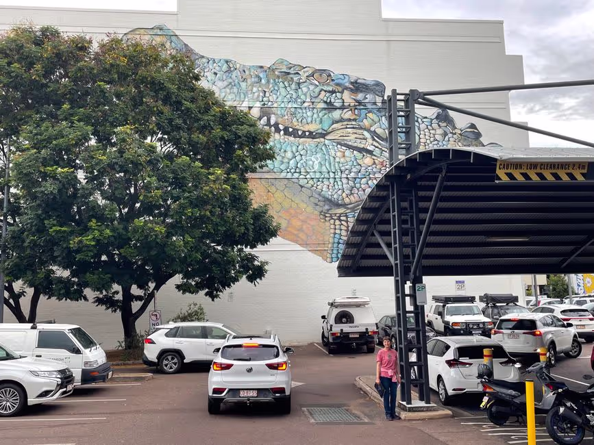 Die Ursache dafür liegt in unserer verspäteten Abreise in München. Wegen Motorproblemen mussten noch die Ingenieure ran. 1,5 Stunden später ging es dann los. Leider hatten wir planmäßig nur 2 Stunden für den Umstieg in Singapur. Das musste dann in 30 Minuten von statten gehen. Wir sind schon von einem kleinen Autolein am Gate erwartet und direkt zum Skytrain gefahren worden. Mit fliegenden Fahnen haben wir den Anschluss gerade noch bekommen. Unser Gepäck aber nicht 😞Die Formalitäten dazu haben bei Ankunft in Darwin viel Zeit gekostet. Schließlich sind wir mit jeweils 150 $ Cash für das Nötigste ausgestattet worden.