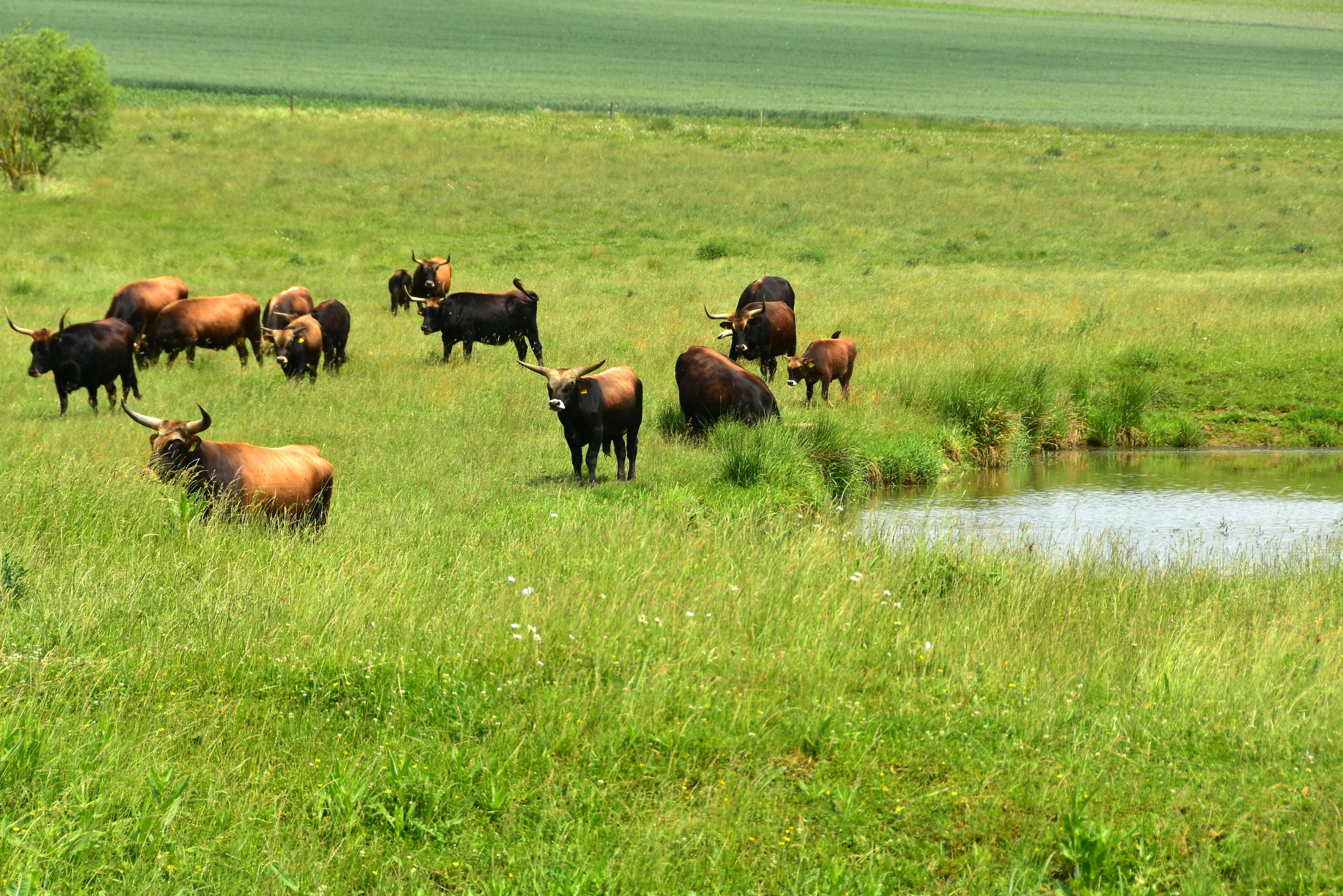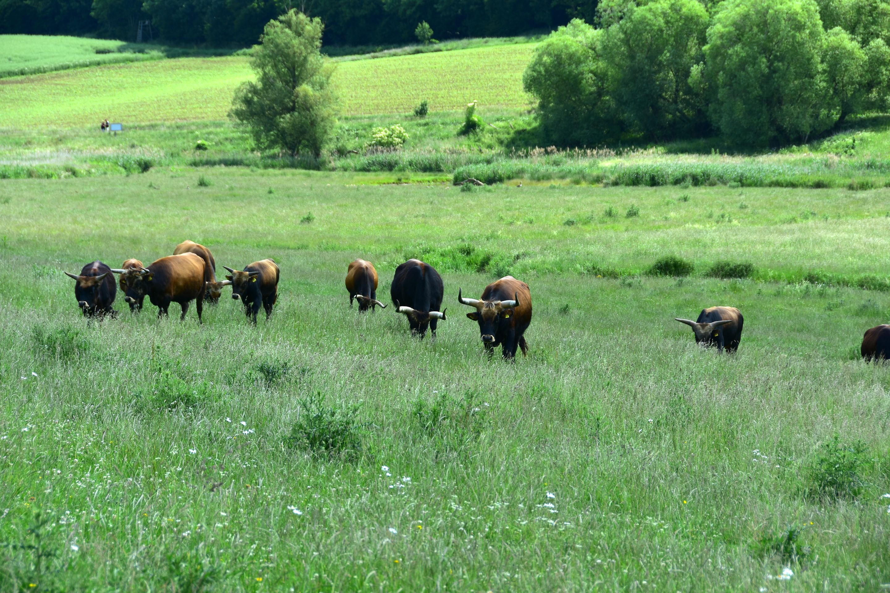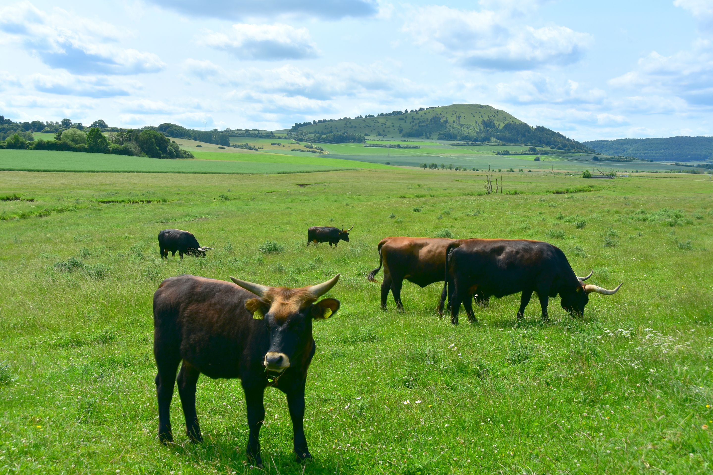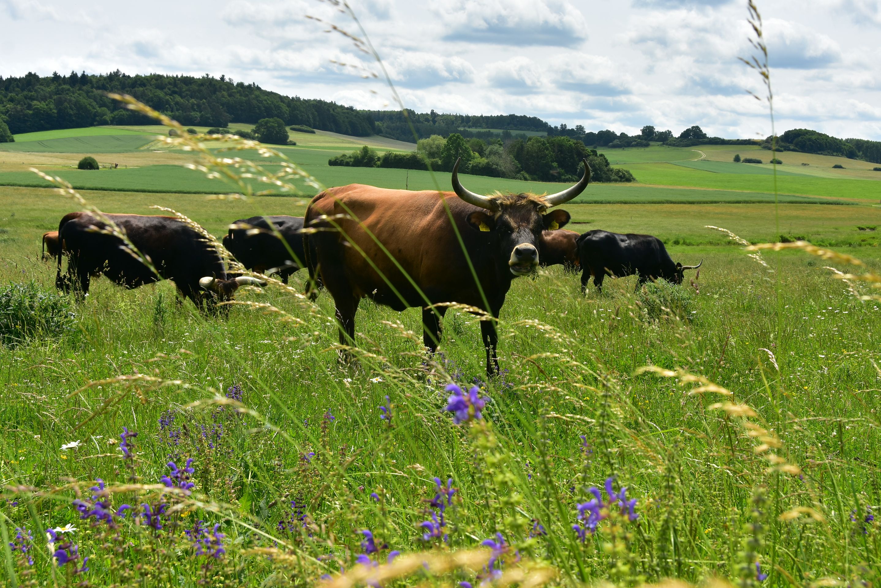 Die Sonne knallt unbarmherzig vom Himmel, unzählige Grillen zirpen im hohen Gras... Die Luft flirrt und die Ruhe ist so beherrschend, dass man sie fast hören kann...Ein Hauch von Serengeti weht über die Hügel der Ostalb: Inmitten der urtümlichen, renaturierten Auenlandschaft der Sechta zwischen Oberdorf und Kerkingen bietet eine Herde von etwa 20 imposanten Auerochsen ein fast vergessenes Bild urwüchsiger Natur. Diese beeindruckenden, rückgezüchteten Urrinder – erkennbar an ihrem dichten, zotteligen Fell und mächtigen Hörnern mit teilweise über einem Meter Spannweite – beweiden ganzjährig eine 25 Hektar große Weidekoppel in nahezu freier Wildbahn. Wanderer und Radfahrer können die kolossalen Tiere auf einem gut ausgeschilderten Rundweg bestaunen, der idyllisch am Fuße des markanten Berges Ipf und des malerischen Schlosses Baldern verläuft. Entlang des 5 Kilometer langen, renaturierten Bachlaufs wird die dynamische Kraft der Natur sichtbar: Hier zeigt sich, wie der neue Flussverlauf der Sechta aktiv die Landschaft umgestaltet und Flora und Fauna sich stetig wandeln und neu ansiedeln. Diesen faszinierenden, naturnahen Abschnitt haben der Landschaftserhaltungsverband Ostalbkreis und der Wasser- und Bodenverband Sechta-Eger gemeinsam geschaffen. Den idealen Einstieg in den Rundweg bieten die Wanderparkplätze am Edelbach, an der keltischen Schutzhütte bei Oberdorf oder direkt beim "Haus am Fluss" in Itzlingen. Die Geschichte der „echten“ Auerochsen (auch „Ur“ oder „Urus“ genannt) reicht tief zurück: Einst in Asien und Europa weit verbreitet, waren sie die größten und mächtigsten Wildrinder ihrer Zeit – mit einem Stockmaß von etwa 1,8 Metern und einem Gewicht von über einer Tonne. Vor etwa 6.500 Jahren im Vorderen Orient domestiziert, sind sie die Stammväter der meisten heutigen Hausrinder. Tragischerweise führten intensive Bejagung und der Verlust ihres natürlichen Lebensraums dazu, dass die letzten wilden Auerochsen bereits im frühen 17. Jahrhundert ausstarben. Die stattliche Herde im Besitz der Stadt Bopfingen wird mit großer Sorgfalt von Alois und Margret Wohlfrom betreut, die auch den nahegelegenen Milchviehbetrieb in der Edelmühle mit Weidehaltung führen. Lebensraum der Tiere ist die renaturierte Schneidheimer Sechtaaue, wo in den Jahren 2009 und 2010 das bedeutende Projekt ProSeKKO (Projekt Sechta Kirchheim, Kerkingen, Oberdorf) realisiert wurde. Als lebende „Landschaftsgärtner“ spielen die Auerochsen in solchen Beweidungsprojekten eine Schlüsselrolle: Durch ihr intensives Grasen halten sie die Vegetation niedrig und die Landschaft offen. Damit tragen sie aktiv dazu bei, wertvolle, historisch gewachsene Kulturlandschaften zu erhalten oder sogar in einen Zustand zurückzuversetzen, der dem ursprünglichen Wildnischarakter Mitteleuropas mit seinen großen Weidetieren wie Auerochsen, Wildpferden und Wisenten nahekommt.Der Weg lohnt sich. Er ist auch besonders für Familien mit Kindern geeignet, denn die Natur und die Tiere kosten keinen Eintritt. An der Keltenhütte unterhalb des Ipfs kann man einen Baumlehrpfad mit den Bäumen des Jahres besuchen. Wichtig: schaut euch die Tiere nur an, respektiert ihren Lebensraum und macht bitte eure Selfis von außerhalb des Zaunes! Könnte sonst unangenehm werden. Einen Einkehrtipp hätten wir euch auch noch anzubieten: der Biergarten im Wasserschloss Trochtelfingen. https://stolchschloss.com/biergarten/Dort warten kühle Getränke, ein schöner Blick auf die Ruine Flochberg und ein sensationeller Wurstsalat auf euch. Der Umweg lohnt sich, versprochen!