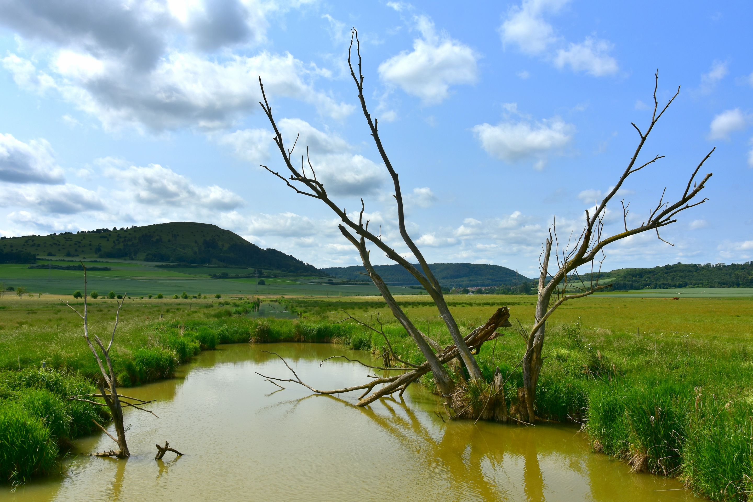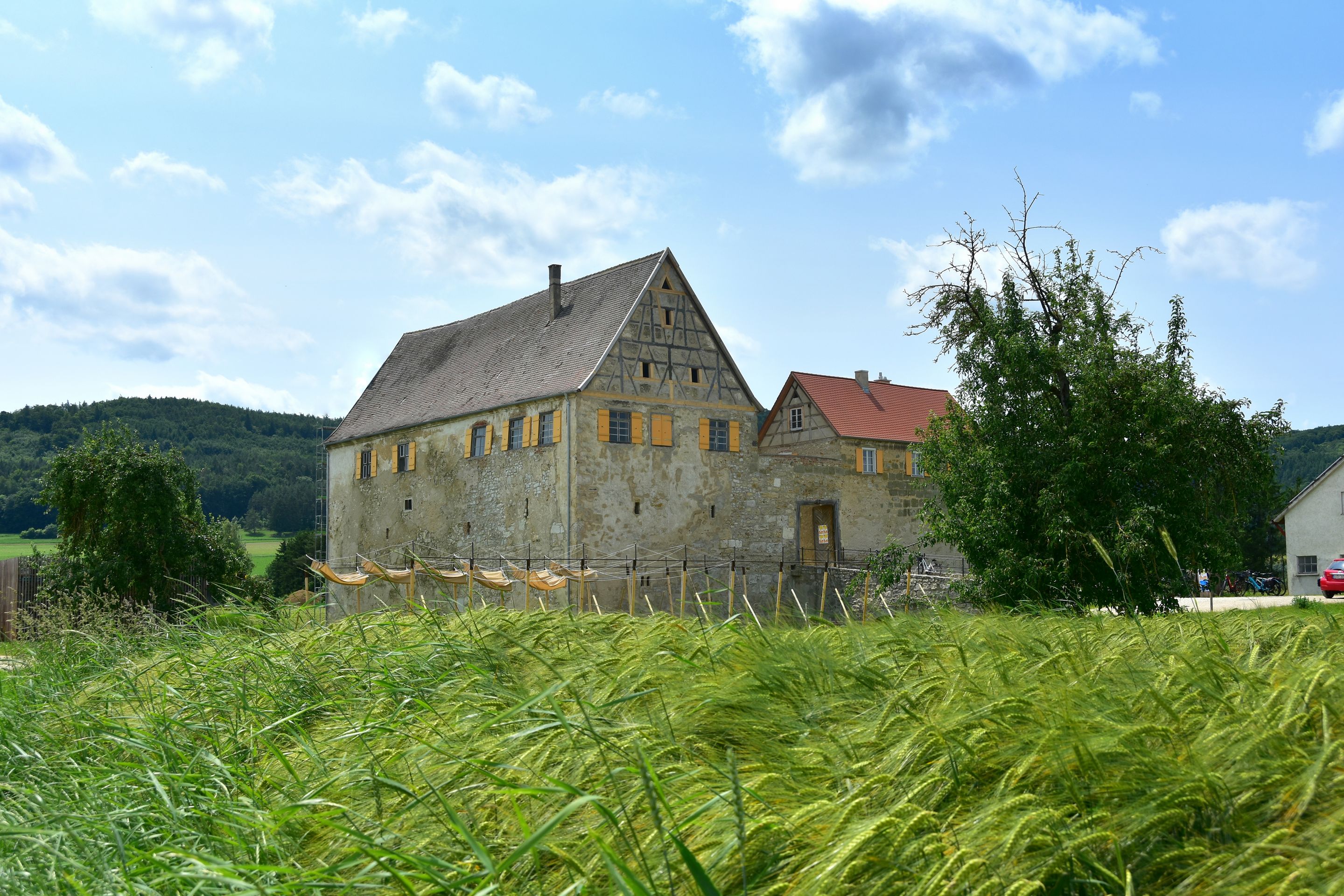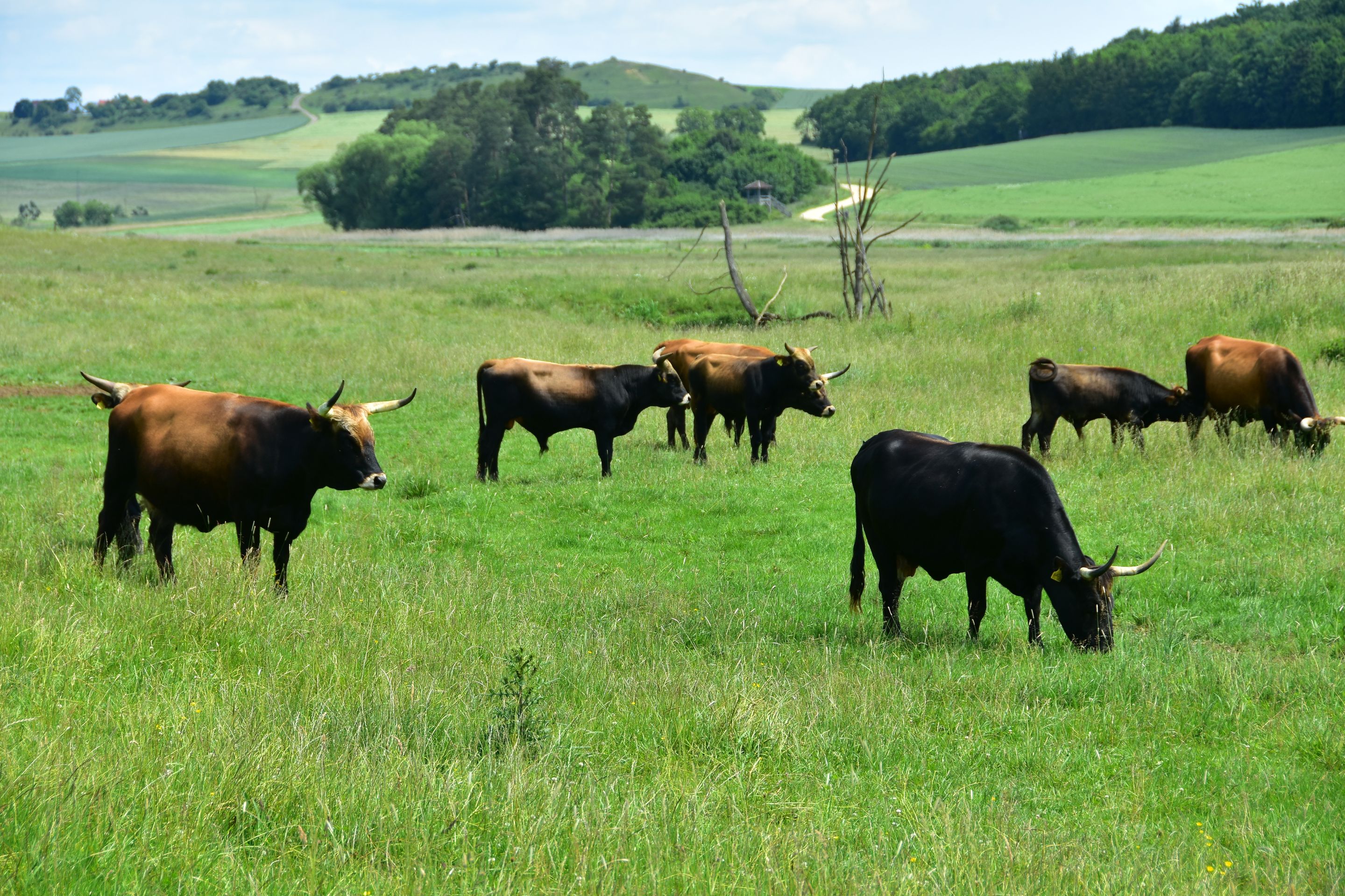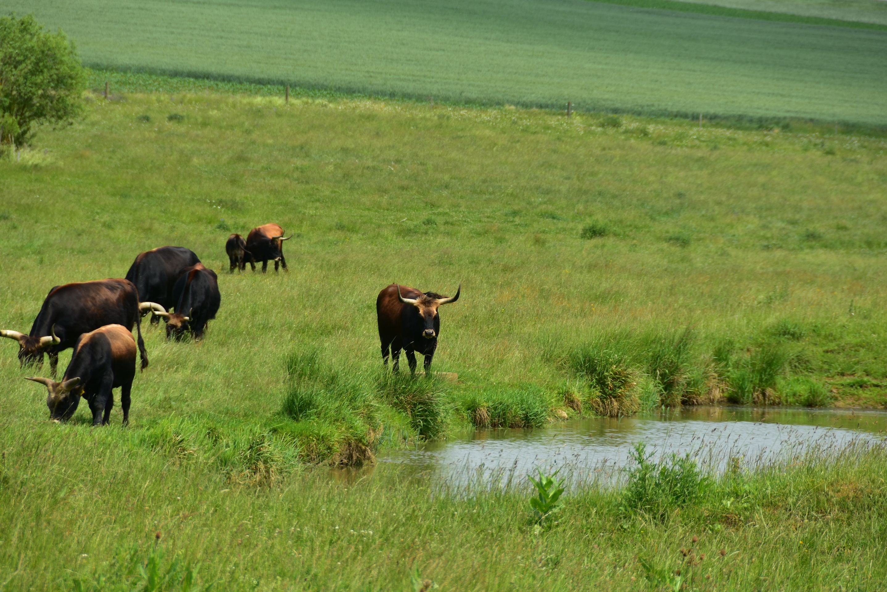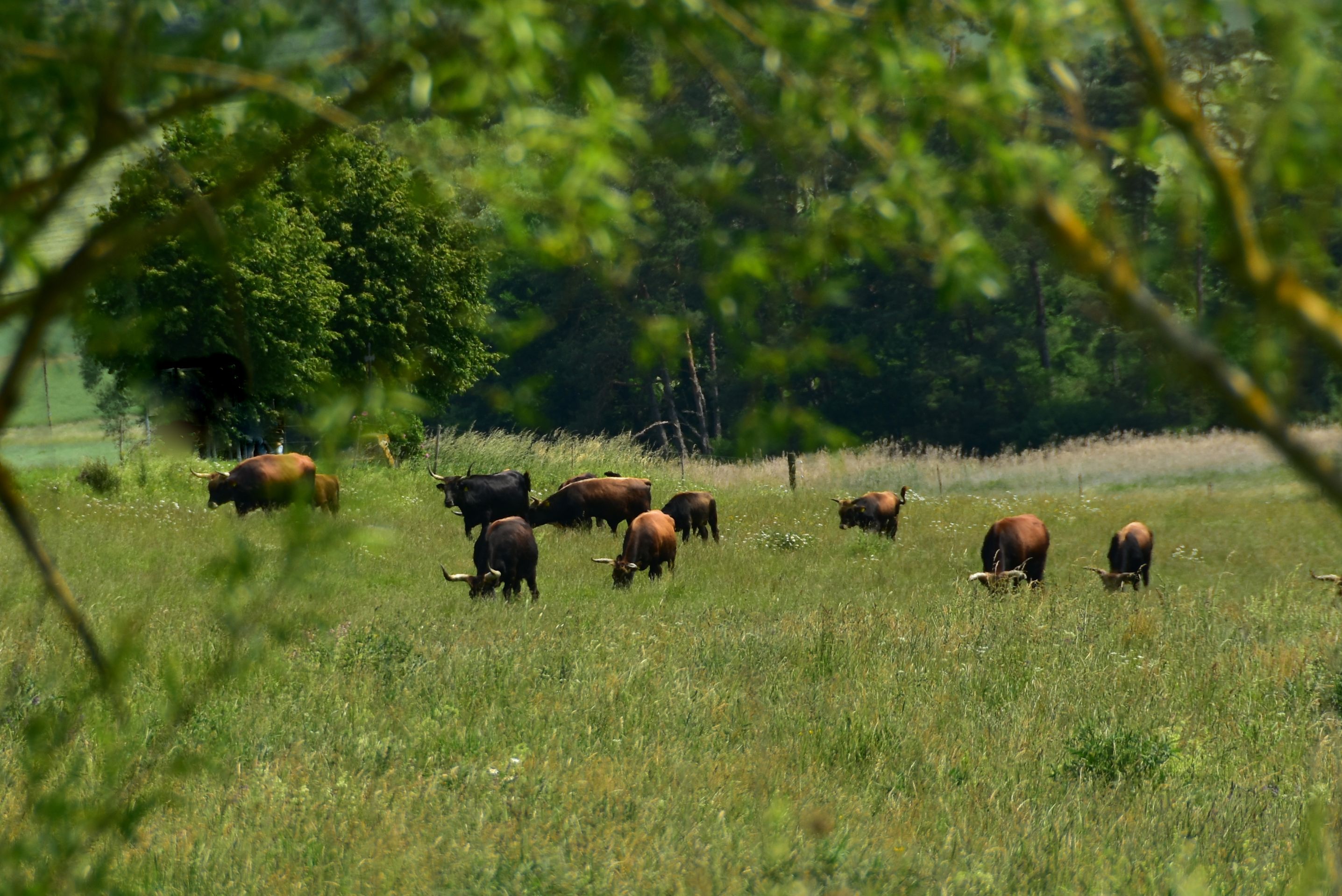 Die Sonne knallt unbarmherzig vom Himmel, unzählige Grillen zirpen im hohen Gras... Die Luft flirrt und die Ruhe ist so beherrschend, dass man sie fast hören kann...Ein Hauch von Serengeti weht über die Hügel der Ostalb: Inmitten der urtümlichen, renaturierten Auenlandschaft der Sechta zwischen Oberdorf und Kerkingen bietet eine Herde von etwa 20 imposanten Auerochsen ein fast vergessenes Bild urwüchsiger Natur. Diese beeindruckenden, rückgezüchteten Urrinder – erkennbar an ihrem dichten, zotteligen Fell und mächtigen Hörnern mit teilweise über einem Meter Spannweite – beweiden ganzjährig eine 25 Hektar große Weidekoppel in nahezu freier Wildbahn. Wanderer und Radfahrer können die kolossalen Tiere auf einem gut ausgeschilderten Rundweg bestaunen, der idyllisch am Fuße des markanten Berges Ipf und des malerischen Schlosses Baldern verläuft. Entlang des 5 Kilometer langen, renaturierten Bachlaufs wird die dynamische Kraft der Natur sichtbar: Hier zeigt sich, wie der neue Flussverlauf der Sechta aktiv die Landschaft umgestaltet und Flora und Fauna sich stetig wandeln und neu ansiedeln. Diesen faszinierenden, naturnahen Abschnitt haben der Landschaftserhaltungsverband Ostalbkreis und der Wasser- und Bodenverband Sechta-Eger gemeinsam geschaffen. Den idealen Einstieg in den Rundweg bieten die Wanderparkplätze am Edelbach, an der keltischen Schutzhütte bei Oberdorf oder direkt beim "Haus am Fluss" in Itzlingen. Die Geschichte der „echten“ Auerochsen (auch „Ur“ oder „Urus“ genannt) reicht tief zurück: Einst in Asien und Europa weit verbreitet, waren sie die größten und mächtigsten Wildrinder ihrer Zeit – mit einem Stockmaß von etwa 1,8 Metern und einem Gewicht von über einer Tonne. Vor etwa 6.500 Jahren im Vorderen Orient domestiziert, sind sie die Stammväter der meisten heutigen Hausrinder. Tragischerweise führten intensive Bejagung und der Verlust ihres natürlichen Lebensraums dazu, dass die letzten wilden Auerochsen bereits im frühen 17. Jahrhundert ausstarben. Die stattliche Herde im Besitz der Stadt Bopfingen wird mit großer Sorgfalt von Alois und Margret Wohlfrom betreut, die auch den nahegelegenen Milchviehbetrieb in der Edelmühle mit Weidehaltung führen. Lebensraum der Tiere ist die renaturierte Schneidheimer Sechtaaue, wo in den Jahren 2009 und 2010 das bedeutende Projekt ProSeKKO (Projekt Sechta Kirchheim, Kerkingen, Oberdorf) realisiert wurde. Als lebende „Landschaftsgärtner“ spielen die Auerochsen in solchen Beweidungsprojekten eine Schlüsselrolle: Durch ihr intensives Grasen halten sie die Vegetation niedrig und die Landschaft offen. Damit tragen sie aktiv dazu bei, wertvolle, historisch gewachsene Kulturlandschaften zu erhalten oder sogar in einen Zustand zurückzuversetzen, der dem ursprünglichen Wildnischarakter Mitteleuropas mit seinen großen Weidetieren wie Auerochsen, Wildpferden und Wisenten nahekommt.Der Weg lohnt sich. Er ist auch besonders für Familien mit Kindern geeignet, denn die Natur und die Tiere kosten keinen Eintritt. An der Keltenhütte unterhalb des Ipfs kann man einen Baumlehrpfad mit den Bäumen des Jahres besuchen. Wichtig: schaut euch die Tiere nur an, respektiert ihren Lebensraum und macht bitte eure Selfis von außerhalb des Zaunes! Könnte sonst unangenehm werden. Einen Einkehrtipp hätten wir euch auch noch anzubieten: der Biergarten im Wasserschloss Trochtelfingen. https://stolchschloss.com/biergarten/Dort warten kühle Getränke, ein schöner Blick auf die Ruine Flochberg und ein sensationeller Wurstsalat auf euch. Der Umweg lohnt sich, versprochen!