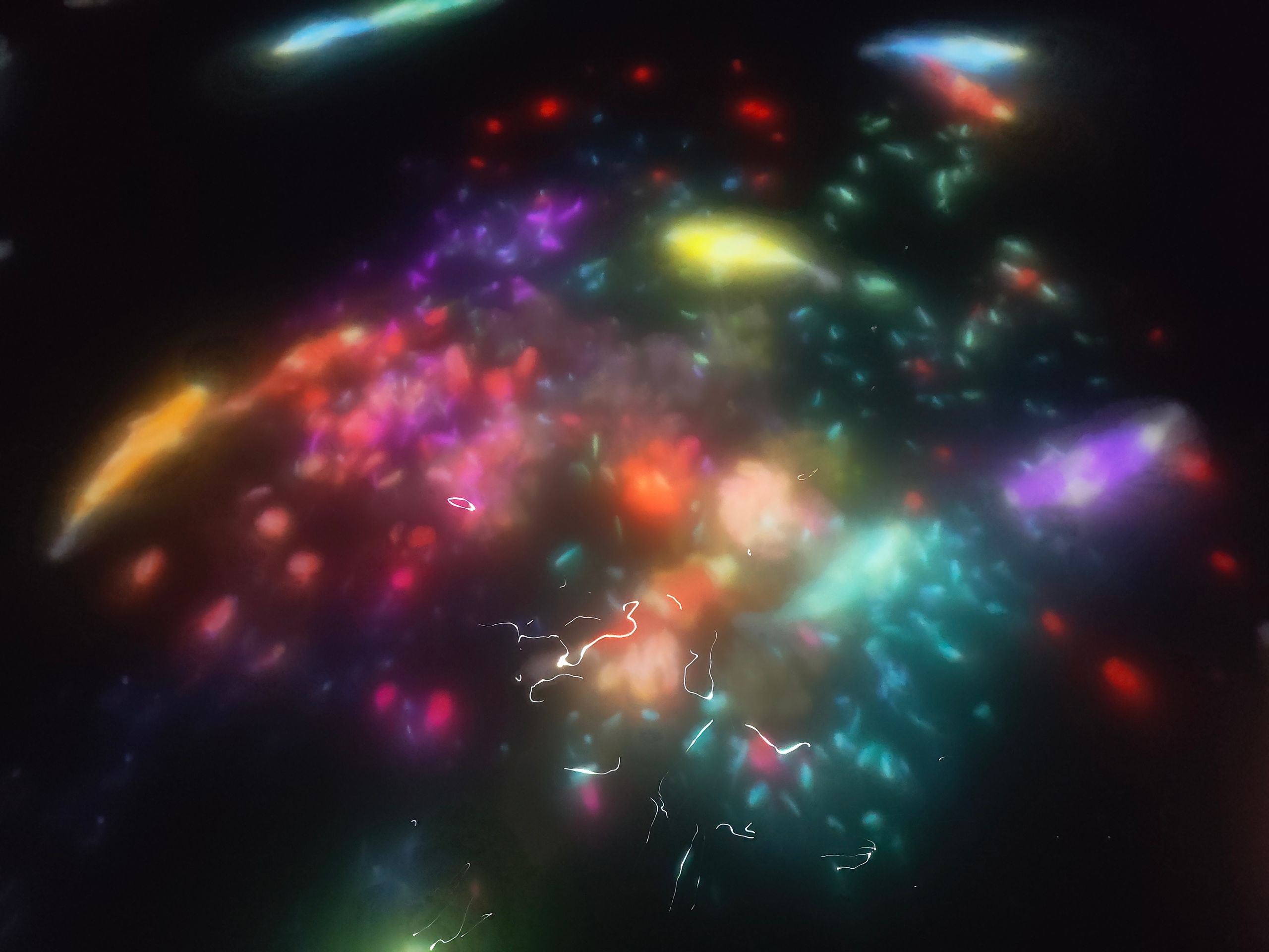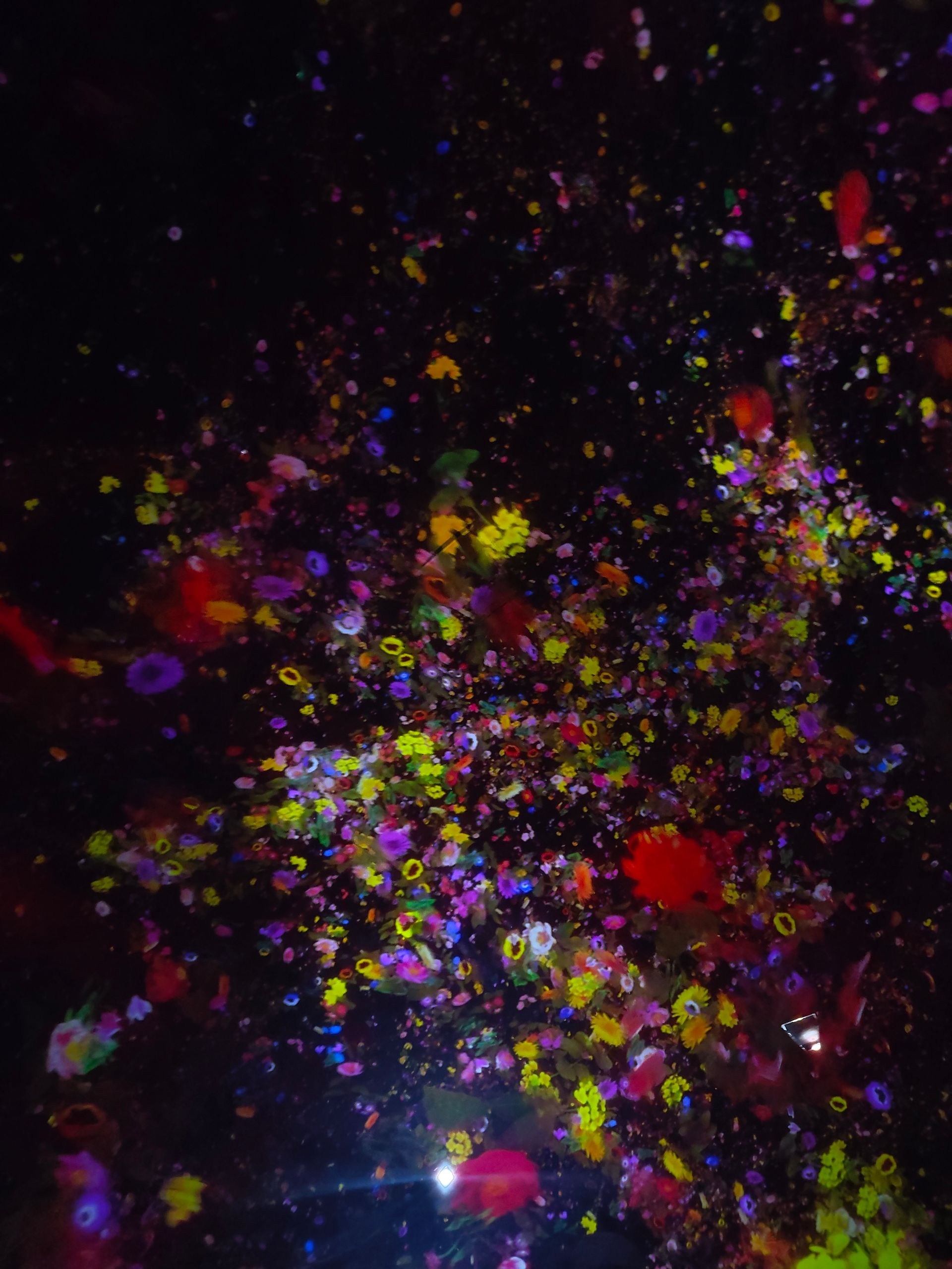 Kurz danach dann der Blumenraum: unzählige digitale Blüten, die sich ständig verändern, wachsen, verschwinden – wunderschön, aber auch ein kleines bisschen motion-sickness-verdächtig.