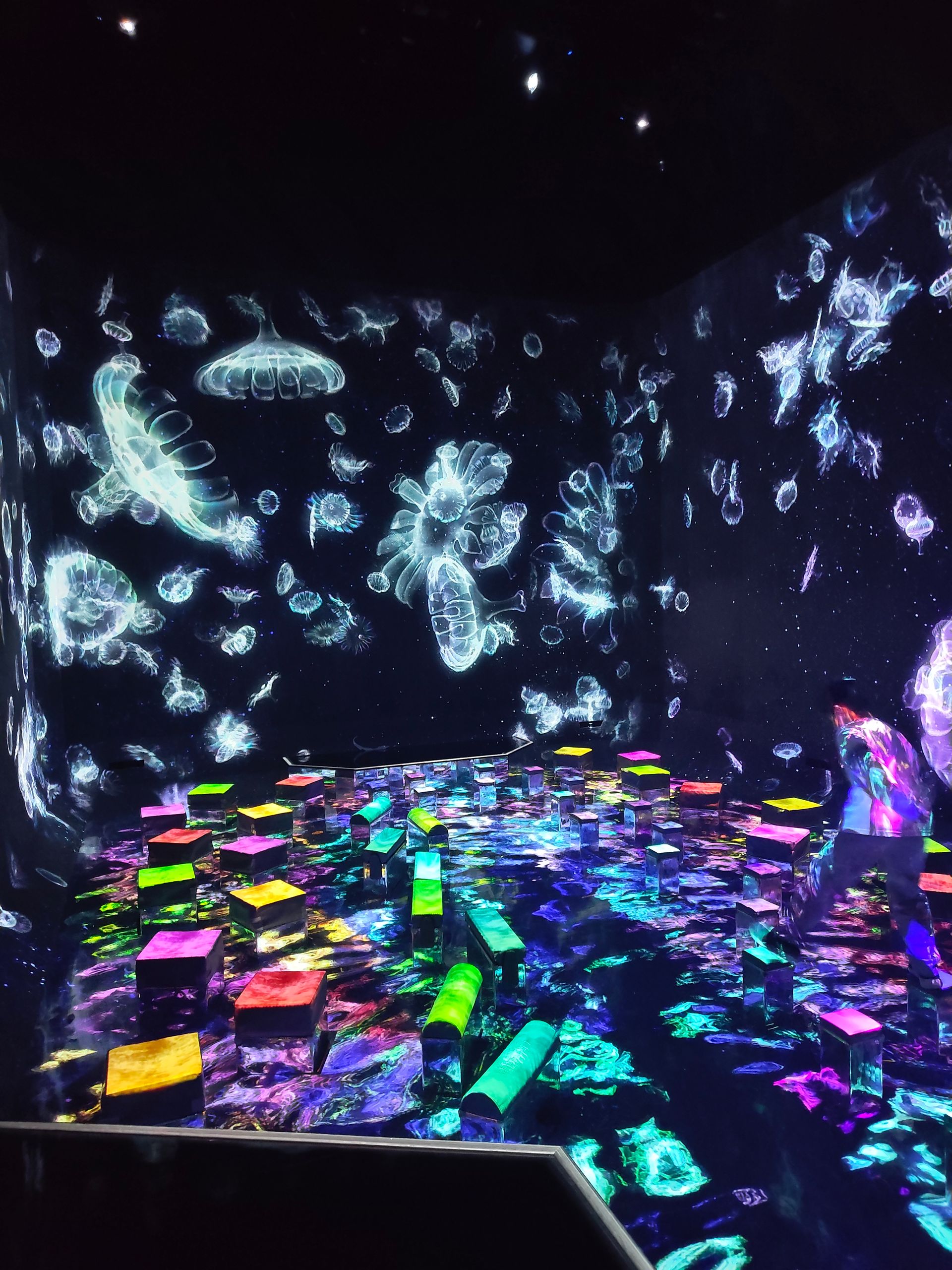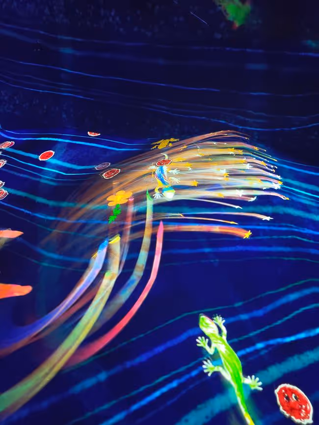 teamLab ist ein japanisches Künstlerkollektiv, das weltweit für seine digitalen, interaktiven Kunstinstallationen bekannt ist. Bei teamLab Planets taucht man buchstäblich in die Kunst ein: Licht, Projektionen, Spiegel, Wasser, Geräusche und Bewegung verschmelzen zu Räumen, die sich ständig verändern – und in denen man selbst Teil der Installation wird.