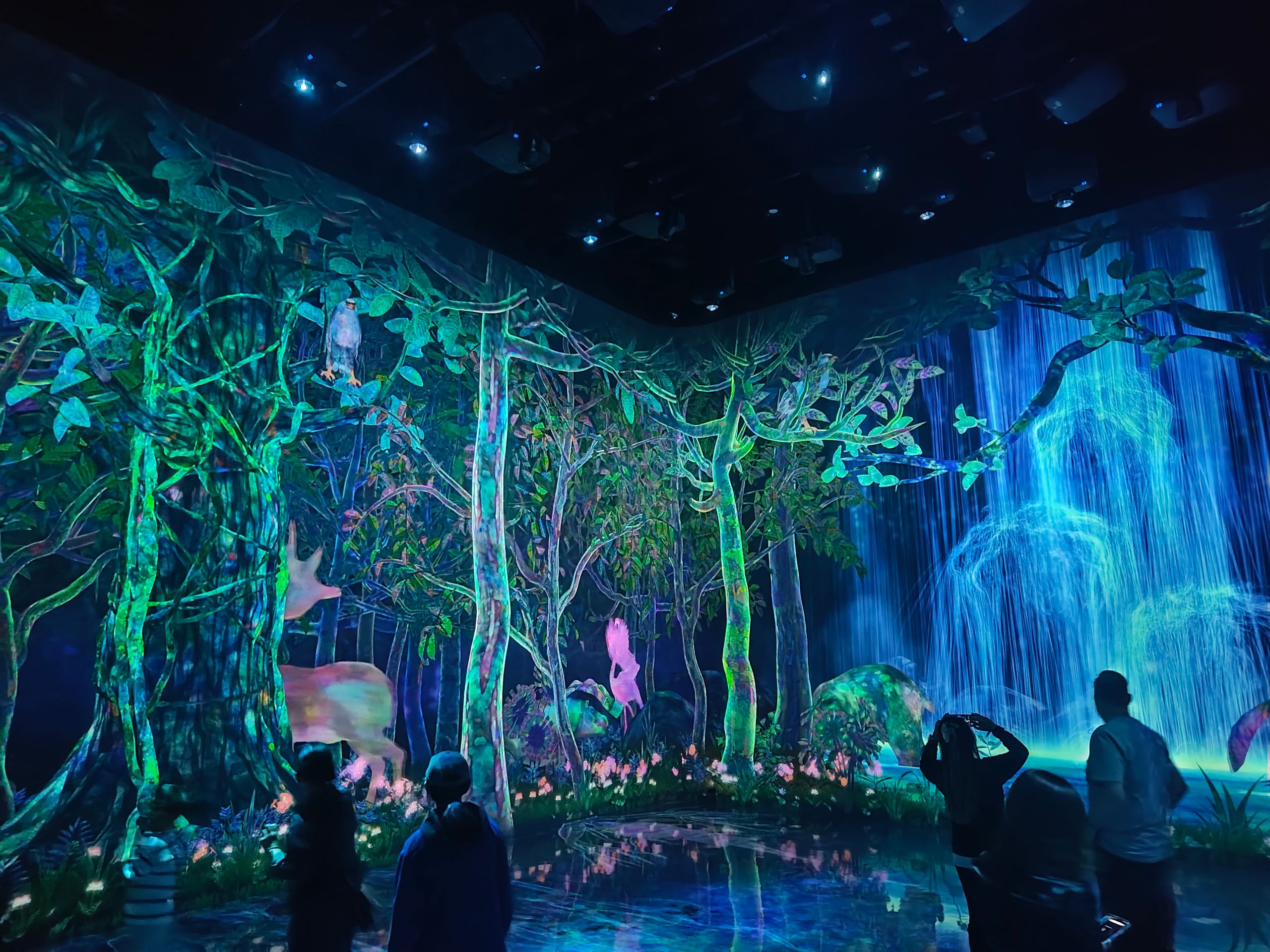 Ein weiteres Highlight war der Collecting Forest. Im Prinzip Pokémon in echt – nur mit ausgestorbenen Tieren. Mit dem Smartphone „fängt“ und registriert man digitale Tierwesen, die im Raum umherstreifen. Unser ehrgeiziges Ziel war natürlich, alle zu sammeln. Leider haben sowohl Motivation als auch Handyakkus irgendwann kapituliert, sodass wir am Ende „nur“ etwa zwei Drittel der Tiere registriert hatten.