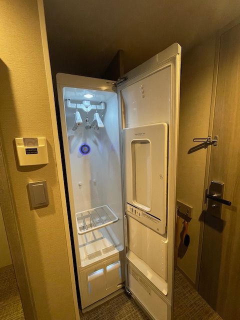 Aber wir haben eine neue Errungenschaft im Zimmer. Die Hightech Toiletten sind ja nichts besonderes mehr. Wir haben jetzt einen LG Styler.