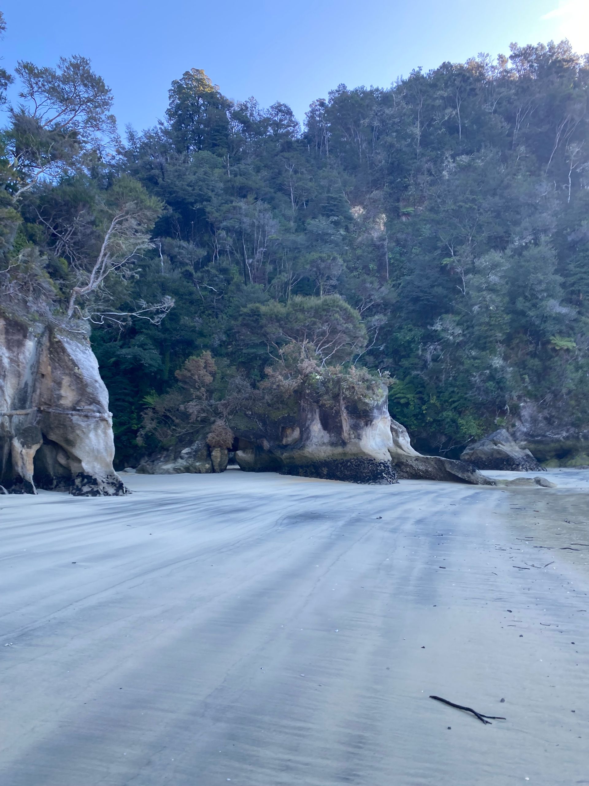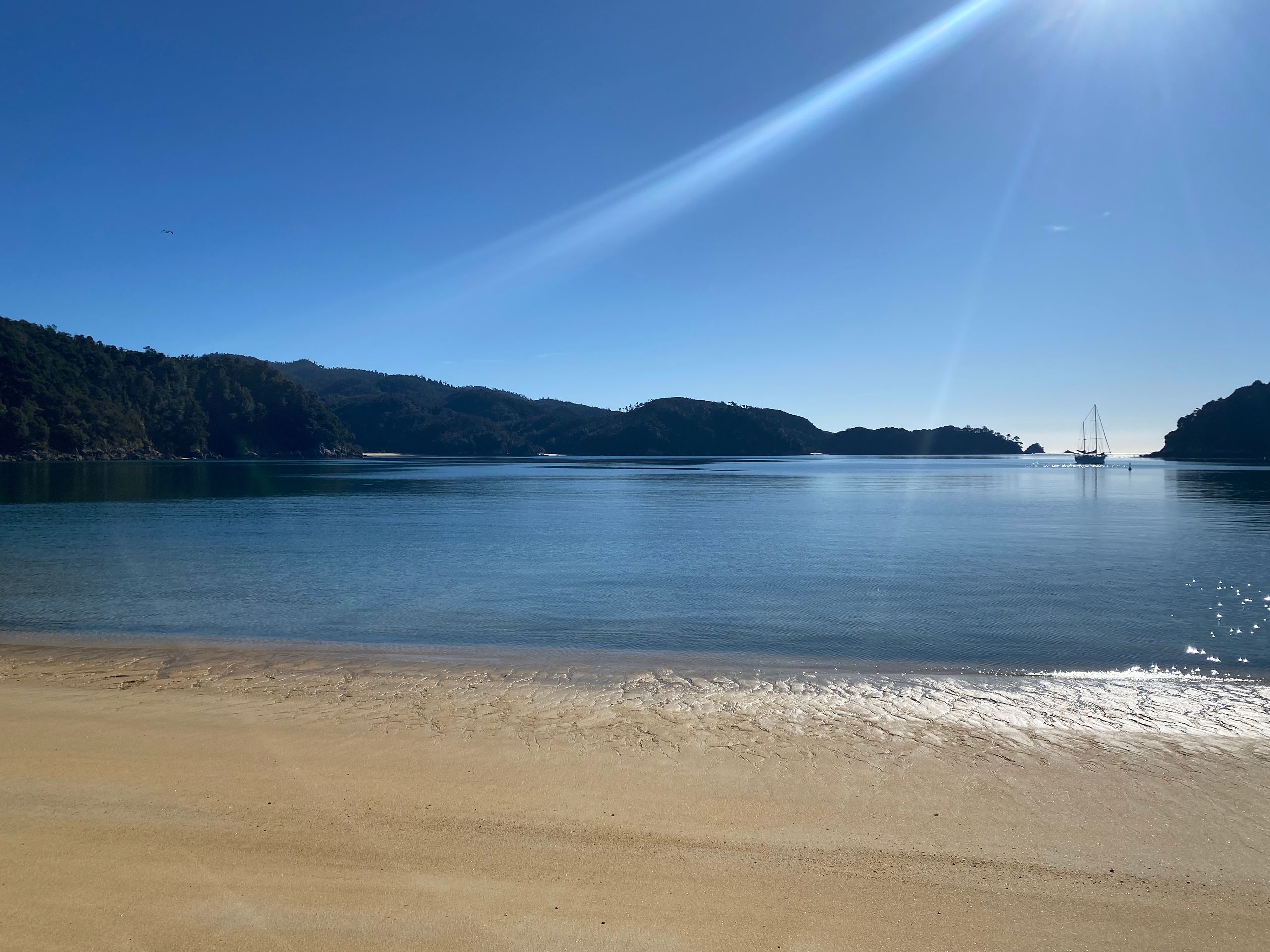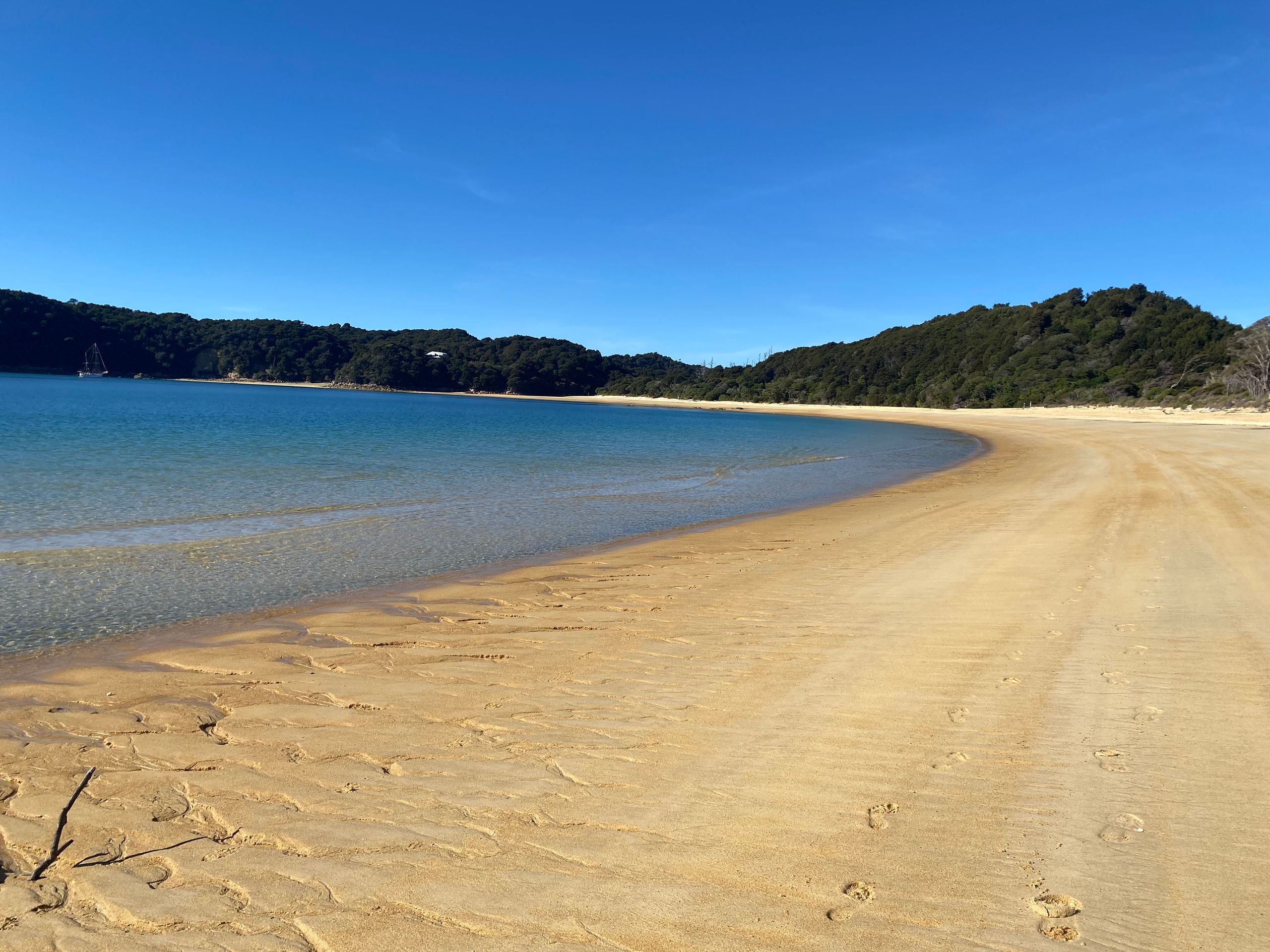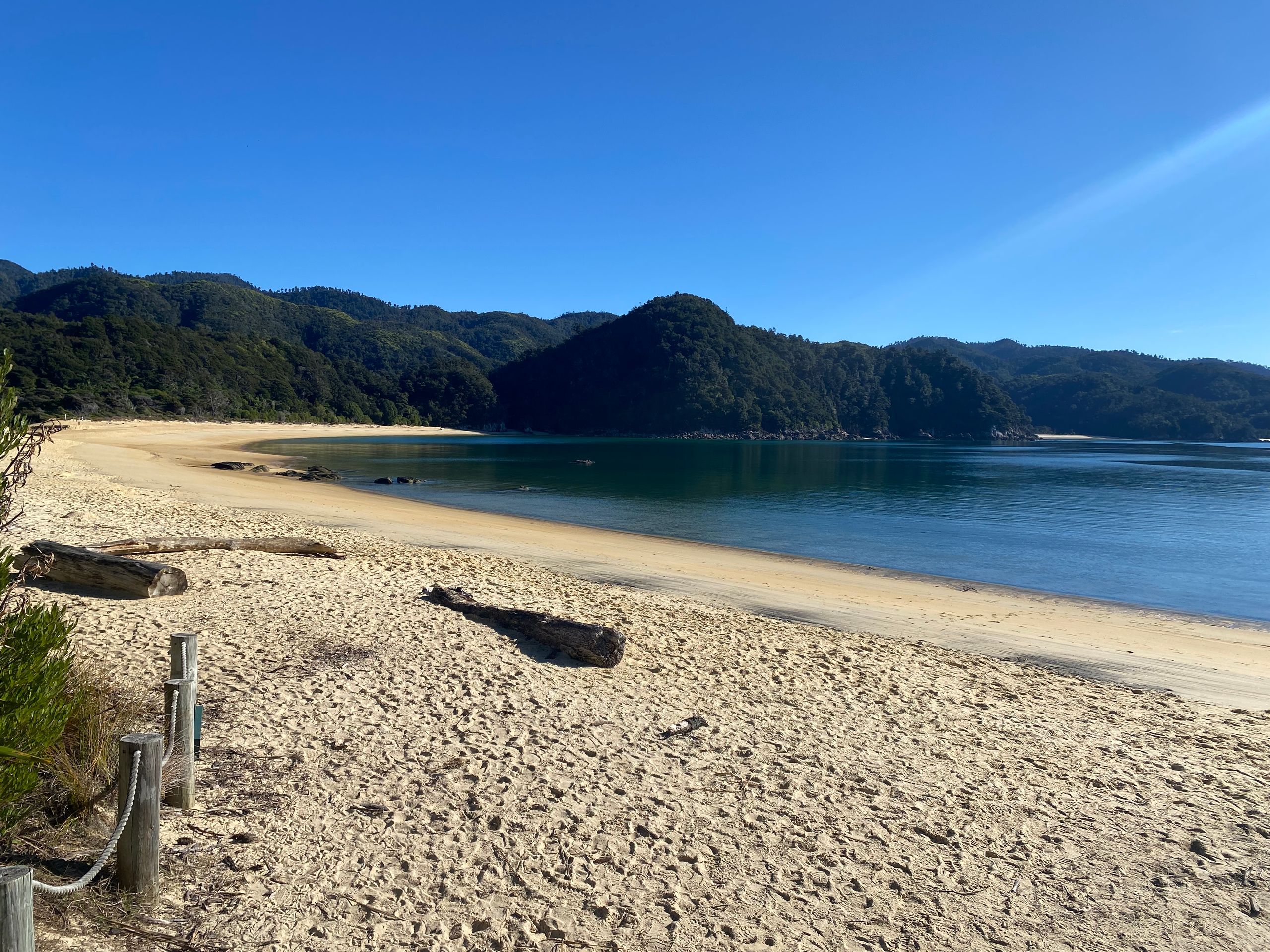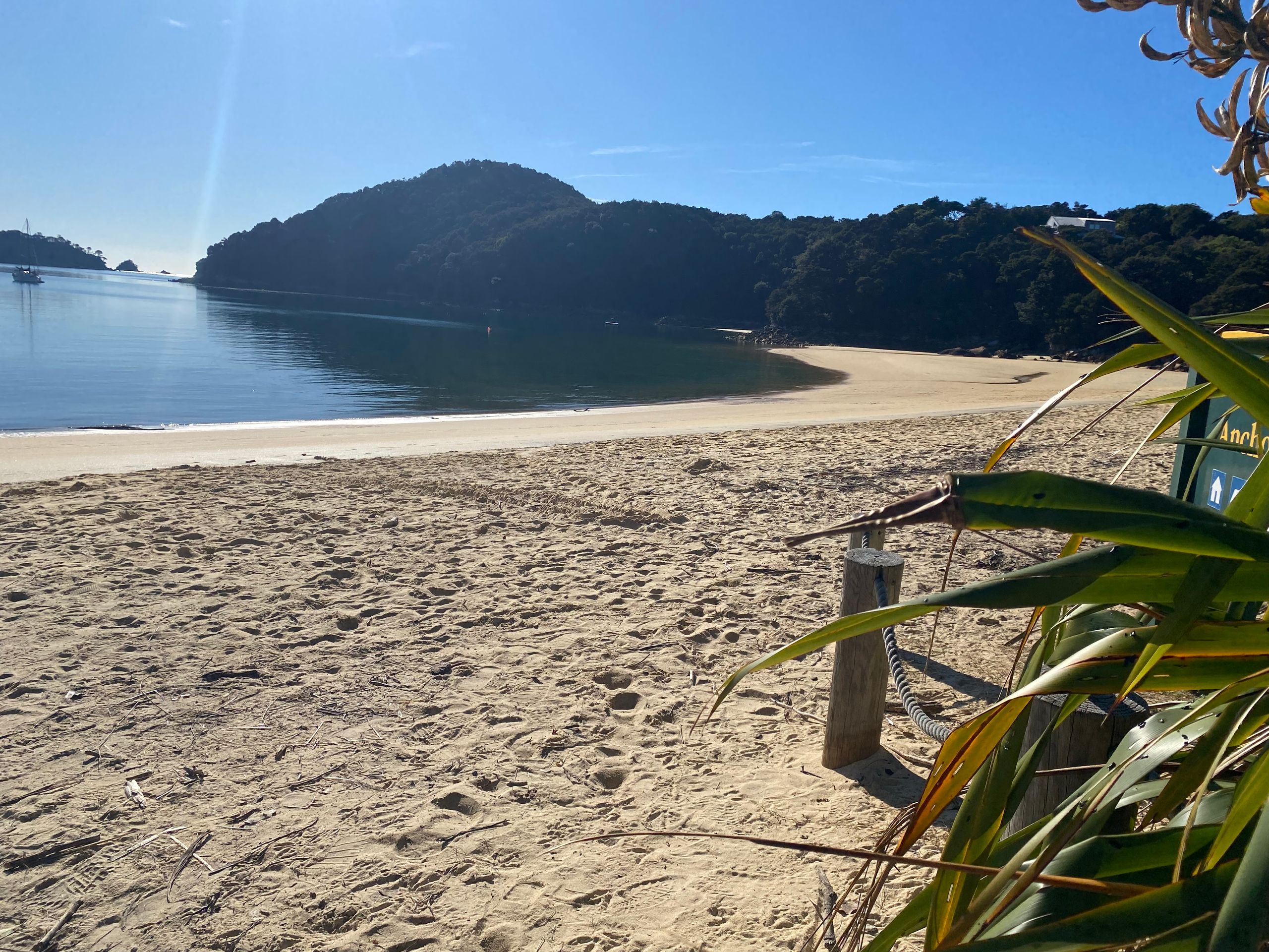 Also gestern hab ich Gott sei dank ja nen chiller tag eingelegt, morgens gabs erst mal porridge mit echter milch exzellent sag ich euch. Danach gings in die nächste stadt Motueka zum wäsche waschen. Der Aufenthalt dort war länger als gedacht, da ich die wäsche ausversehen 2 mal gewaschen hab, weil ich dachte es wäre der trockner. Aber naja wisst ihr wäsche is gewaschen riecht gut, ist sauber bis auf die unauswaschbaren Flecken also alles wunderbar. Bin dann einkaufen gewesen und zum übernachtungsspot. Dort wurd ich gleich begrüßt von dan und seinem hund, die dort auch gecampt haben. Hab da dann gechillt, gehäkelt und war am strand spazieren, perfekter tag. Am nächsten tag ging der wecker eigentlich so auf 6:30 aber war eher war und dacht mir naja auch egal. Konnte wieder luxuriös zähne putzen und gesicht waschen, weils hier waschbecken gibt. Und dann gings los zum startpunkt der wanderung im Abel Tasman National park: Marahau. Und wie sollte es anders sein, es war super kurvig dahin. Auto geparkt, rucksack gepackt, stullen geschmiert, wasserblasen nochmal doppelt verpflastert los gings. 11.8 km hin und 11.8 km zurück in 9 stunden mit 1 h pause vor ort. Und ich hab e geschafft, die letzten 2 km zurck waren hart not gonna lie. Meine füße haben gepocht, aber es war es wert. Der weg ging eig recht angenehm aber ab und an mal große an und abstiege durch den regenwald über brücken immer am bergrand entlang. Zwischendurch immer wieder blick zum meer. Und die strände wow, heller sandstrand und das wasser leute durchsichtig türkis grün, war leider kaum einzufangen mit der handykamera. Angekommen in Anchorage bay gabs erst mal snacks und wurde die ganze essenzeit von nem weka belagert haha die sind aber einfach süß. Der strand da einfach ein traum, im sommer ist es bestimmt toll, wenn man baden kann. Hatte also ca 1 h hier bevor ich zurück musste, weil ich auf keinen fall im dunklen im regenwald enden wollte. Aber alles geschafft, zurück am auto war ich heilfroh die schuhe auszuziehen, füße waschen,füse verpflastern, füße eincremen. Es ging nochmal zum campspot von gestern, bevor es morgen dann nach nelson geht. Also ein unglaublich schöner tag, aber auch wenn es nicht so viele hm waren dennoch anstrengend für mich, war die längste Wanderung die ich jemals gemacht habe glaub ich, 23,6 km