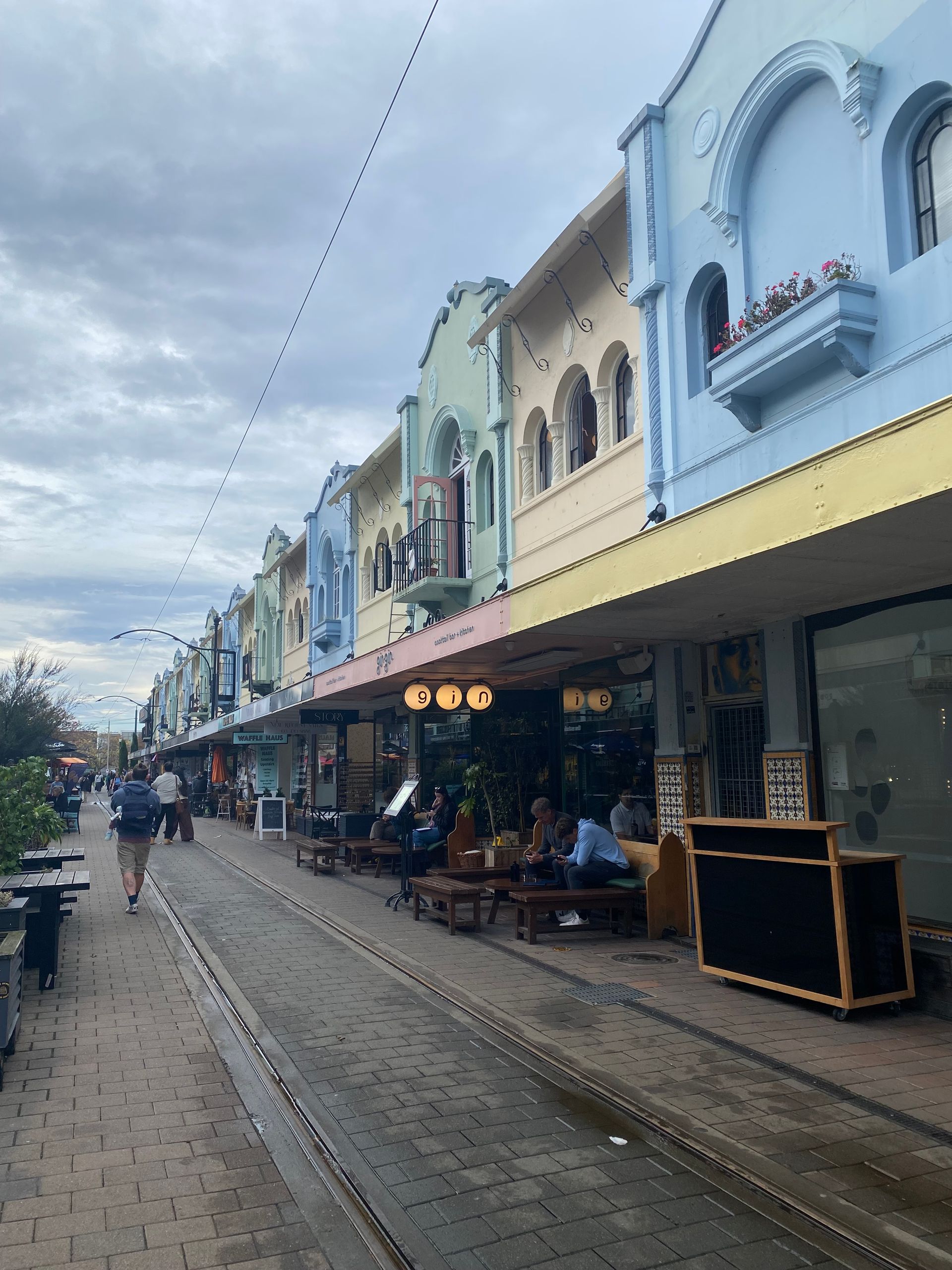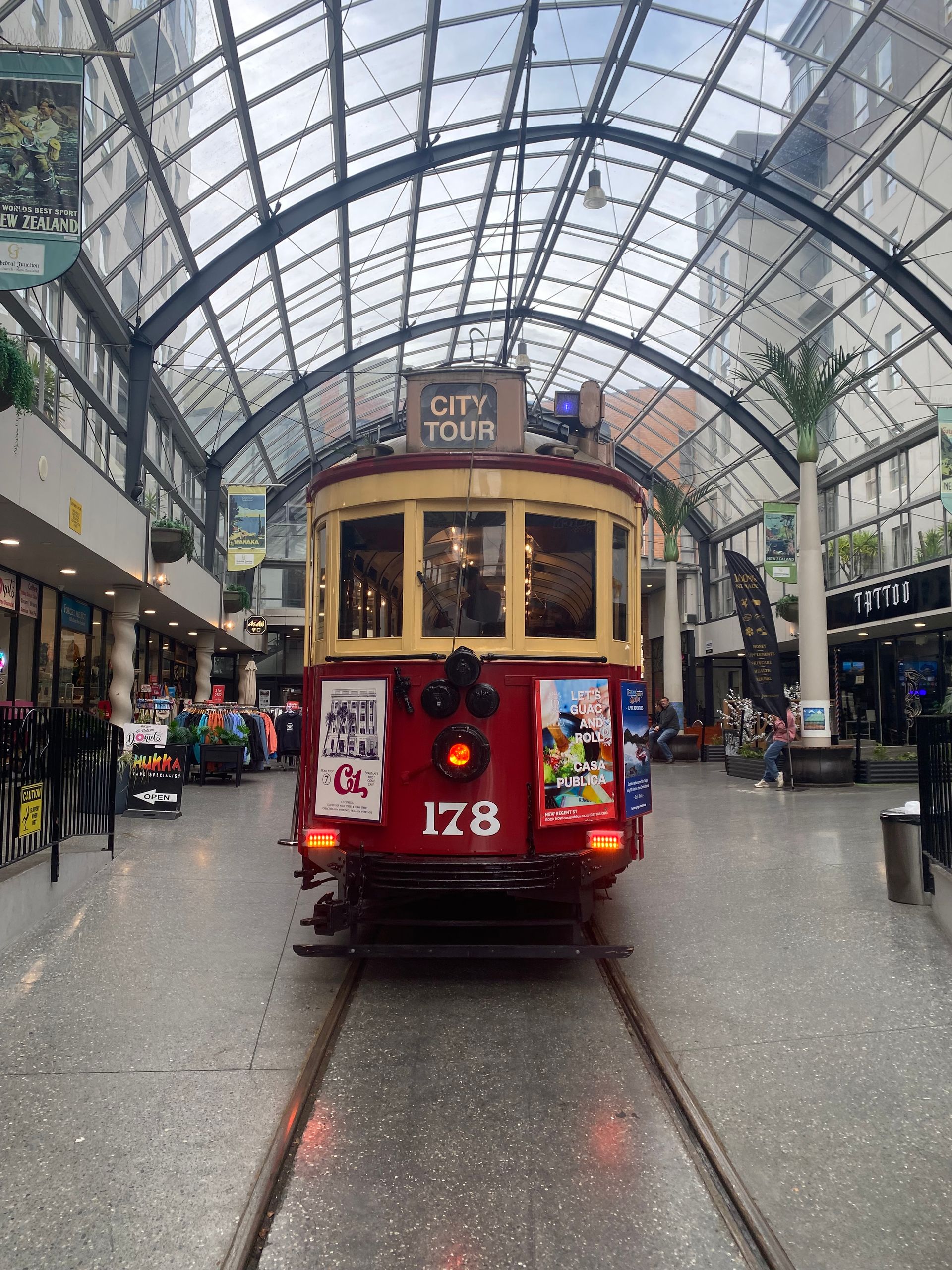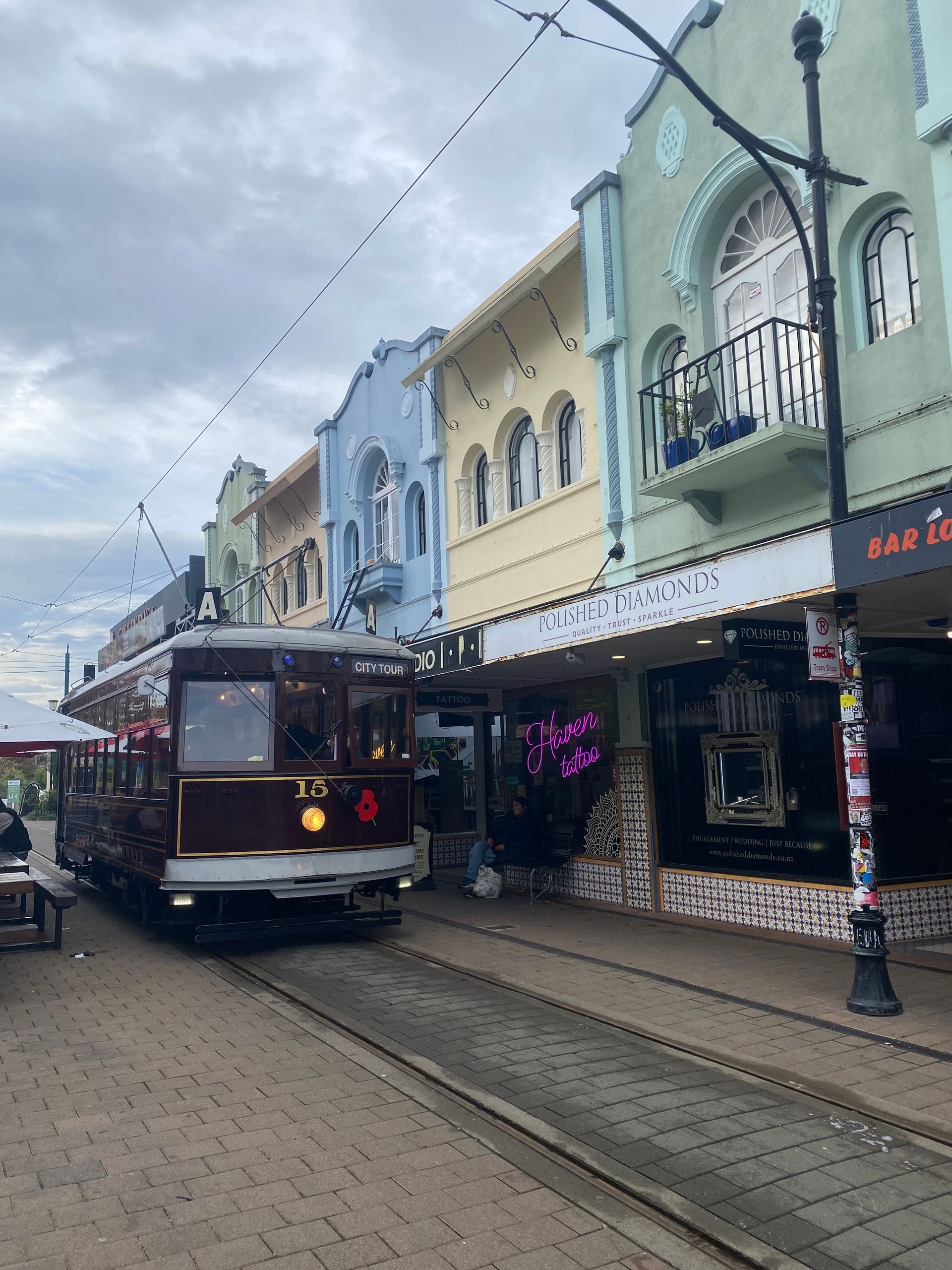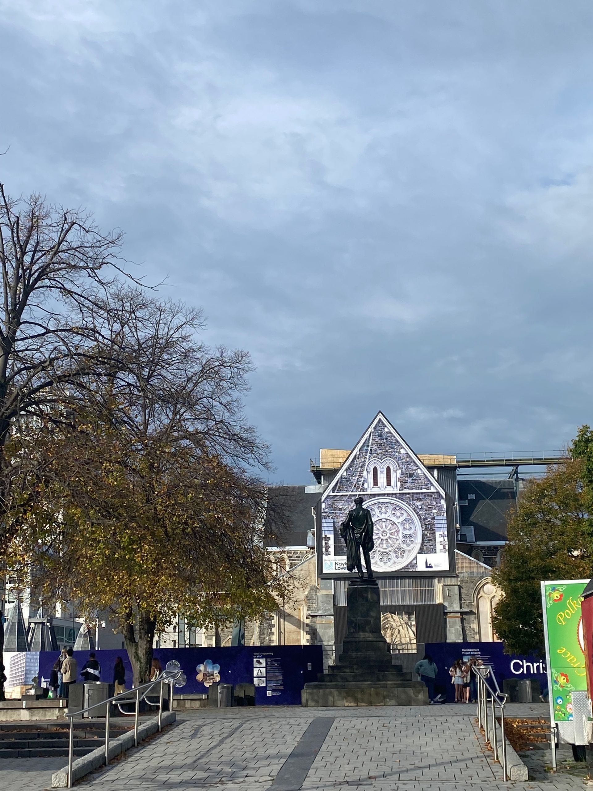 Da mir jetzt langsam die Decke auf dem Kopf fällt hab ich dem Wetter getrotzt und mich super warm eingepackt. Los gings zu Fuß, spoiler: nach stundenlangen Sightseeing bin ich jetzt so k.o. Bin dann erst mal in den Hagley Park gegangen, es war so schön, alles grün aber auch schon herbstlich. Sah richtig schön aus, bin dann richtung botanic gardens (war aber nicht drin) und dann gabs da noch den Rose Garden und war da bisschen Spazieren. Dann gings in die Stadt, in das Art Centre, ganz hat sich mir das nicht erschlossen, weil es kamen immer mehr gebäude, auch schon etwas entfernt und alle hießen so, aber alles super schön. Die Gebäude sehen schon richtig toll aus und innen gibt es dann kunstausstellungen und das beste: ich hab keinen cent eintritt zahlen müssen. Nachdem ich da mehrere gebäude abgegangen bin war ich noch am Cathedral Square, na klar ein Muss. Dort sieht man (mehr oder weniger) die Cathedrale die beim Erdbeben 2011 zerstört wurde. Da hab ich dann gemerkt, ich brauch dringend was zum trinken und war kurz im supermarkt und hab noch snacks geholt. Last stop war dann die new regent street. Auch ein Muss da eine Tram durchfahren zu sehen. Ist sehr süß da, man kann sich auch in die Cafes reinsetzten und die tram fährt direkt vorbei, bisschen Train street vibes von Hanoi, nur nicht ganz so chaotisch und gefährlich. Dann gings vorbei an der ganzen Streetart zurück ins Hostel und erstmal ne Stärkung, den letzten Wrap. So ihr wisst, jetzt ist erstmal chillen angesagt, sightseeing ist anstrengend.