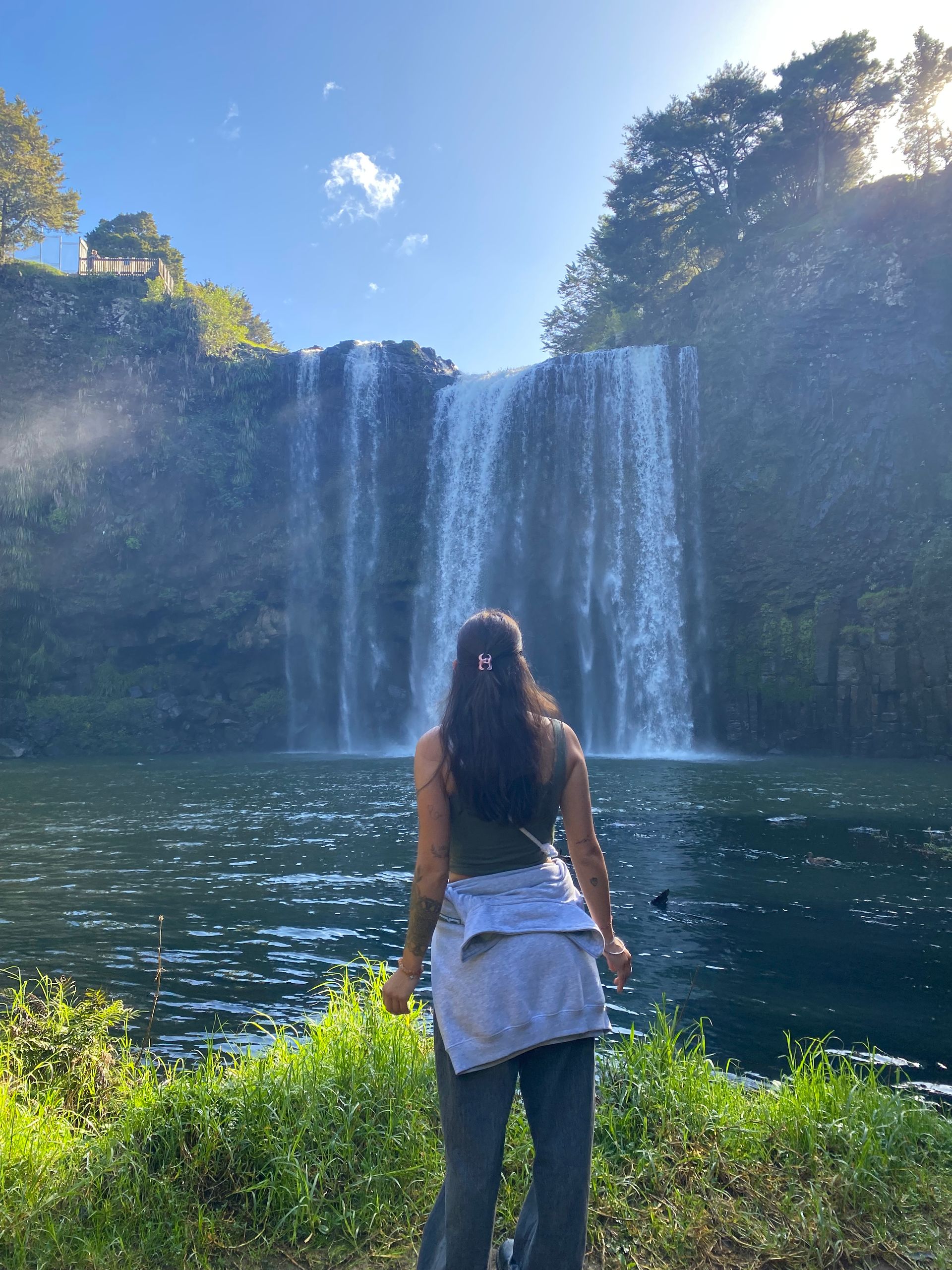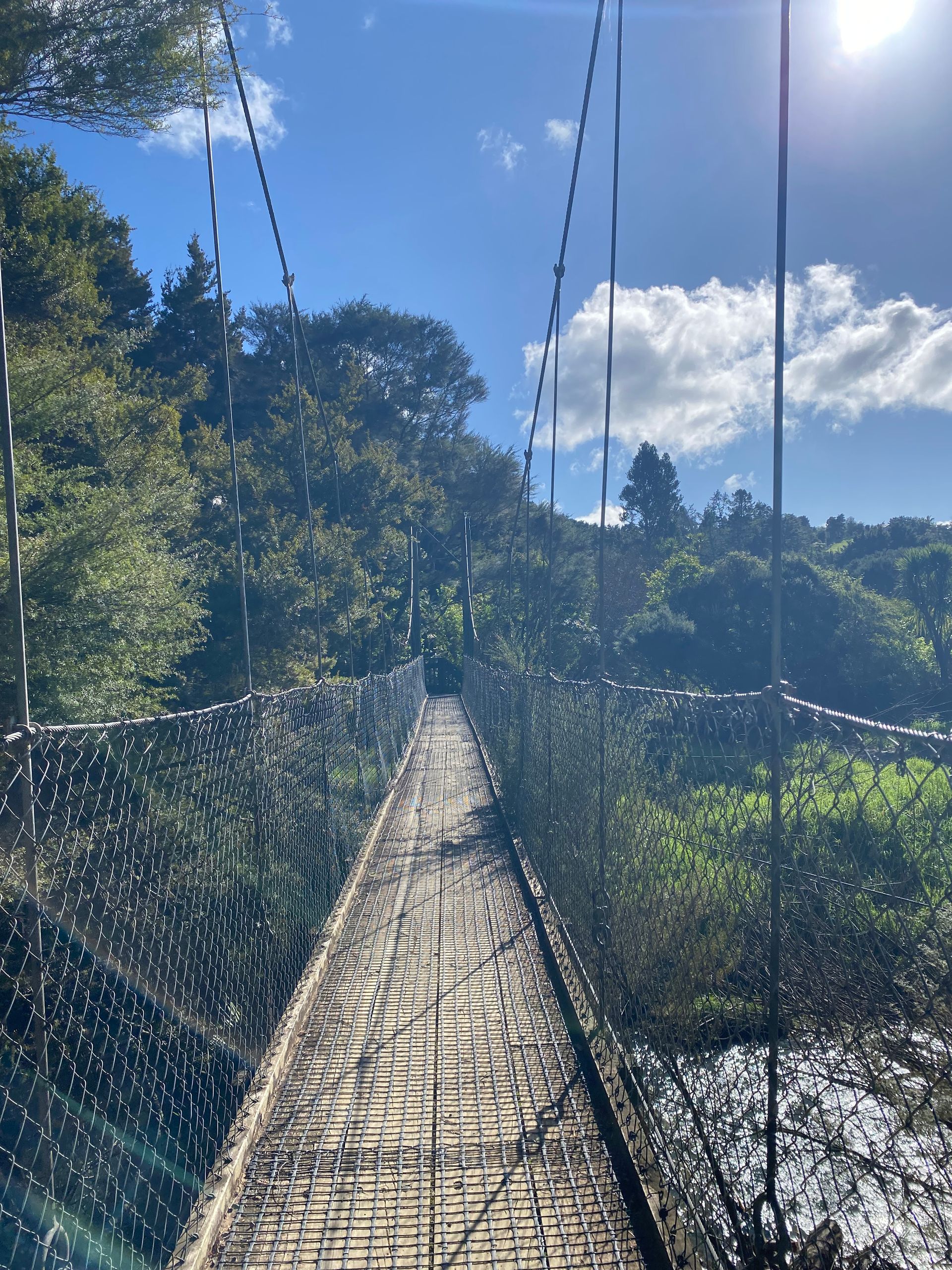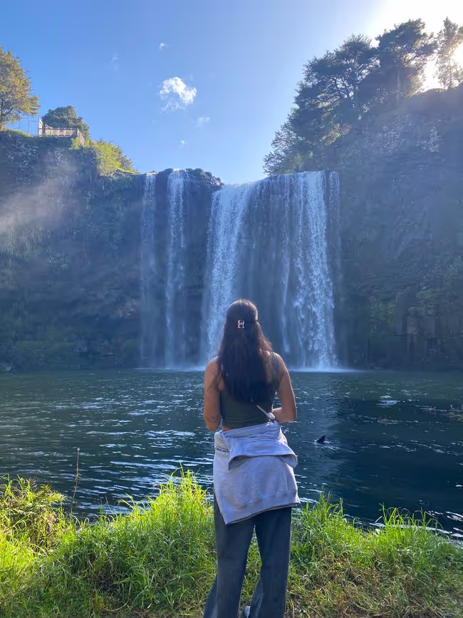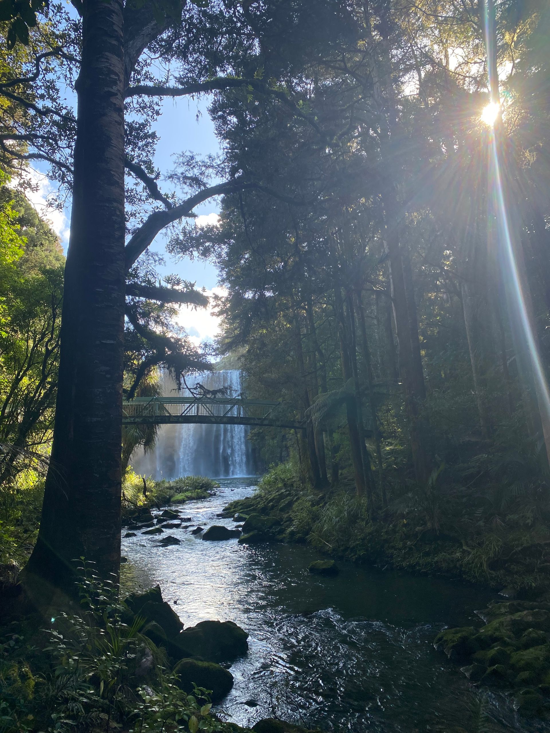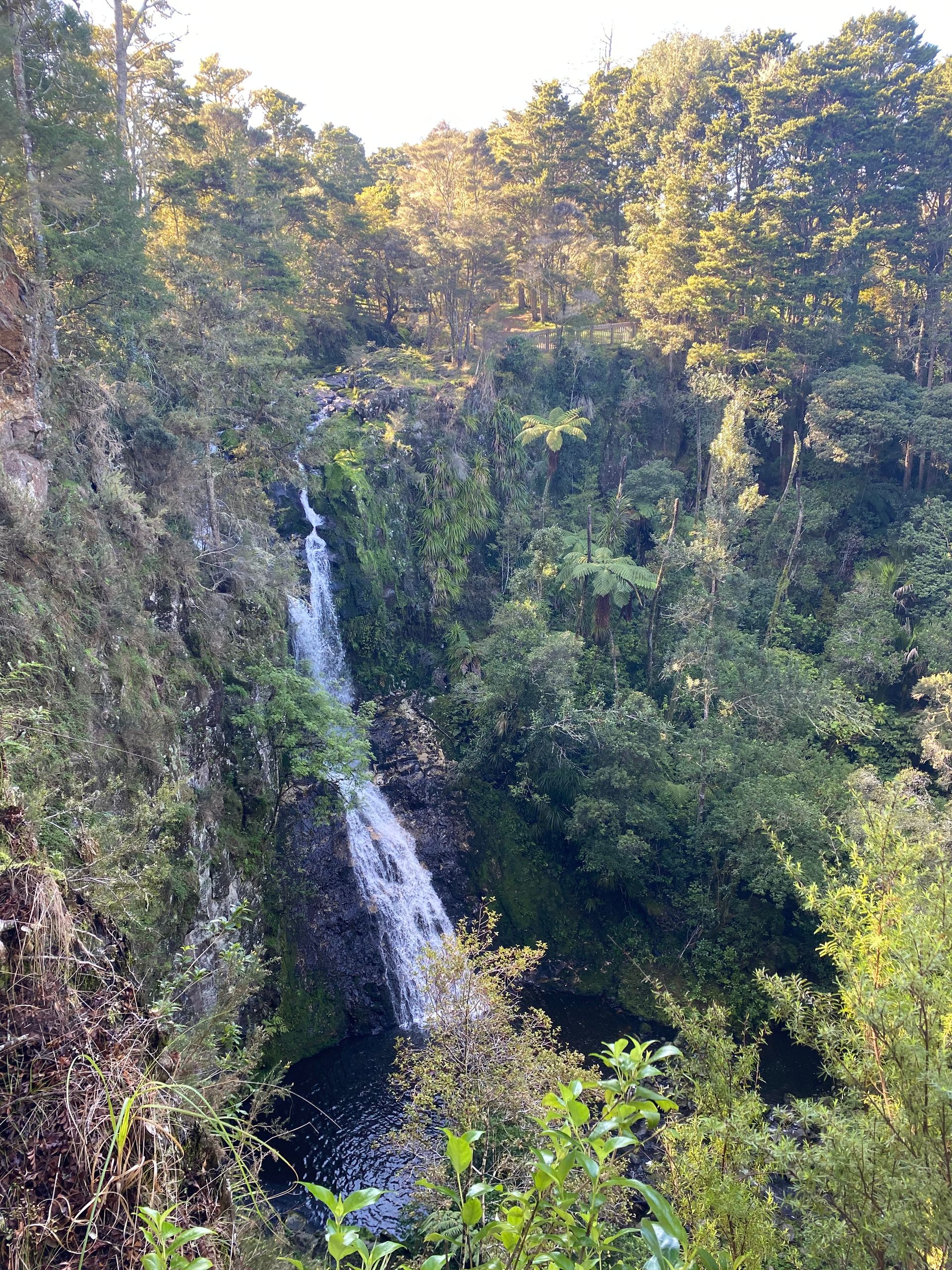 Ok leute aufgewacht also am mega campspot in whangarei. Als ich also aufgewacht bin gegen 7 mich fertig gemacht hab im bad usw haben sich immermehr leute versammelt zum joggen, des waren so viele und alle haben ihre aufwärmübungen gemacht, also no judgement respekt ja aber es sag trotzdem irgendwie lustig aus. So für mich ging es jetzt aber rein in die stadt und zwar am fluss entlang über paar brücken ein wunderschöner weg. Alle leute irgendwie superfreundlich, alle grüßen einen und lachen, ganz viele hunde rennen rum, hab mir zuerst (ja ich weiß ich hab mir gestern erst was gegönnt) nen brownie und n kaffe geholt. Leute der brownie ich sags euch saftig mit nüssen drin ein gaumenschmaus ehrlich. Mit som kaffe in der hand fühlt man sich dann irgendwie gleich als würde man gier ganz casual laufen, ganz normal ( oder geht das nur mir so ? ) als würd ich hier leben. Ich hab mich allgemein extrem wohl gefühlt dort, kennt ihr das einfach so bestimmte ortw wo man sich einfach warum auch immer super wohl und zugehörig fühlt. Ja so war es hier, liebs. Wollte also eigentlich nur einmal kurz durchschlendern, war dann fast 4 stunden dort. Hab mich auf ne bank gesetzt, bin rumspaziert, bisschen wlan geschnorrt und dann doch noch mit meiner schwester telefoniert . Uh und wichtige business zahlungen musste ich machen, ich bin nämlich gestern 2 toll pflichtige straßen gefahren, aber hier zahlt man das online, man muss das also innerhalb von 5 tagen bezahlen sonst flattert ne Mahnung rein. Aber eigentlich cooles system, gibst dann auf der seite nur dein kennzeichen ein, der zeigt dir dann an durch die kennzeichenerfassung welche straßen du gefahren bist und dann nur zahlen. Und für die 2 straßen hab ich 5 dollar gezahlt, also knappe 2-3 euro und das war auch das erste und einzige mal dass ich das bezahlen muss. So zurück zum thema, irgenwann ging es dann dochmal zurück zum parkplatz und jetzt stand was an worauf ich gar keine lust hatte. Auto grob saugen. Da ich ein nicht megr tragbares schmutzlevel erreicht habe musste das mal sein und yk ich hab vor ziemlich viel angst zuhause wär ich niemals zu sowas gefahren sondern hätte das zuhause gemacht. Ja das zuhause ist hier das auto also los gehts carina. Und ja es war überhaupt nicht schlimm, auto ist gesaugt, der gröbste dreck ist weg. So zurück zum spaßigen part. Es ging zum A. H. Reed Memorial Kauri Park. Dort bin ich also losspaziert und es ging dann über super hohe holzstege/ brücken zu echt riesen kauri bäumen also vermutlich sehr sehr alten kauri bäumen. Ich hab mir gerade einen baum angesehen, da kam ein älterer herr und hat mich angesprochen. Er meinte sorry aber er muss das machen das sein morgenritual. Ich dachte was kommt den jetzt, dabei hat er den baum umarmt und noch bisschen mit mir gequatscht, symphatischer typ haha. Dort ging dann ein weg zu einem kleinen wasserfall den ich mir angesehen habe: Paranui Falls, der war schon richtig schön. Wollte eigentlich zu den whangarei falls dann fahren, aber es gab einen wanderweg hier der dorthin geführt hat, also bin ich den natürlich gegangen. Immer am fluss lang durch den Regenwald über sehr sehr wacklige hängebrücken ( ich hab hier übrigens die brückenangst wohl sehr erfolgreich mit konfrontationstherapie bekämpft). Der weg war schon traumhaft schön und dann leute hab ich den riesen wasserfall schon durch die palmen und co gesehen. Wow! Der ist vielleicht mein lieblingswasserfall. Man steht unten direkt davor, das wasser weht einem so entgegen, perfekte abkühlung nach dem hike dahin. Außerdem kam man nach oben auch und den überqueren also man sieht ihn von allen seiten. Wieder unten angekommen gabs dann erst mal nen trubel. Sehr idyllisch schwamm da ne entenfamilie. Und daneben ein hund. Ja dem hat das ganze auch sehr gefallen nur das er auf die jagd nach babyenten gegangen ist. Alle anwesenden personen standen am ufer komplett am ende mit den nerven, ob wir jetzt gleich sehen wie ne babyente gefressen wird. Die besitzer am rand schreien nach dem hund versuchen alles den zu ihnen zu rufen, naja der hund hat gar nichts gehört natürlich der fokus komplett auf den enten. Gott im hinmel sei dank sind die immer rechtzeitig abgetaucht und keine babyente wurde verletzt, naja hundetrauma haben sie jetzt auf jeden fall. Nach diesem happy end bin ich dann zurück zum parkplatz durch die wunderschöne natur.