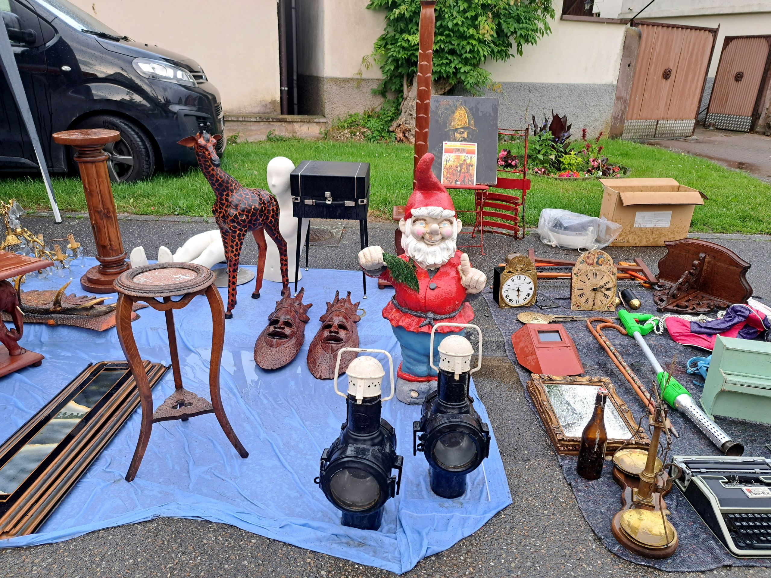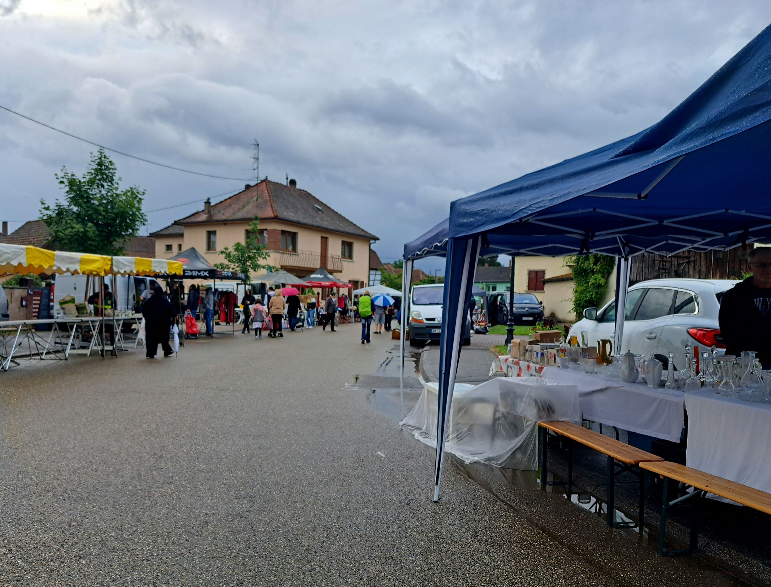 Die Straßen des Städtchens sind für den jährlichen Flohmarkt gesperrt und da lässt sich kein Elsässer von ein paar läppischen Tröpfchen abhalten. Schon zur frühesten Morgenstunde sind Heerscharen unterwegs, in der Hoffnung auf das große Schnäppchen oder das kleine Glück.