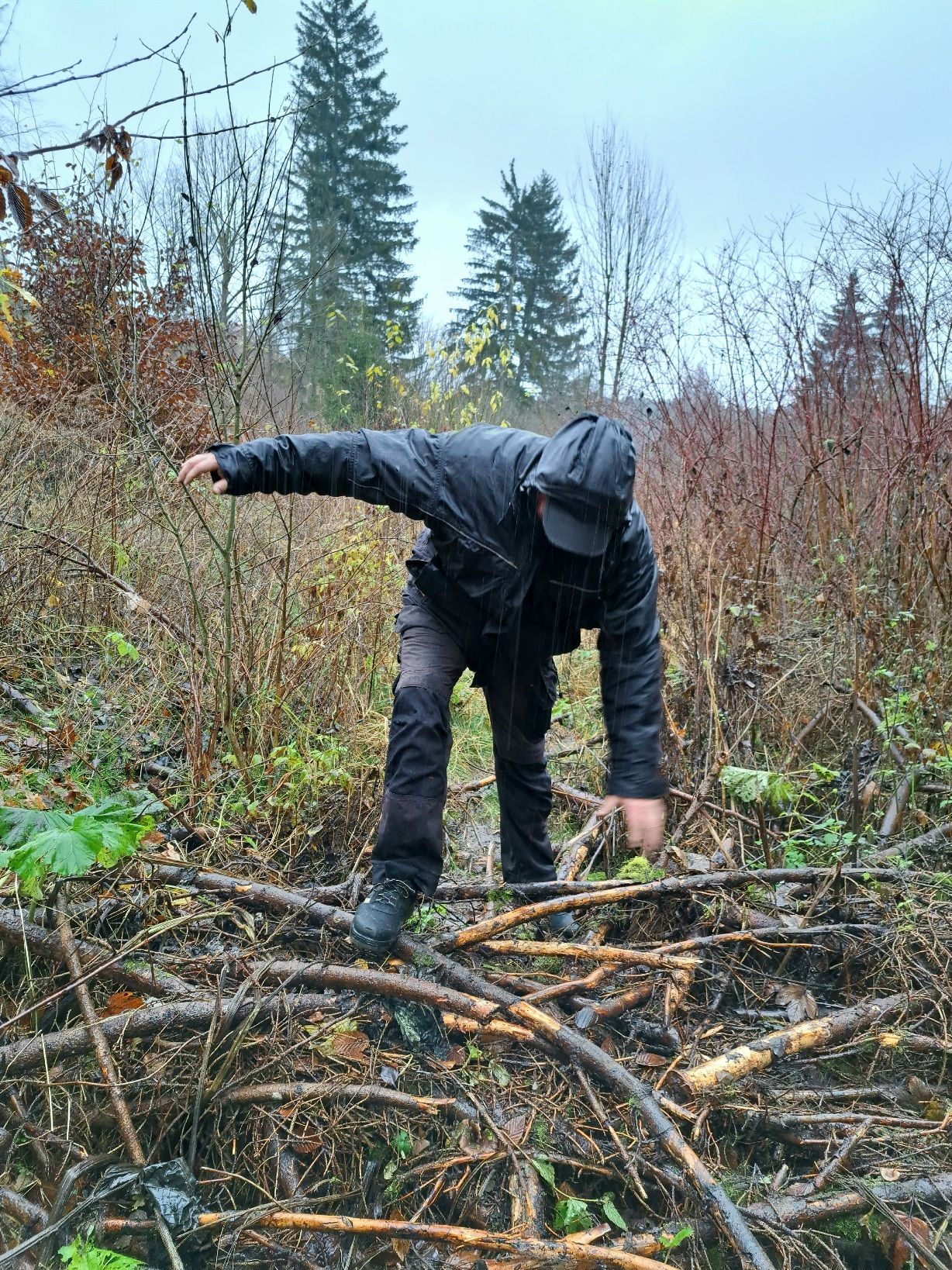Gut gegen die Nieselschauer eingepackt, machen wir uns in Silberhütte auf den Weg.