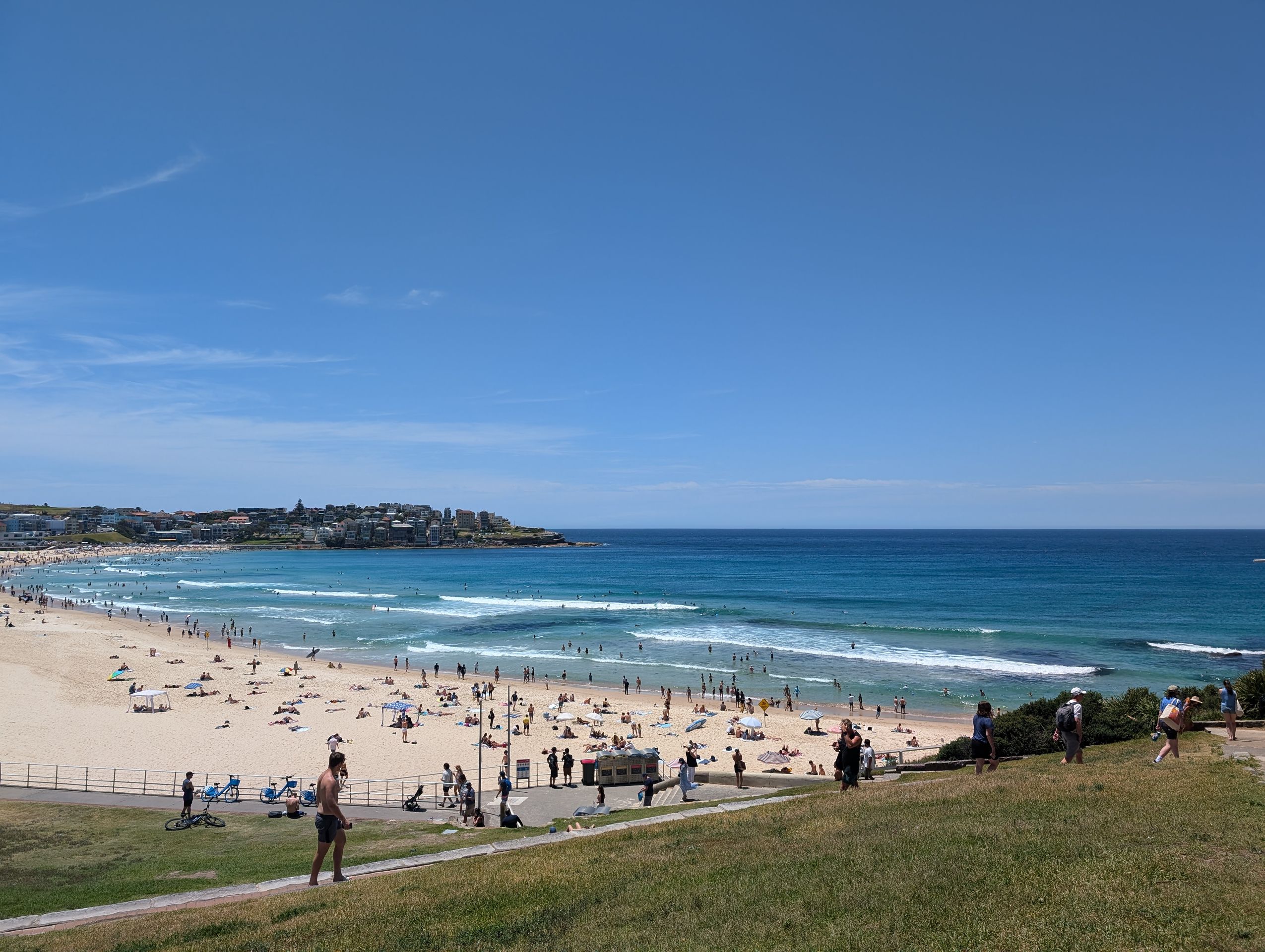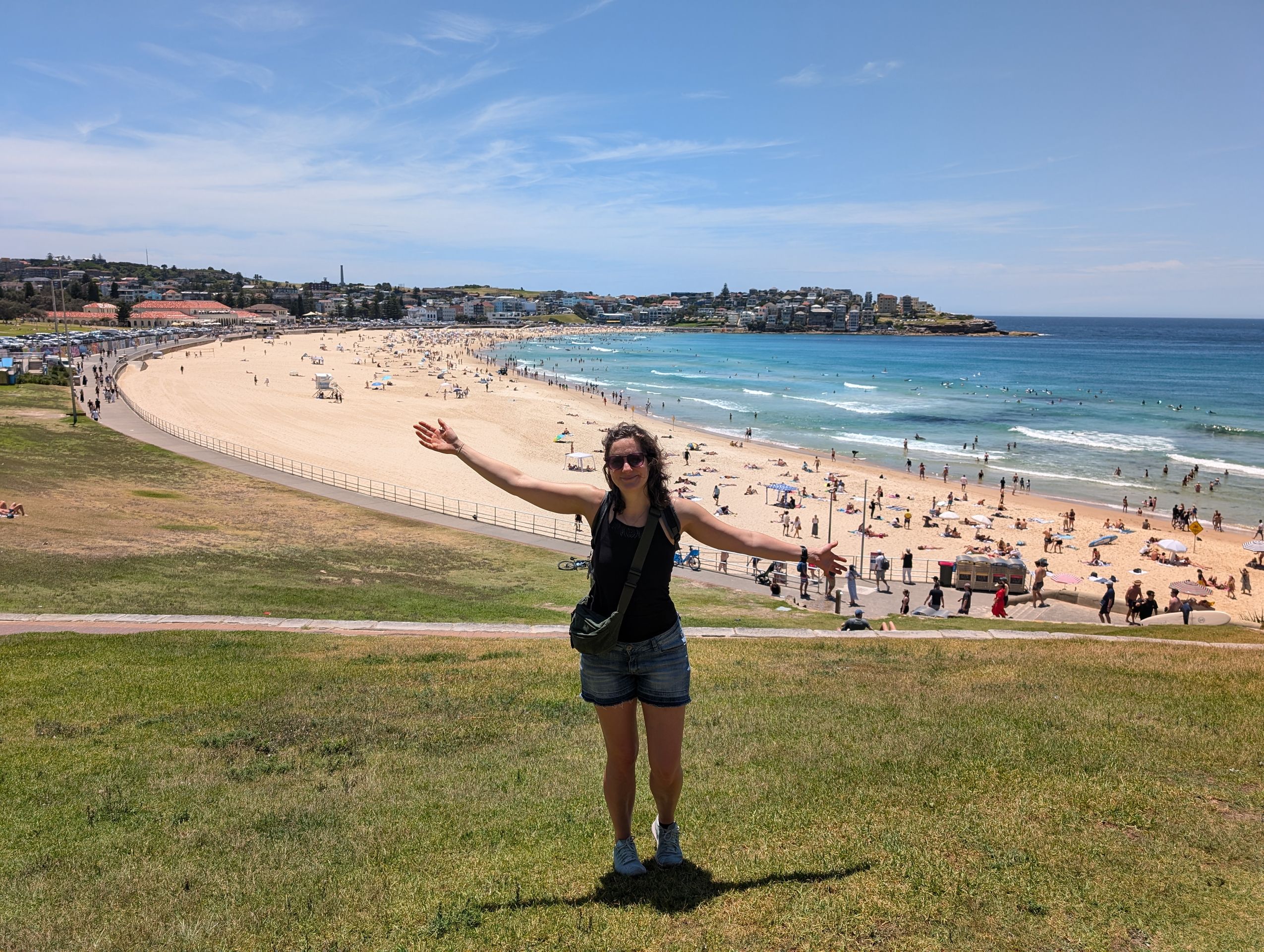 Am nächsten Tag warte ich den Morgenschauer ab und treffe dann den ersten Mitreisenden der nächsten Wochen - Göki. Wir fahren an den Bondi Beach und laufen dort den Küstenweg zum Coogee Beach. Das Wasser ist türkispetrolblau und ohne die regelmäßigen Trinkwasserbrunnen und 7,3 Schichten Sonnencreme würde man die Sonne heute kaum aushalten. Ein bisschen verrückt ist es, dass ich es eigentlich ziemlich normal finde, dass ich mich am 27. Dezember erleichtert in die Wellen des Meeres werfe, weil es so heiß ist. Und das um eigentlich 2 Uhr nachts (also - zu Hause). Nach einem kurzen Hostel-Zwischenstop suchen wir in der längsten Straße, die ich je gesehen habe (George Street) nach Abendessen und finden einen sehr leckeren Nepalesen. Mit einem Blick auf die Lichter am Darling Habour (was ein schöner Name!) beenden wir den Tag.