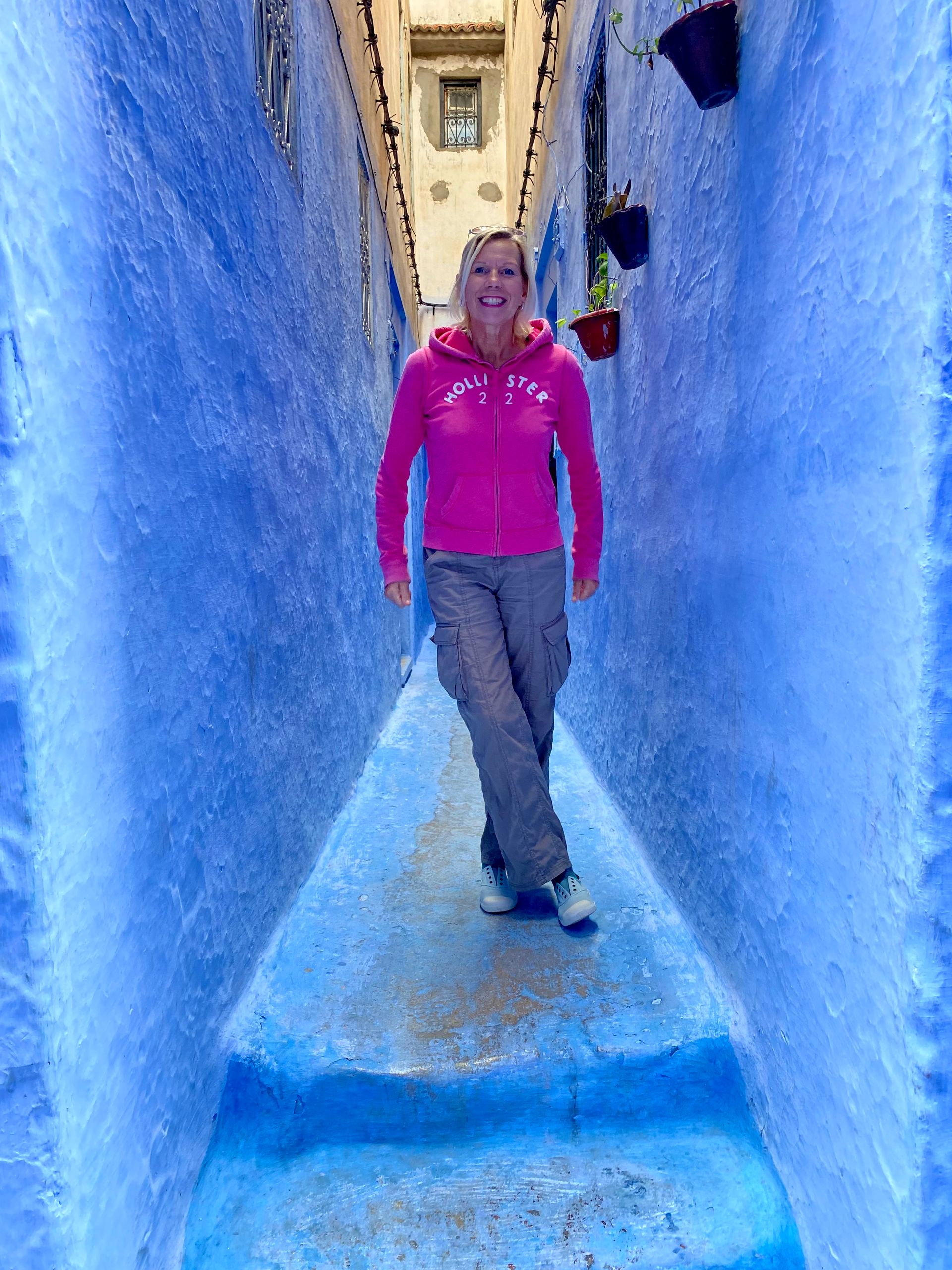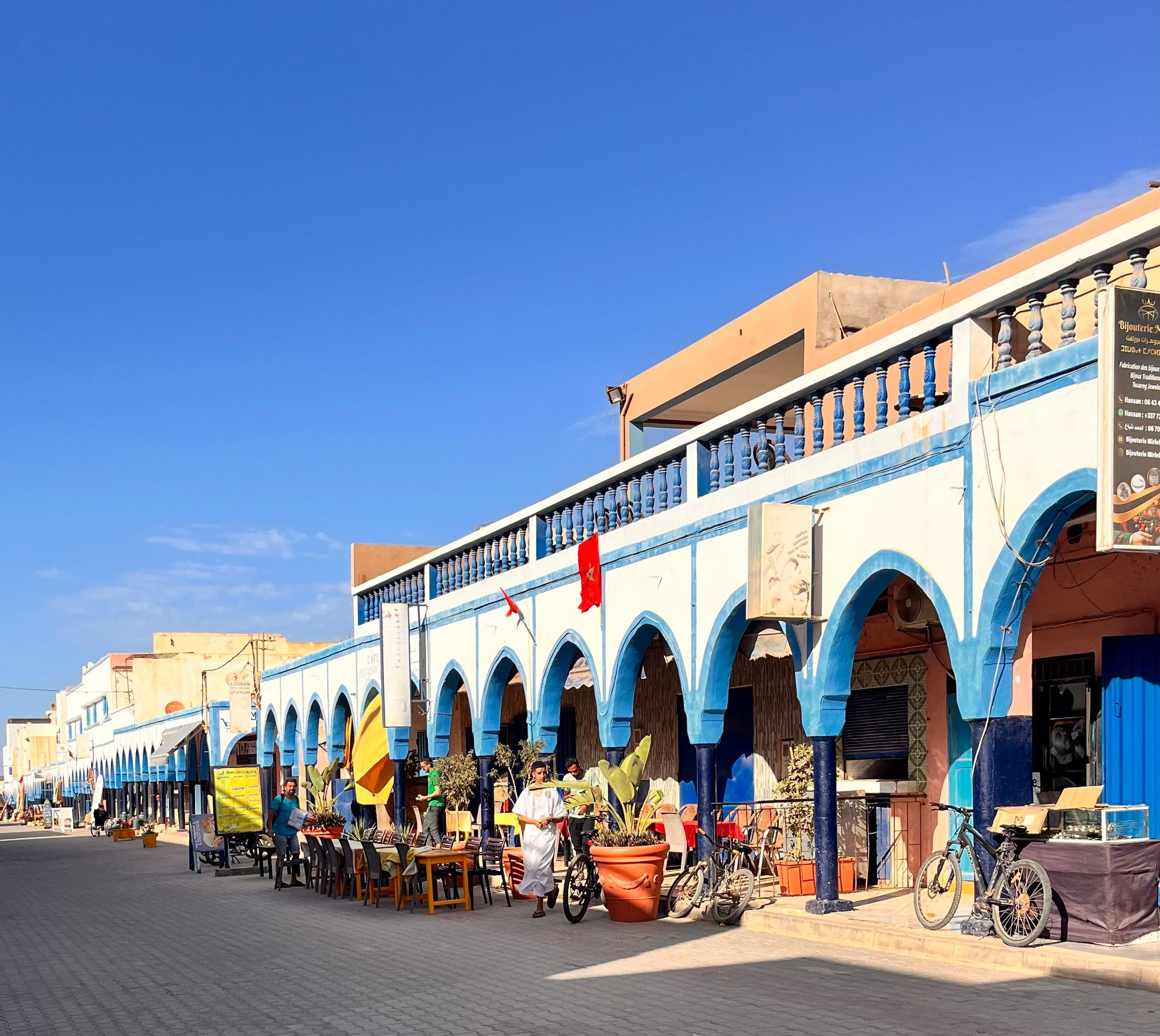 Am nächsten Morgen machen wir noch einen Stadtrundgang in Tafraoute, kaufen ein wenig