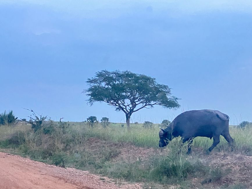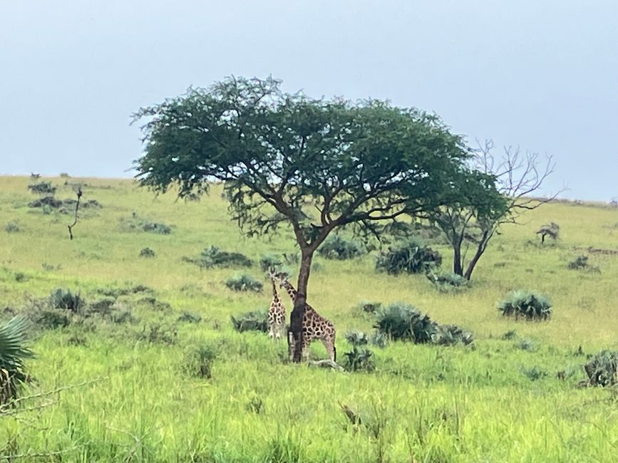 Am nächsten Morgen starten wir schon früh mit Lunch-Paketen: Wir wollen einen morgendlichen Gamedrive unternehmen! Nach dem nächtlichen Gewitter ist der Boden allerdings stark aufgeweicht und der Weg in den Park ist wirklich abenteuerlich. Nach kurzer Rutschpartie an einer Anhöhe fahren wir uns beinahe fest. Der Wagen hängt schon am Wegesrand kurz neben dem Graben. Mit Hilfe von mehreren Leuten können wir den Wagen zum Glück wieder in Position bringen.