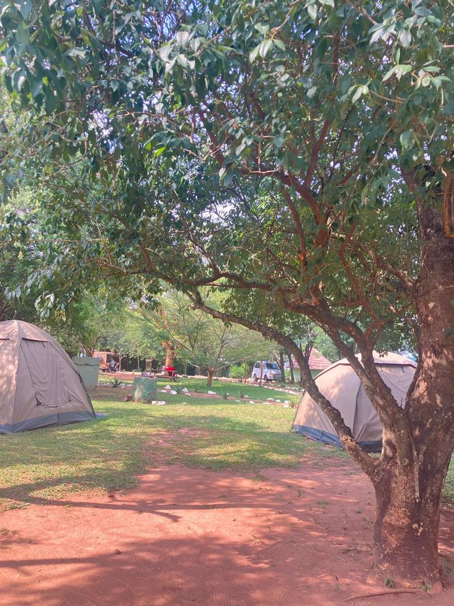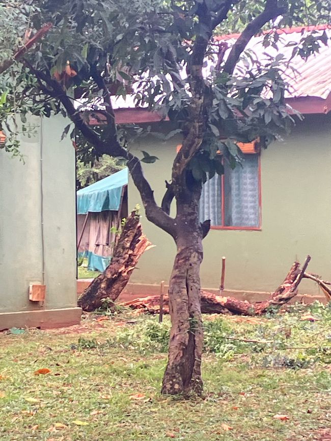 Erschöpft fallen wir in unsere Betten, doch an Schlaf ist erstmal nicht zu denken! Ein heftiges Gewitter wütet um uns herum, das Camp steht schon nach kürzester Zeit unter Wasser… Ein Glück, dass wir ein festes Häuschen, anstatt eines Zeltes gebucht hatten. Auf einmal spüren wir von innen einen heftigen Schlag aufs Mauerwerk. Ein kleinerer Baum ist durch das Unwetter umgestürzt und hat unsere Hütte gestreift. So können wir beruhigt schlafen, es hätte schlimmer kommen können!