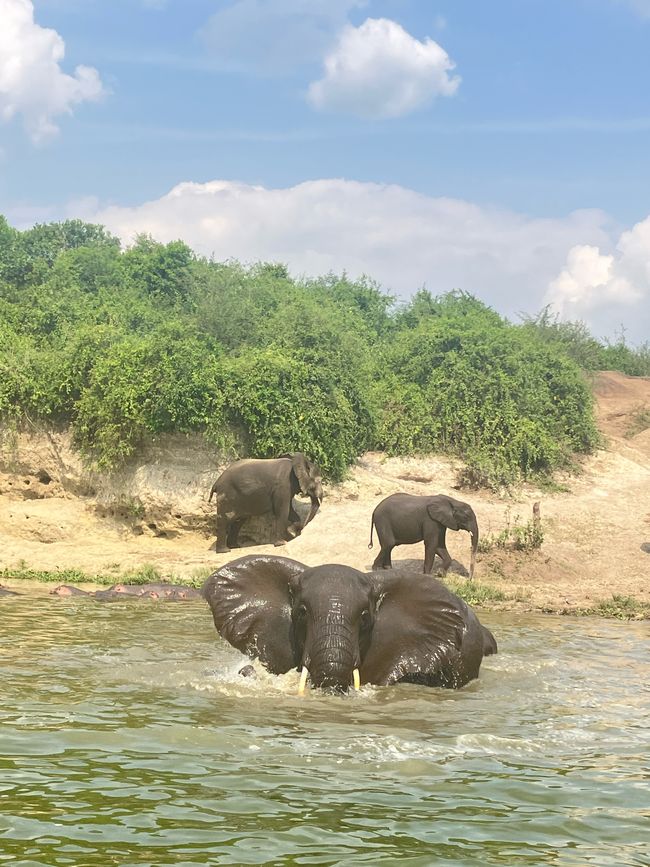 Das Highlight im Nationalpark ist eine Bootsfahrt den Kazinga Kanal entlang. Zudem lassen sich im Süden des Nationalparks sogar baumkletternde Löwen beobachten (Dazu kommen wir aber leider nicht)!