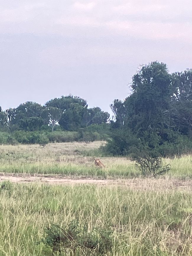 Für diese Fahrt im Nationalpark haben wir uns einen lokalen Guide in den Mietwagen dazu geholt. Er hält per Handy Kontakt zu anderen Safari-Guides. So können wir mit seiner Hilfe kurz vor Schließung des Parks noch einen Blick auf eine kleine Löwengruppe werfen, wenn auch aus der Ferne! Das Gras ist hier stellenweise schon sehr hoch...