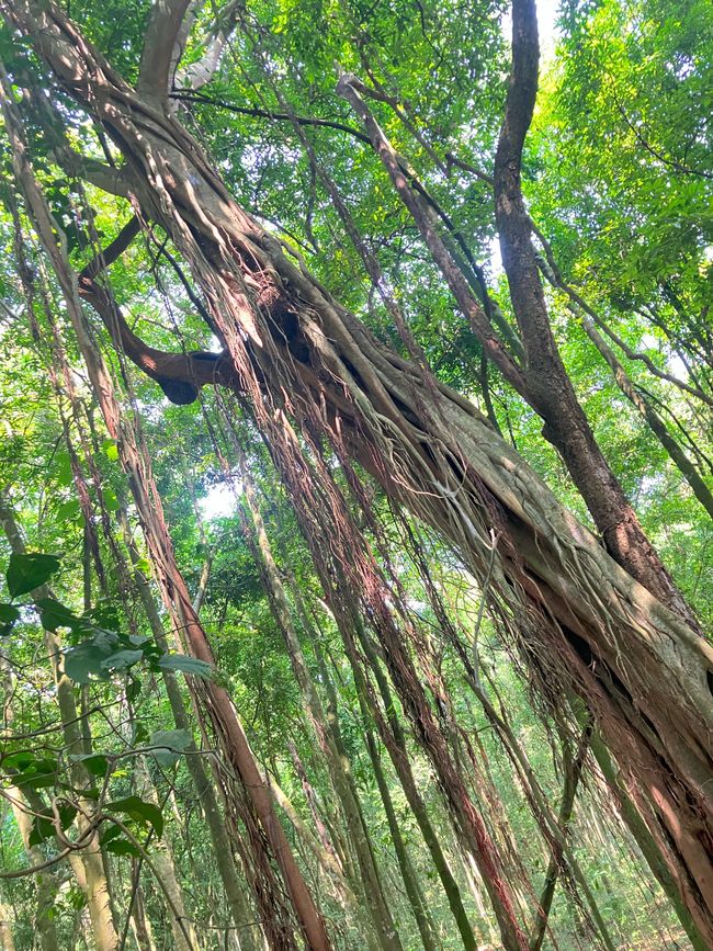 Unser Guide erklärt uns, dass Feigenbäume wie ein Parasit auf anderen Bäumen siedeln und diese langsam umschlingen und ihnen die Nährstoffe entziehen. Dieser Kampf kann Jahre dauern, bis der Wirtsbaum schließlich abstirbt und der Feigenbaum als strahlender Sieger übrigbleibt.