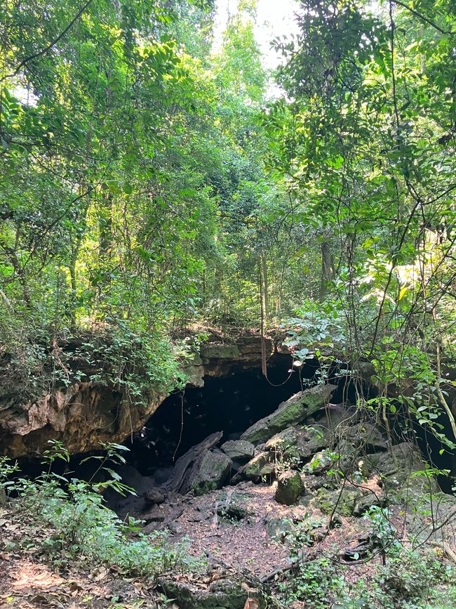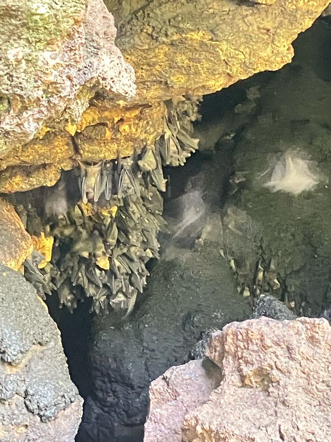Schließlich kommen wir an einer Fledermaushöhle an. Abertausende Fledermäuse sammeln sich hier und es herrscht ein wildes Treiben!