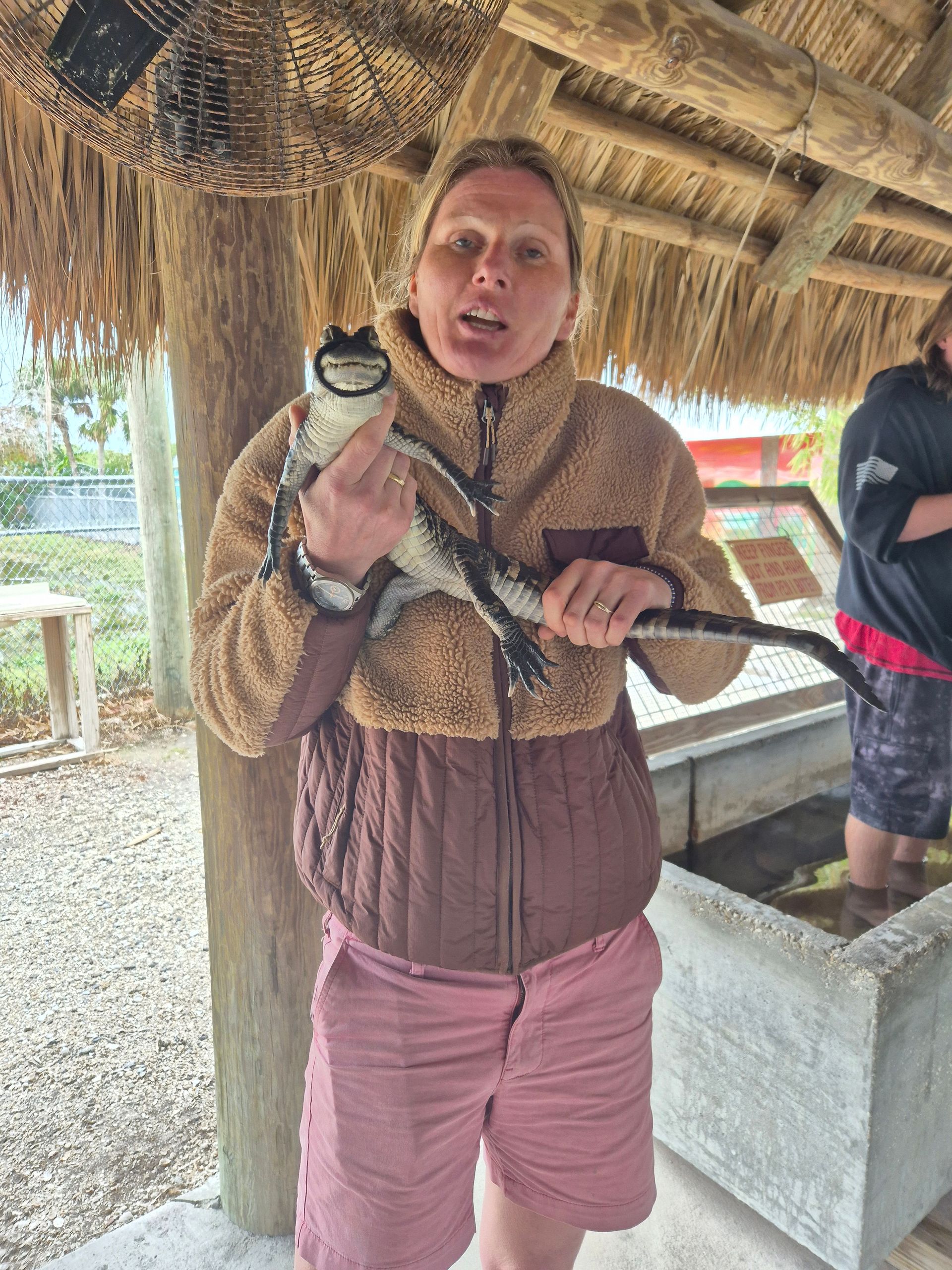 Das Airboat ist eine Attraktion für sich. Erinnert mich an den Film The Rescuers. Wir sind überrascht, dass wir nicht angeschnallt sein müssen. Wir rasen durch die Mangrovenwälder und sehen Krokodile und Ibisse. Es gibt auch einen kleinen Zoo, in dem eine Vorführung mit dem Krokodil Charlie stattfindet. Wir können ein kleines Krokodil halten. Besonders, diese ledrige Haut zu spüren. Wir füttern Krokodile und bewundern die wunderschönen Tiger. Während wir auf das 🌻Boot warten, veranstalten wir einen Kartenwettbewerb. Sie können erraten, wer der Gewinner ist....