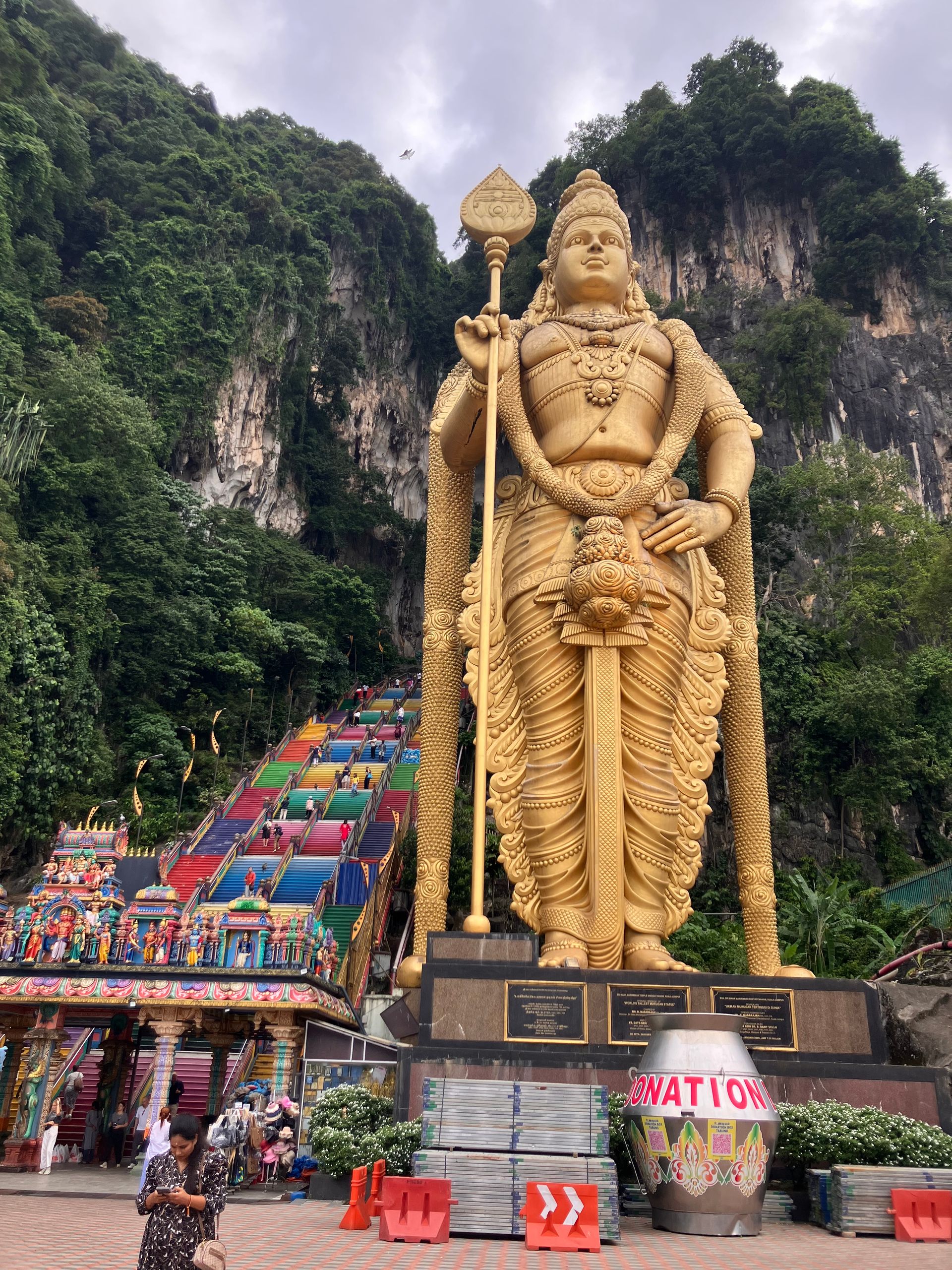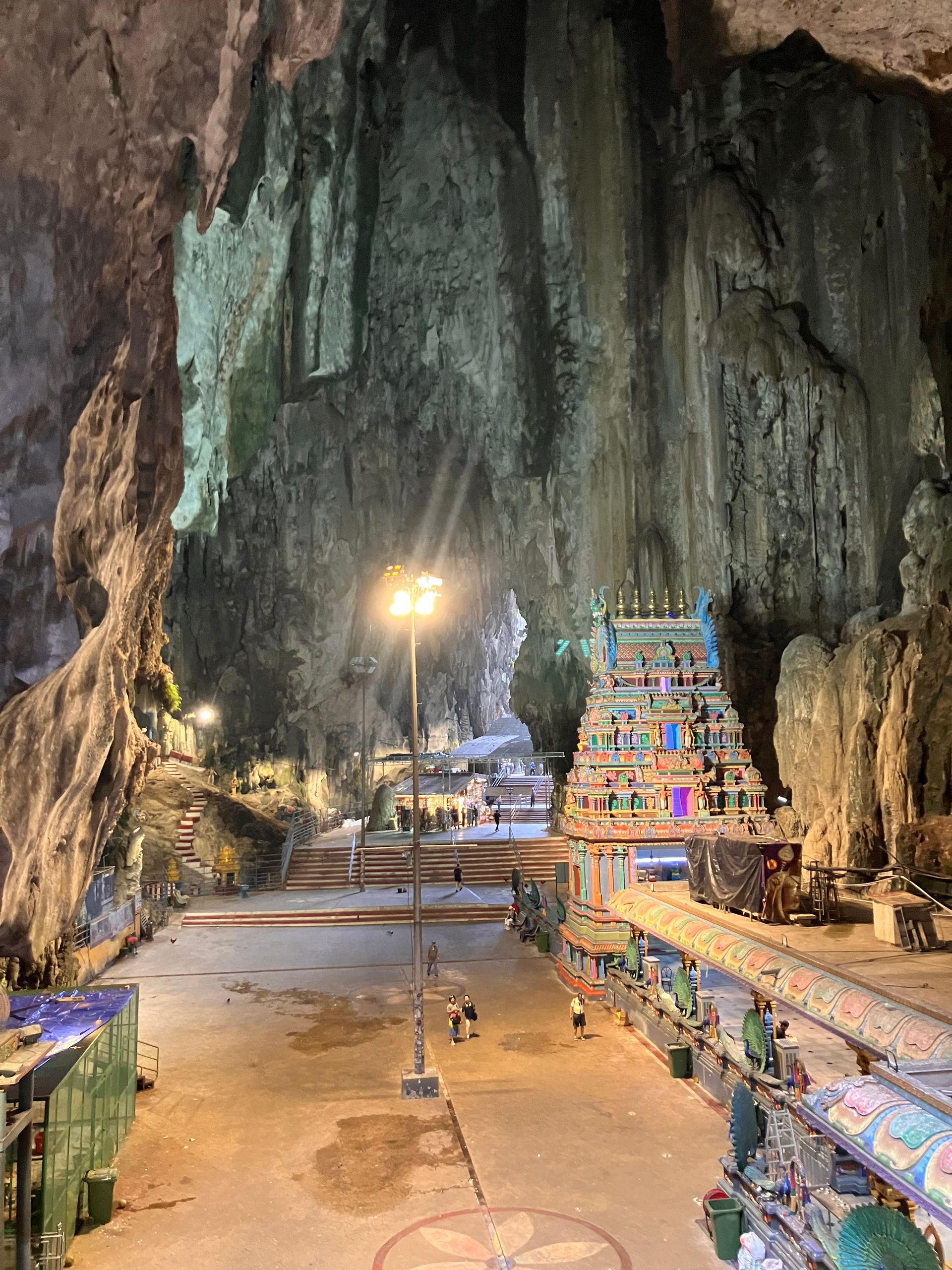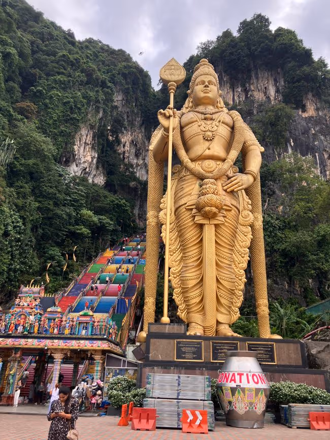 I 1860erne høstede kinesiske arbejdere guano. Tre årtier senere tog hinduistiske tilflyttere den største grotte i brug som helligdom for krigsguden Murugan. For 20 år rejste man desuden en 43 meter høj forgyldt cementversion af ham, og han vogter idag trappen og indgangen til grotten.
