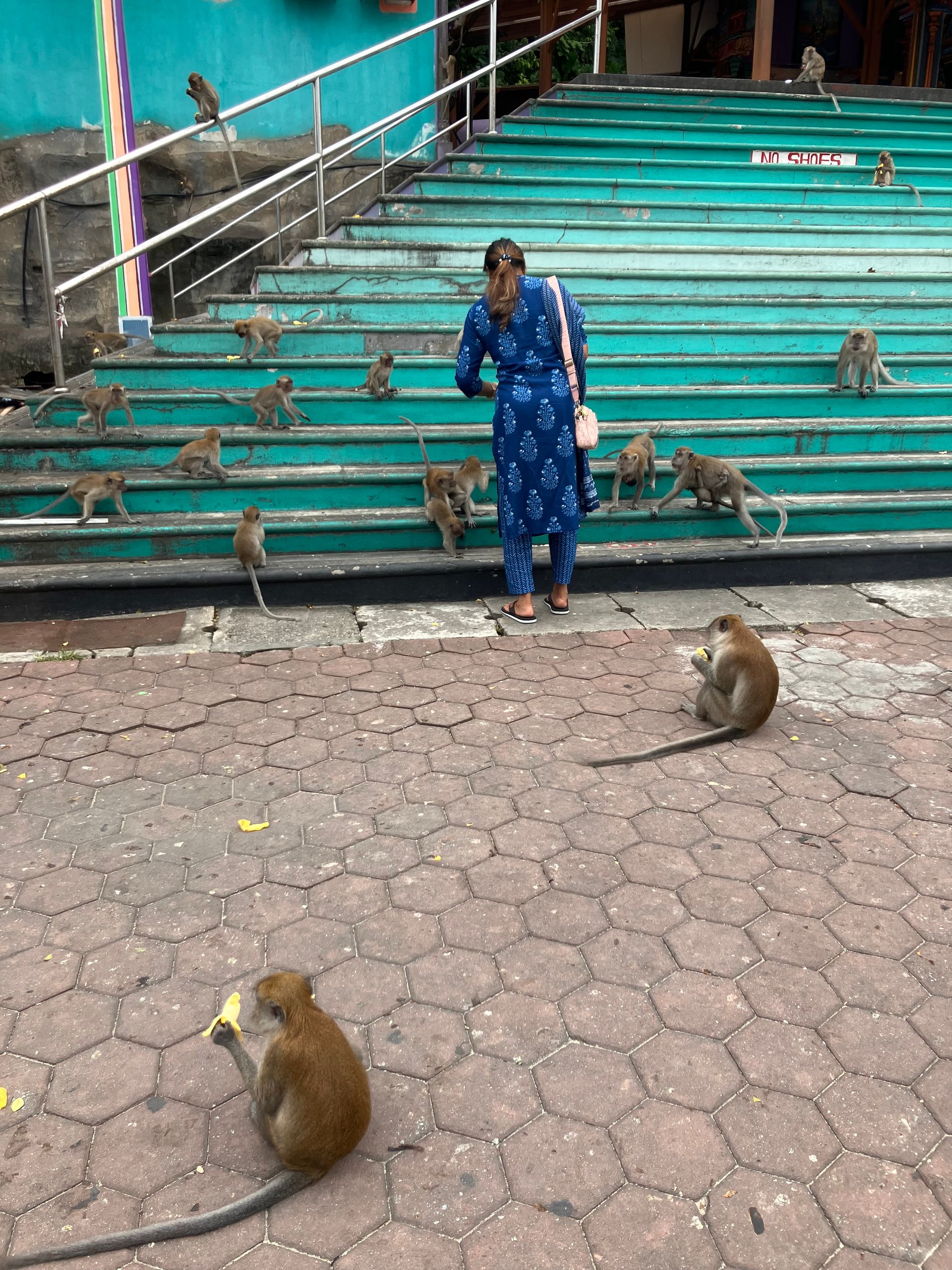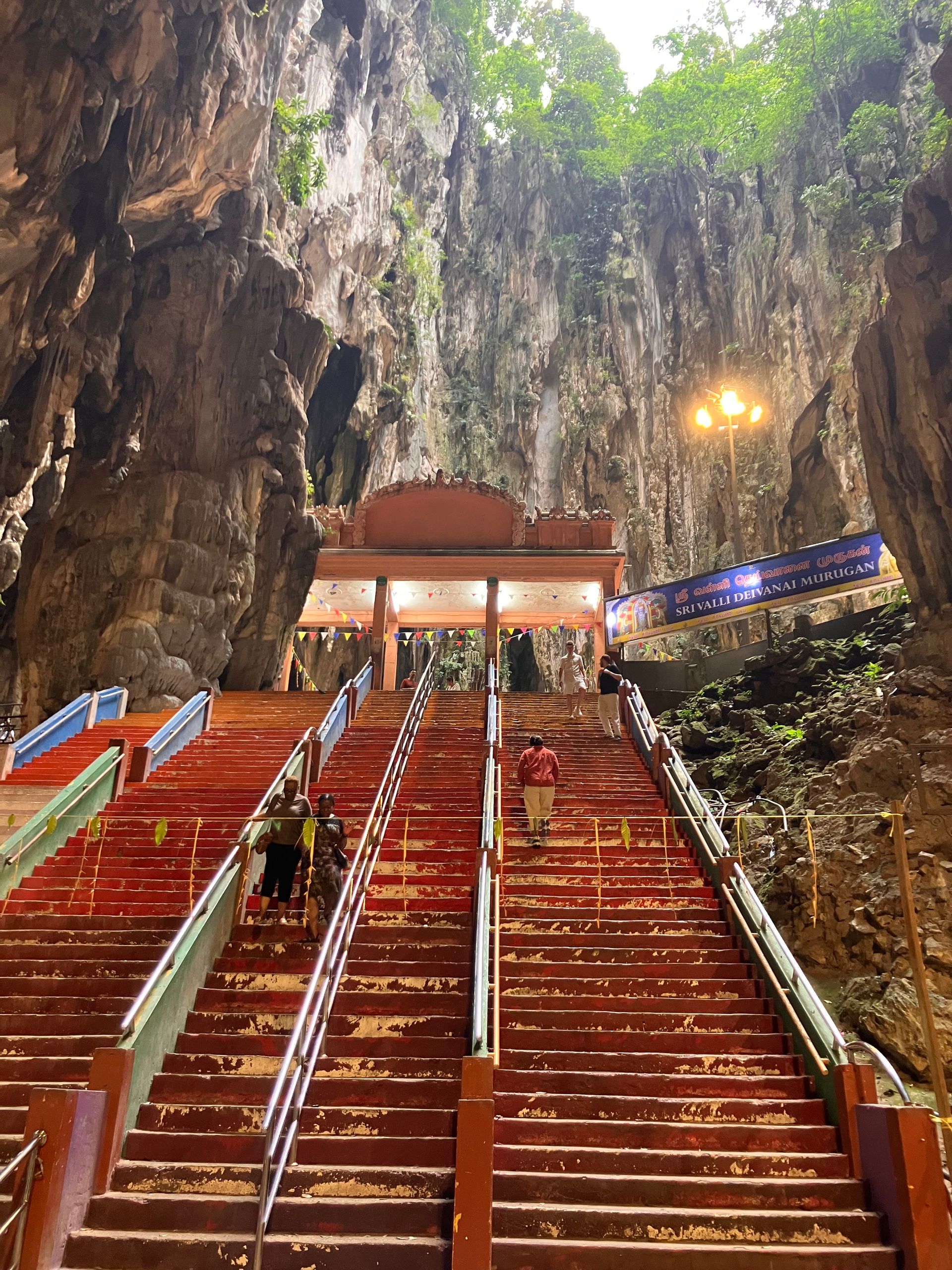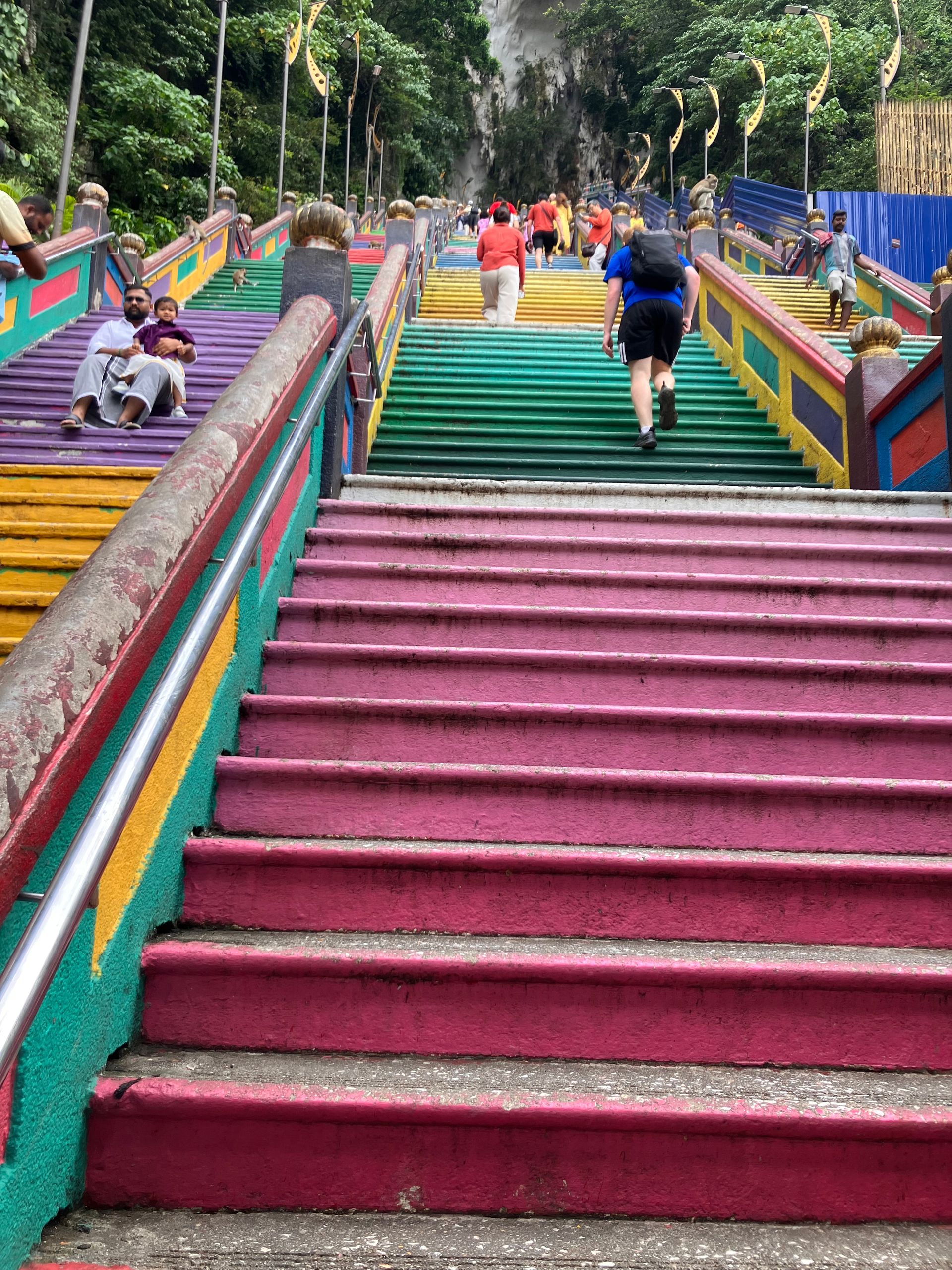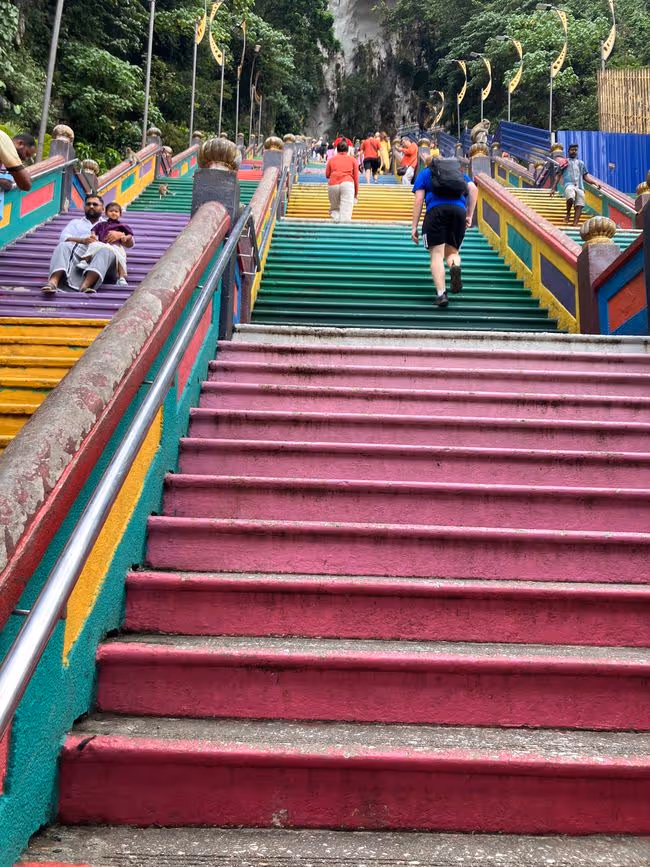 Ergo stod jeg tidligt op, tog pendlertoget til endestationen (som ER grotterne) og nåede snildt op ad trinnene, inden varmen og de store menneskehorder kom buldrende. Det tog fem-seks minutter - inklusiv undvigemanøvrene uden om de talrige, morgenfriske makakaber.