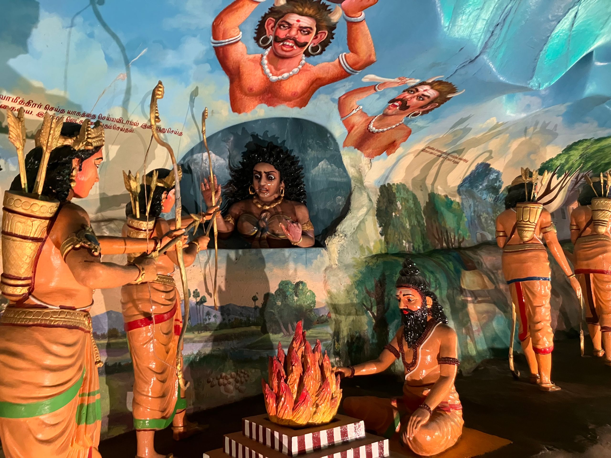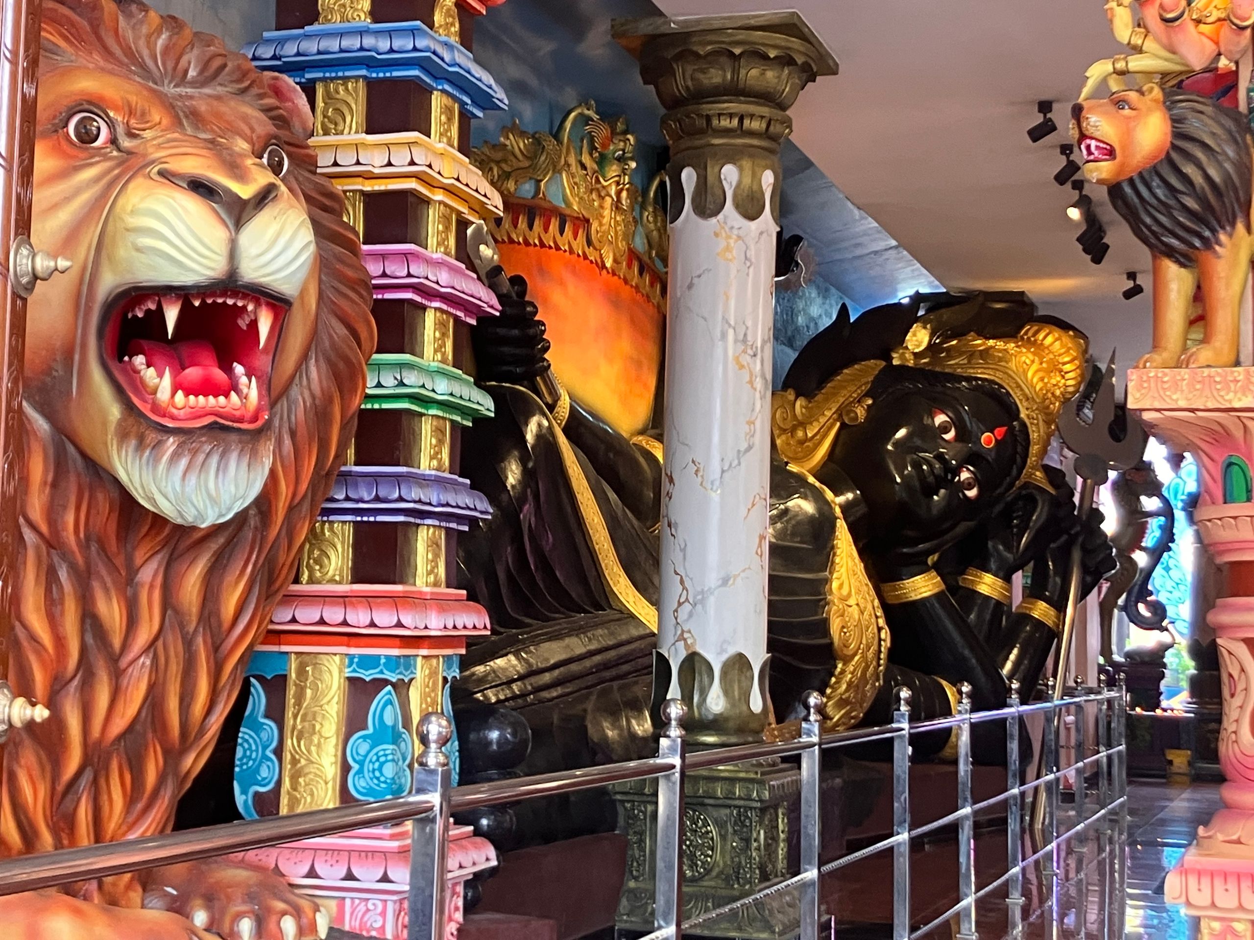 Som det sig hør og bør er der tale om et helt tempelsystem tilegnet flere andre repræsentanter fra det hinduistiske gudekabinet. En af dem er til abeguden Hanuman, der har sit eget tivolisgtige grottesystem med kulørte lampekæder, forklarende figurgrupper, ledlys og en 15 meter høj skulptur af guden selv.
