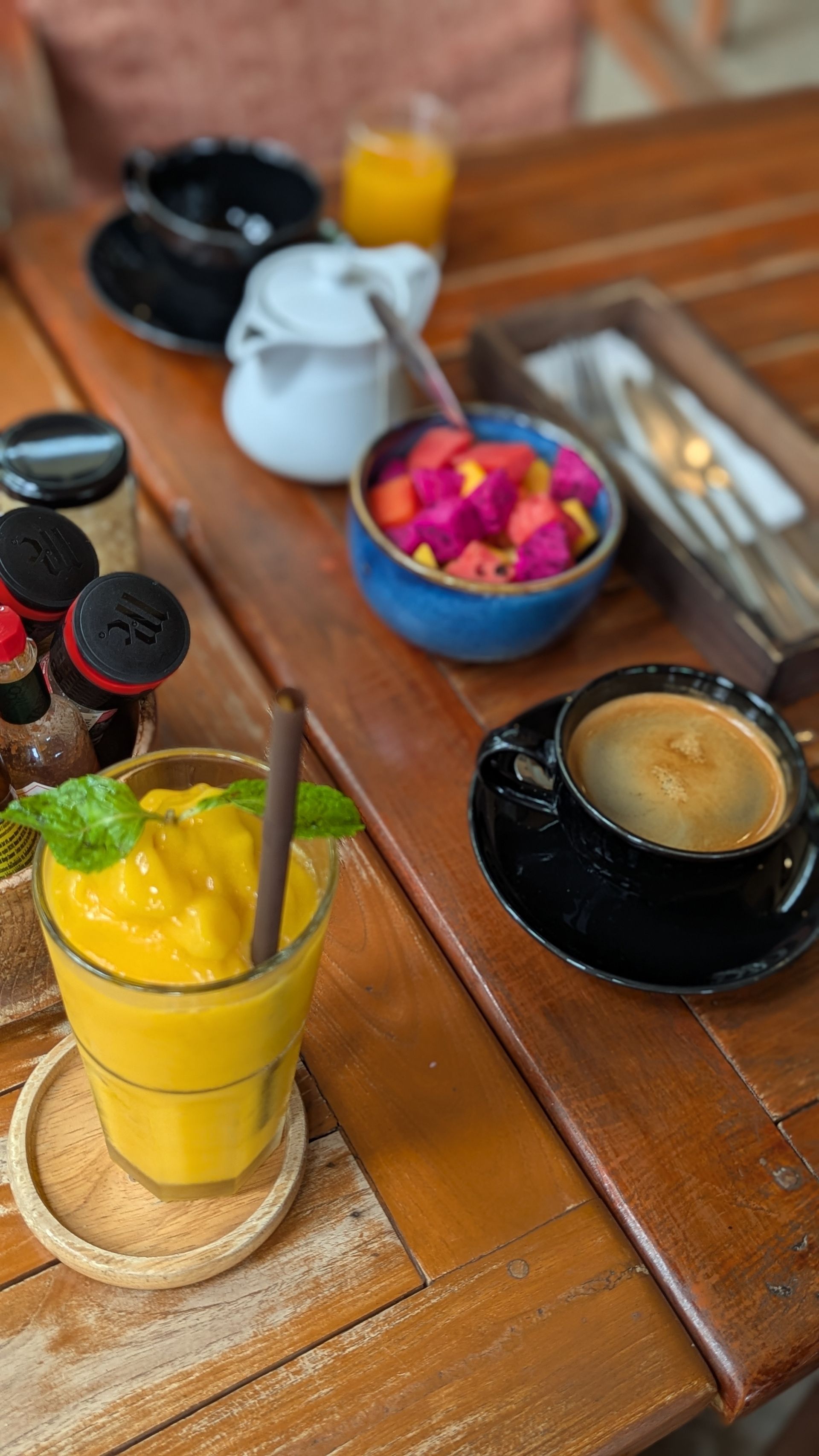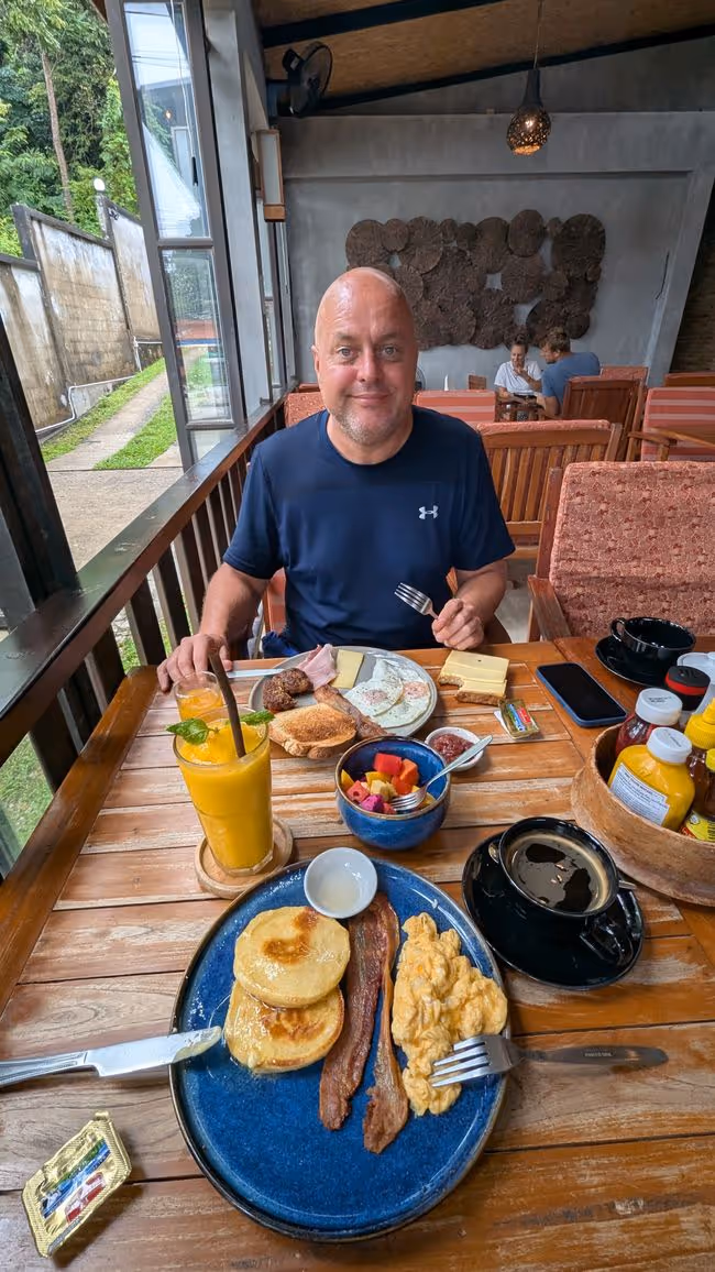 We dropped Lawa off at school and were then craving a good breakfast. We took a car to Livingroom, where we had previously bought Lawa's birthday cake.