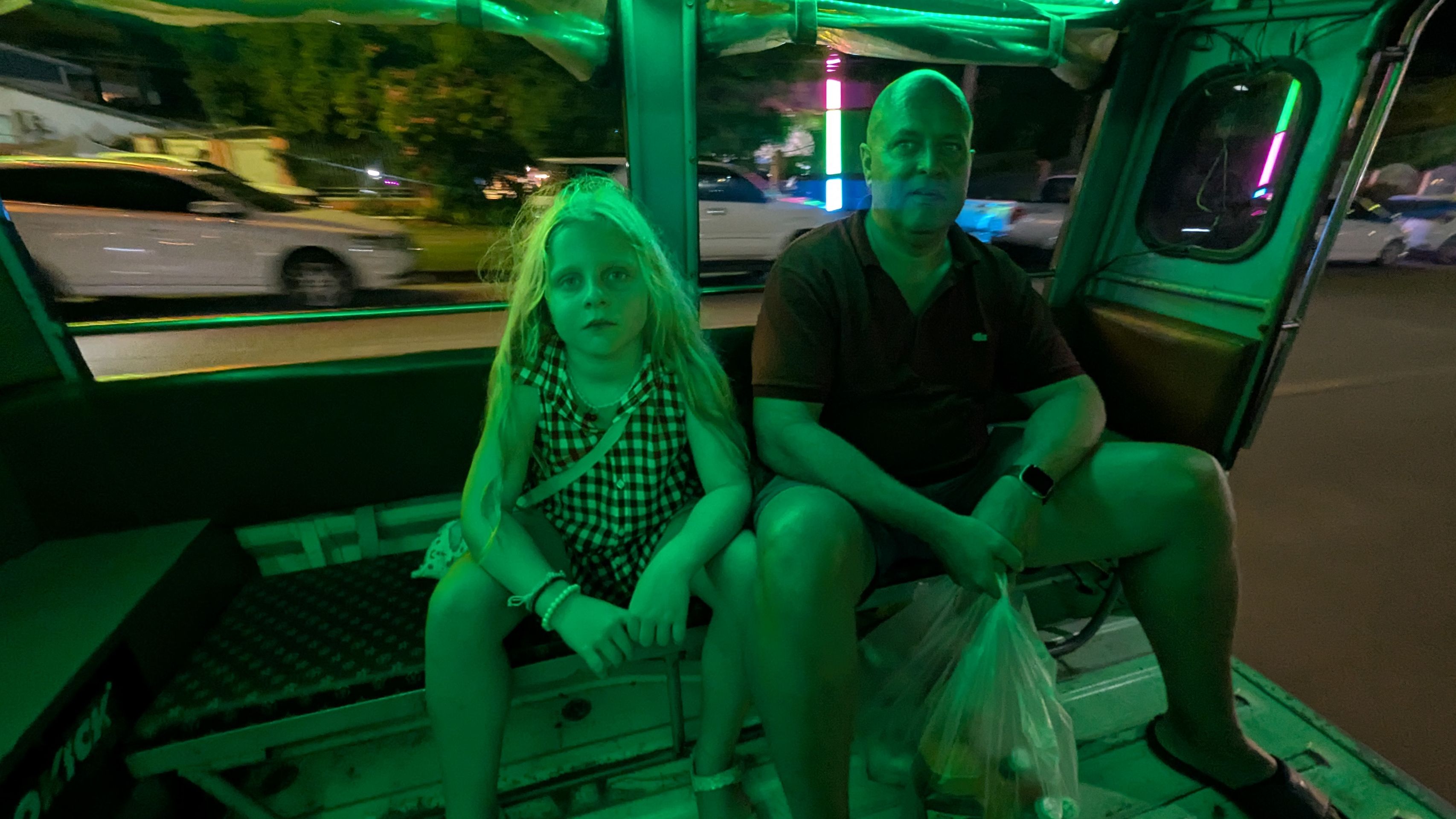 Auf dem Heimweg nahmen wir ein richtiges Partyauto mit extrem lauten Lautsprechern. Der Fahrer hatte wohl seinen Spaß, aber wir hörten nur ein lautes, vibrierendes Badezimmer.