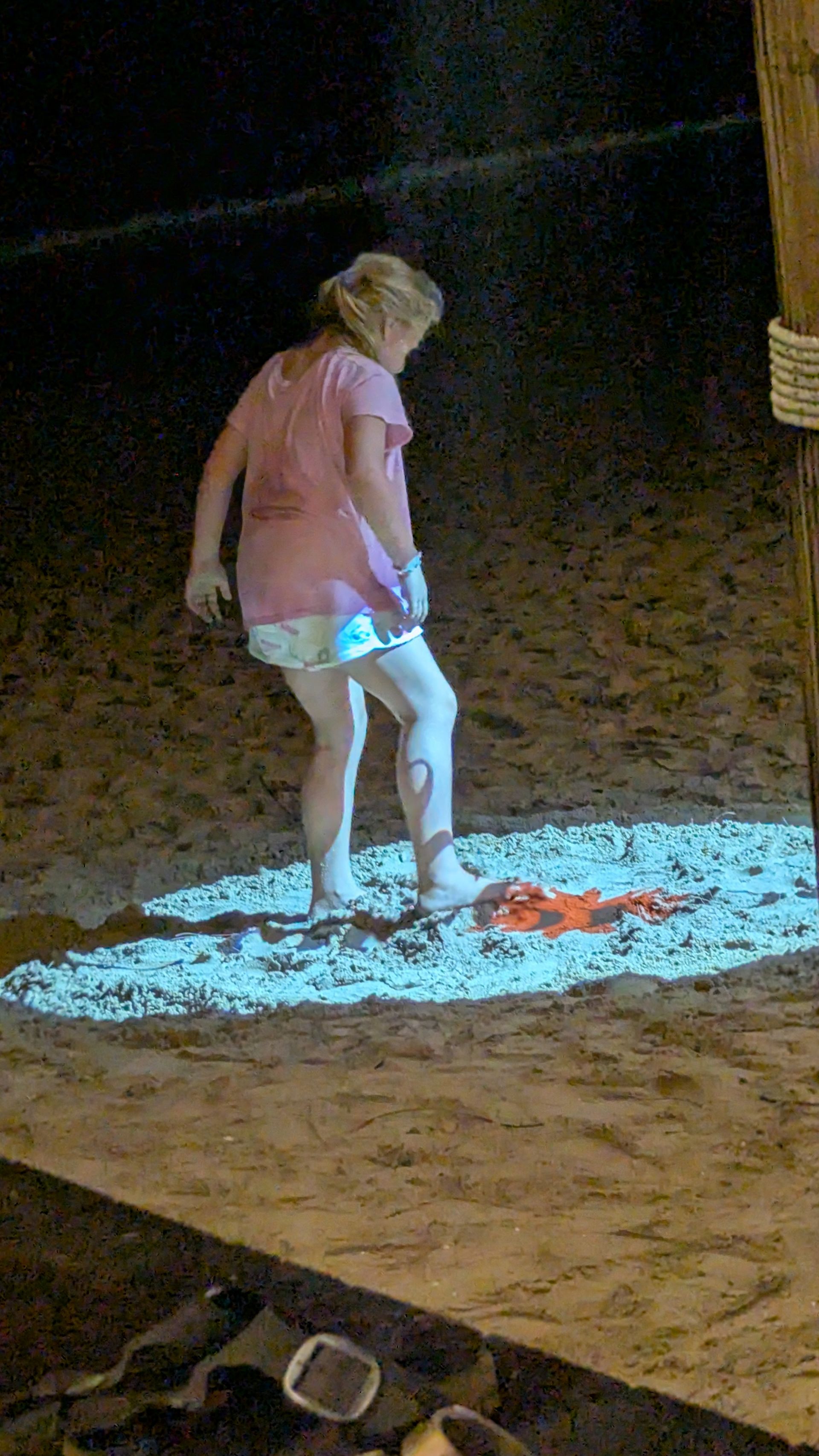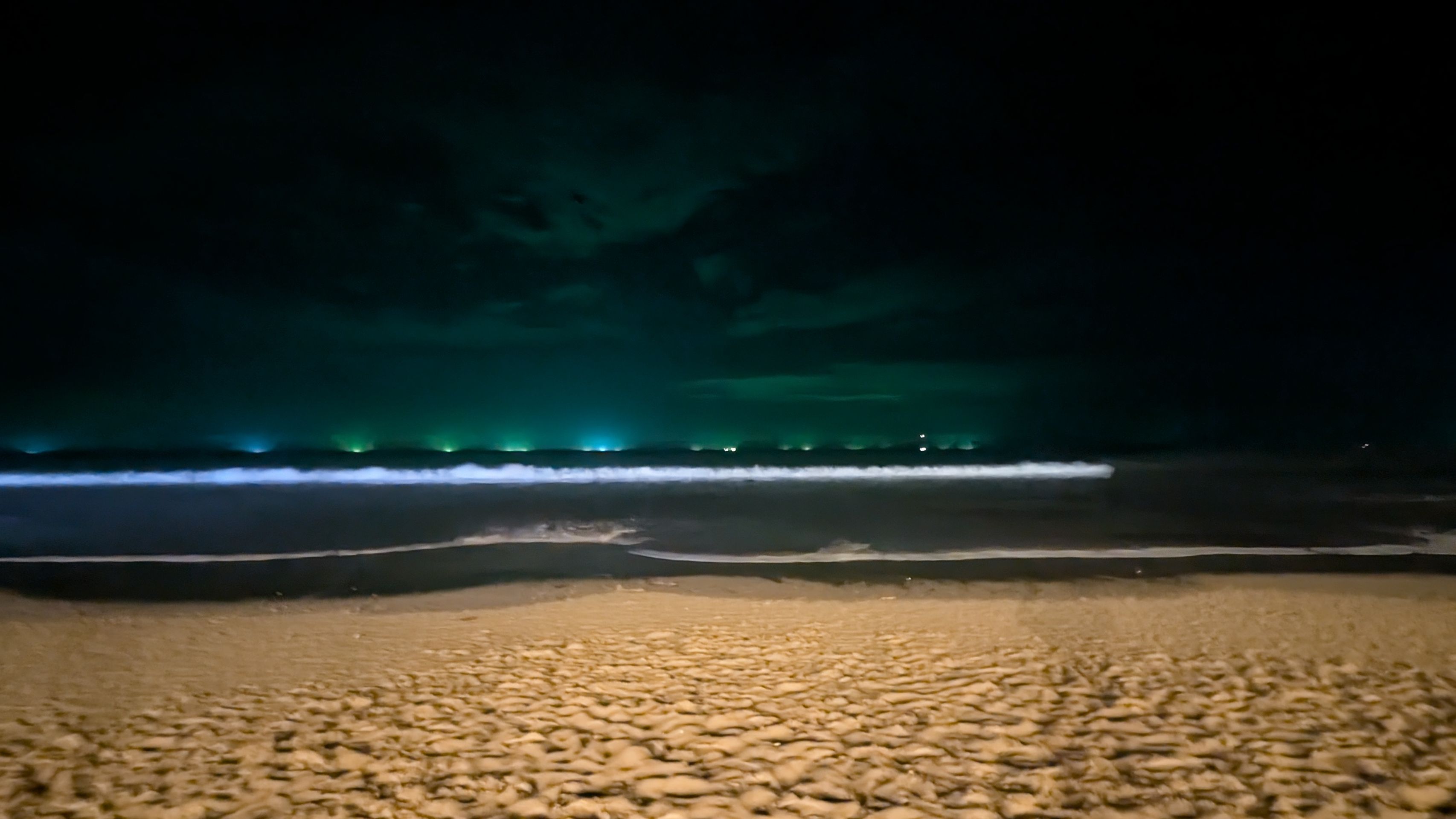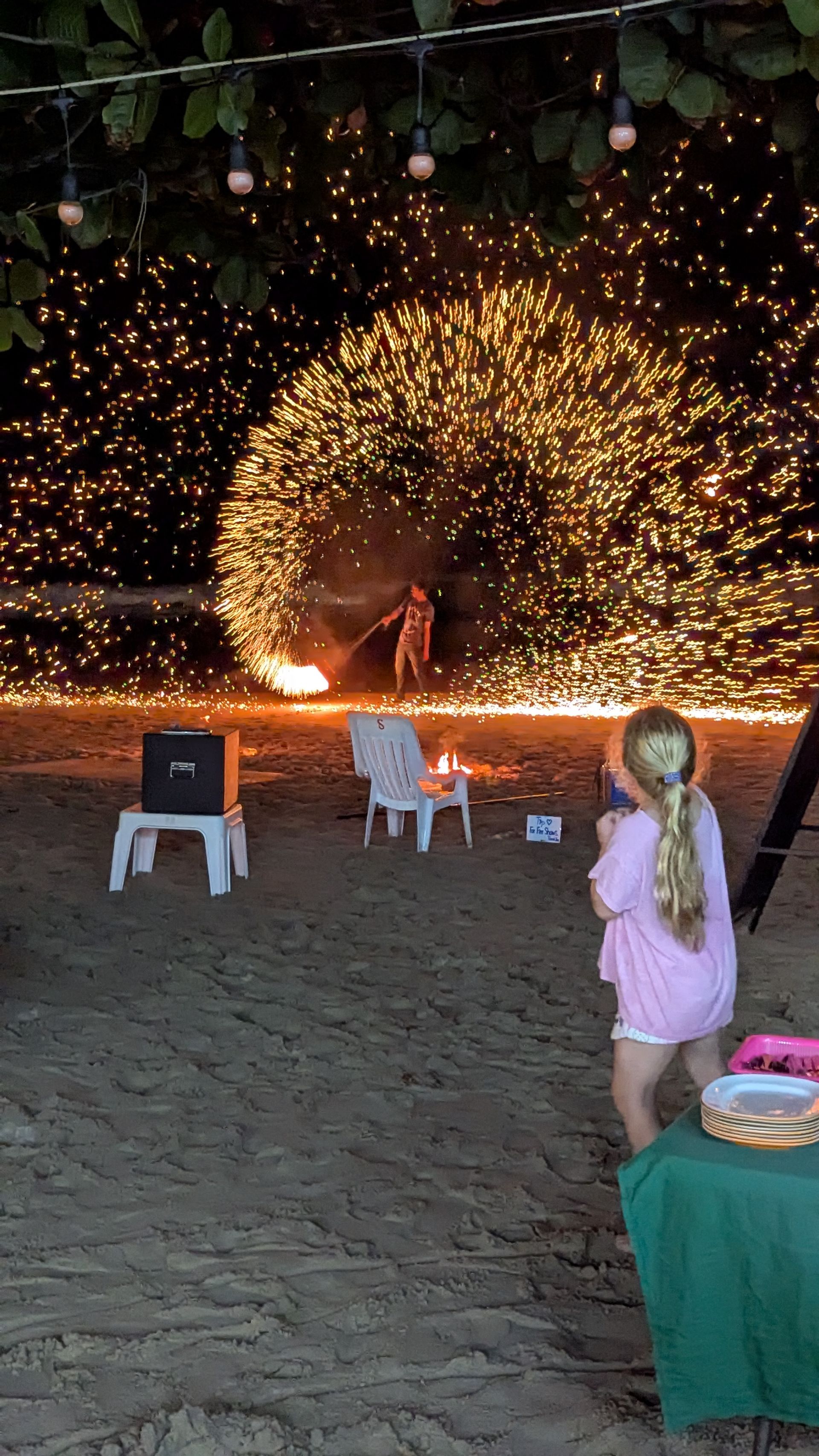 Wir machten einen Spaziergang am Strand und entdeckten eine Lichtshow, die gerade beginnen sollte, und sahen sie uns an.
