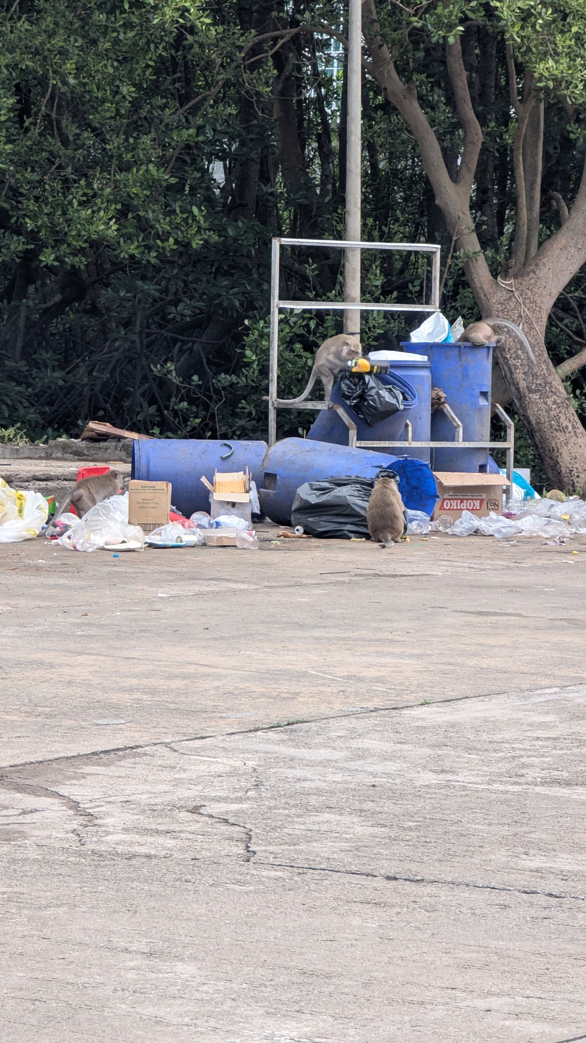 We also saw a bunch of monkeys munching on trash; since we didn't have good experiences, we took a different route back.